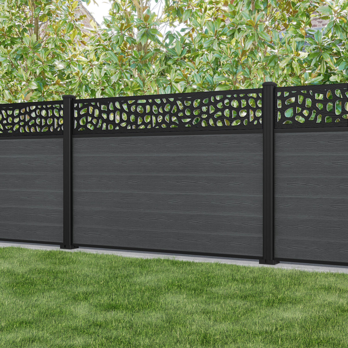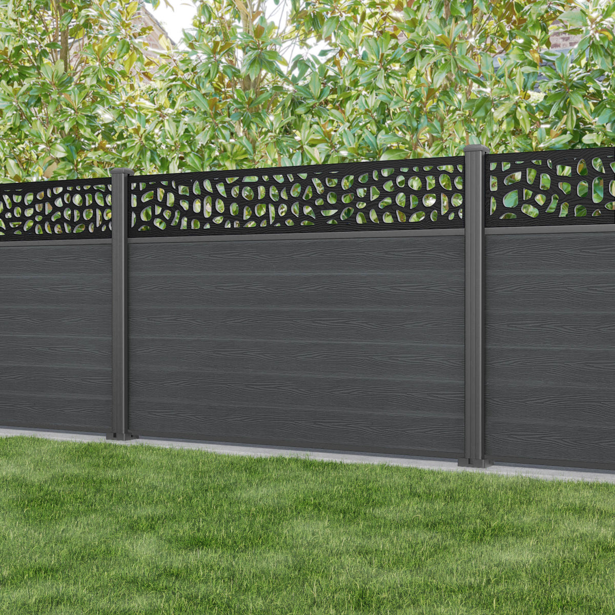 Classic Pebble Fence Panel Dark Grey - with our aluminium posts