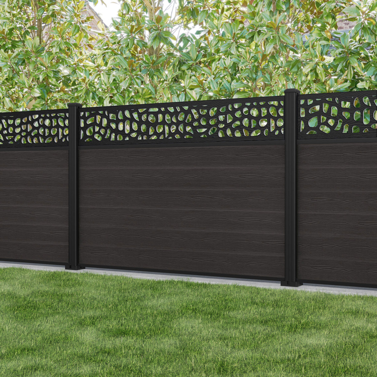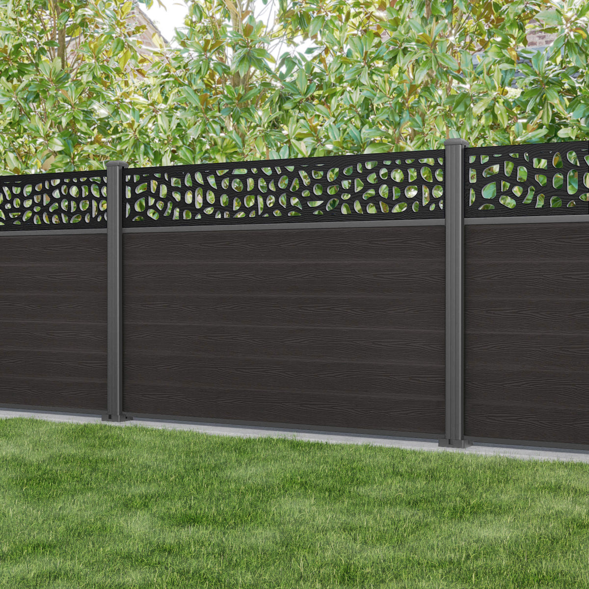 Classic Pebble Fence Panel Dark Oak - with our aluminium posts
