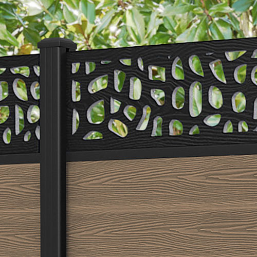 Classic Pebble Fence Panel Teak - with our aluminium posts