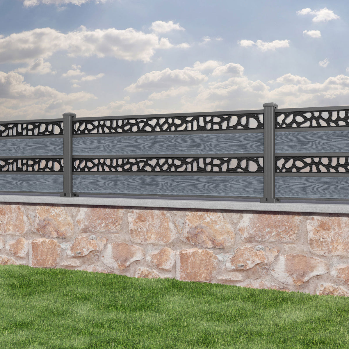 Classic Pebble Split Screen Fence Panel Anthracite - with our aluminium posts