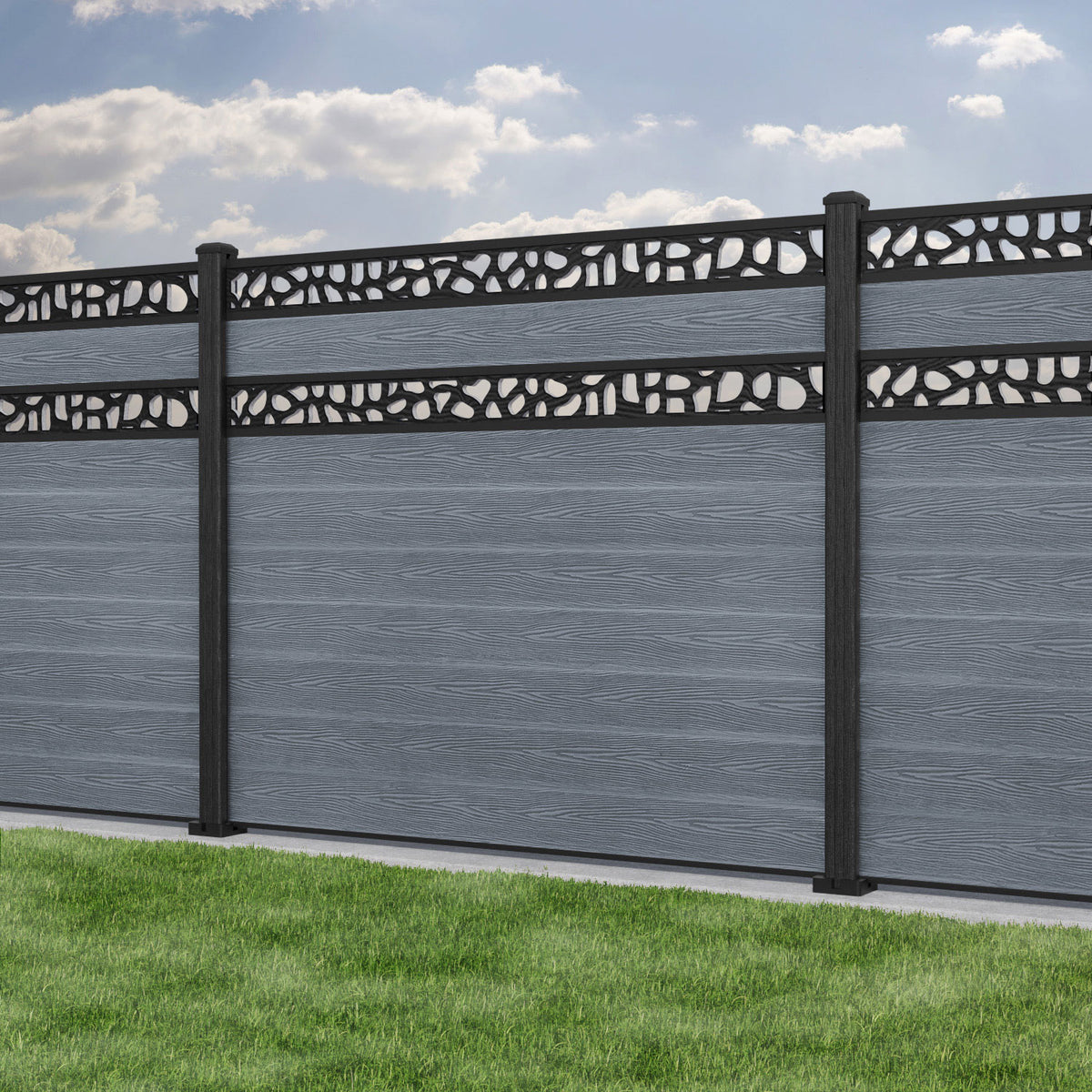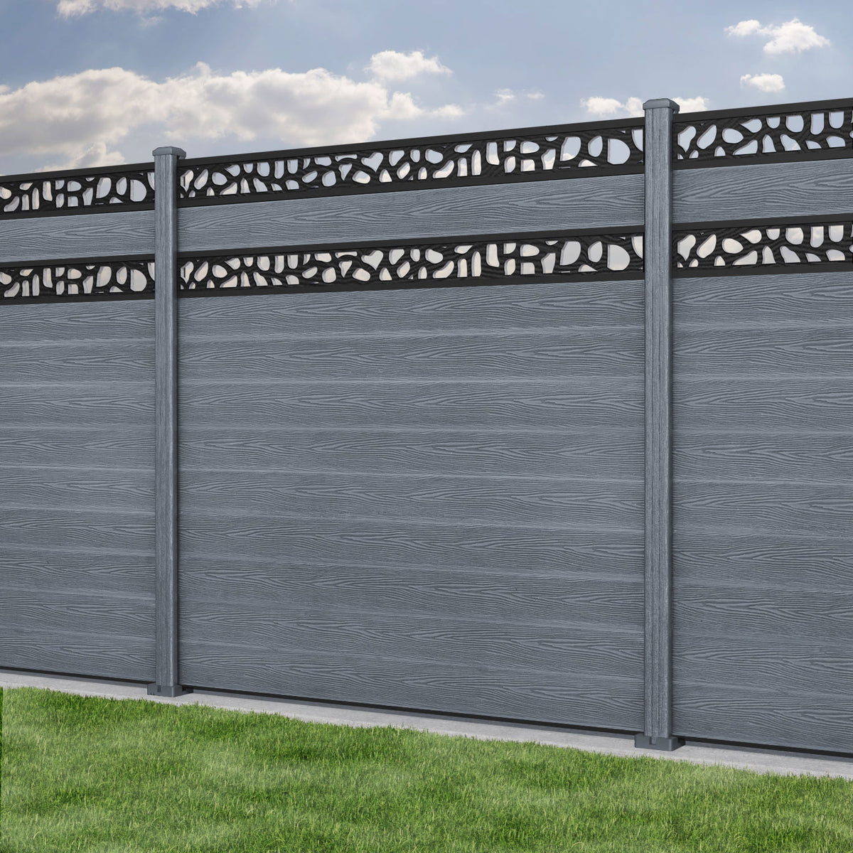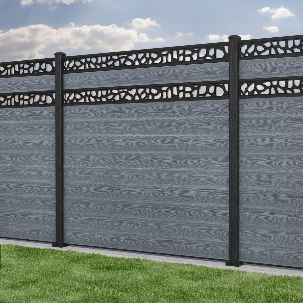 Classic Pebble Split Screen Fence Panel Anthracite - with our composite posts