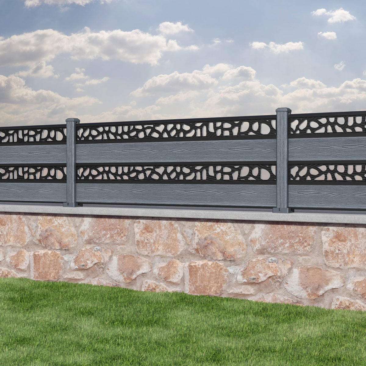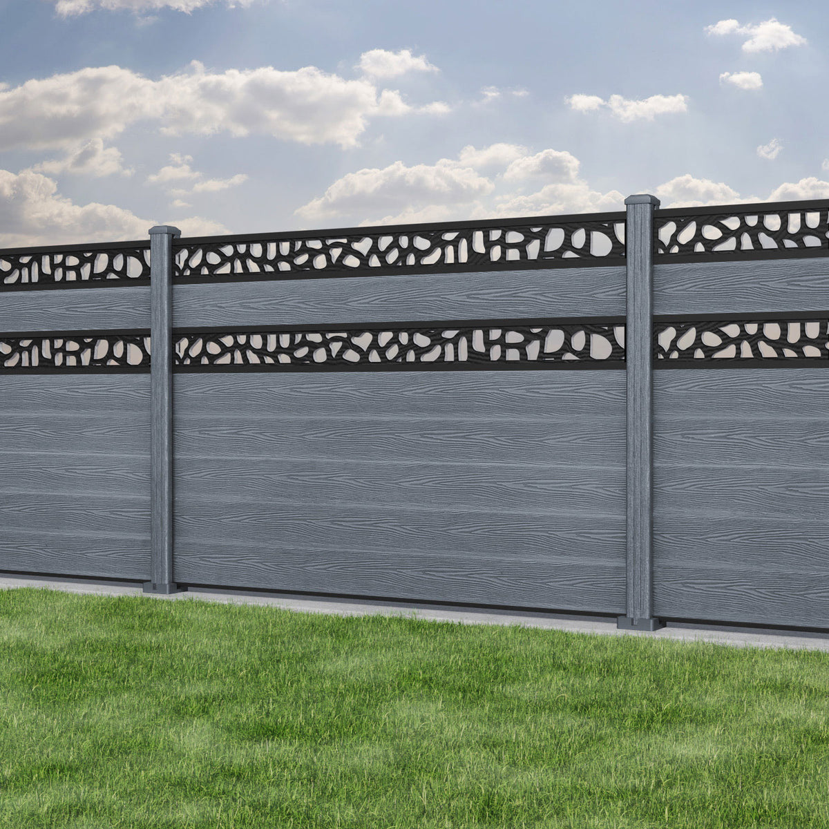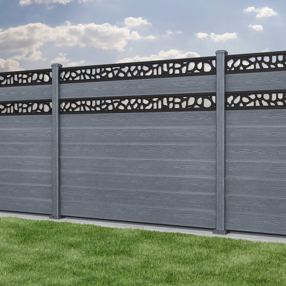 Classic Pebble Split Screen Fence Panel Anthracite - with our composite posts