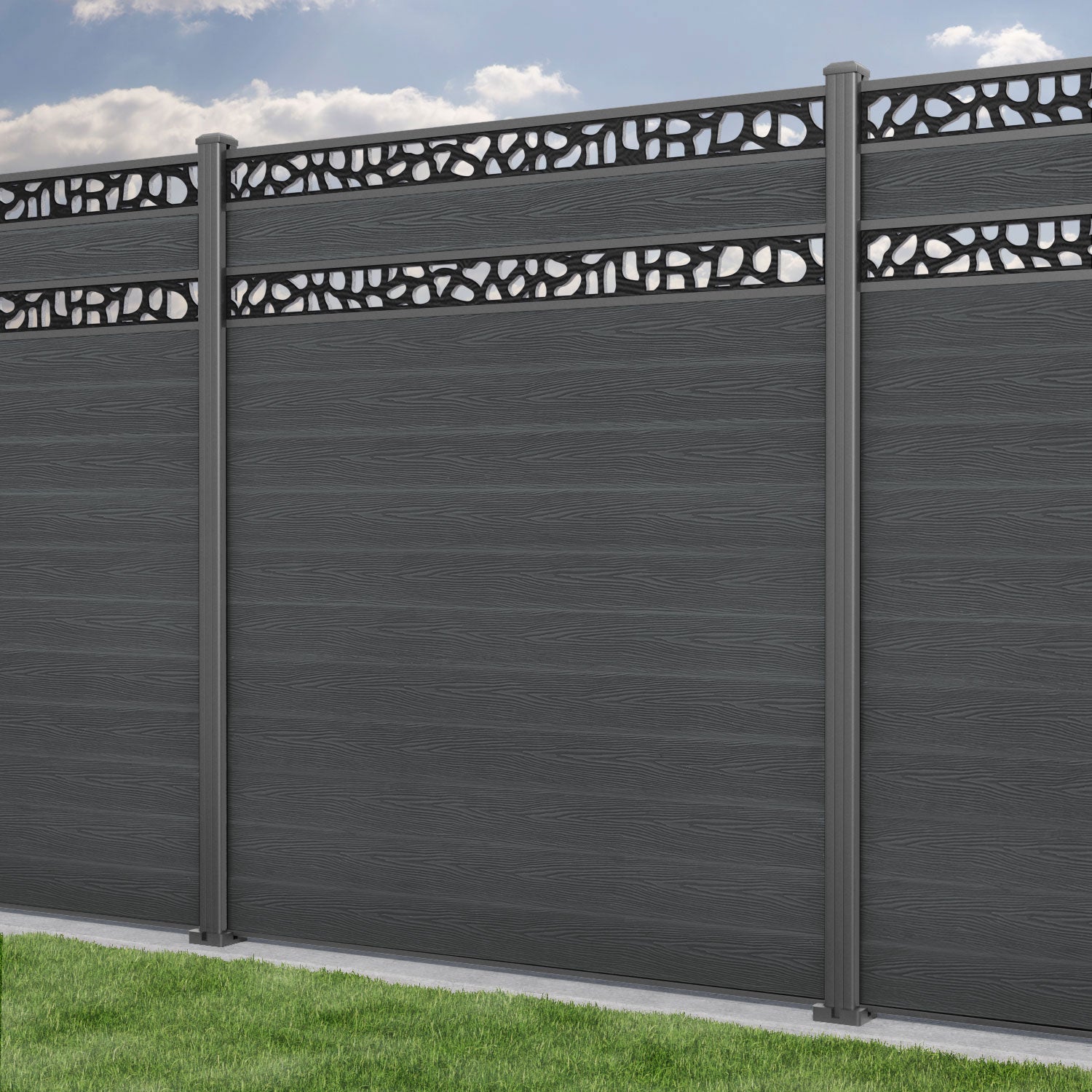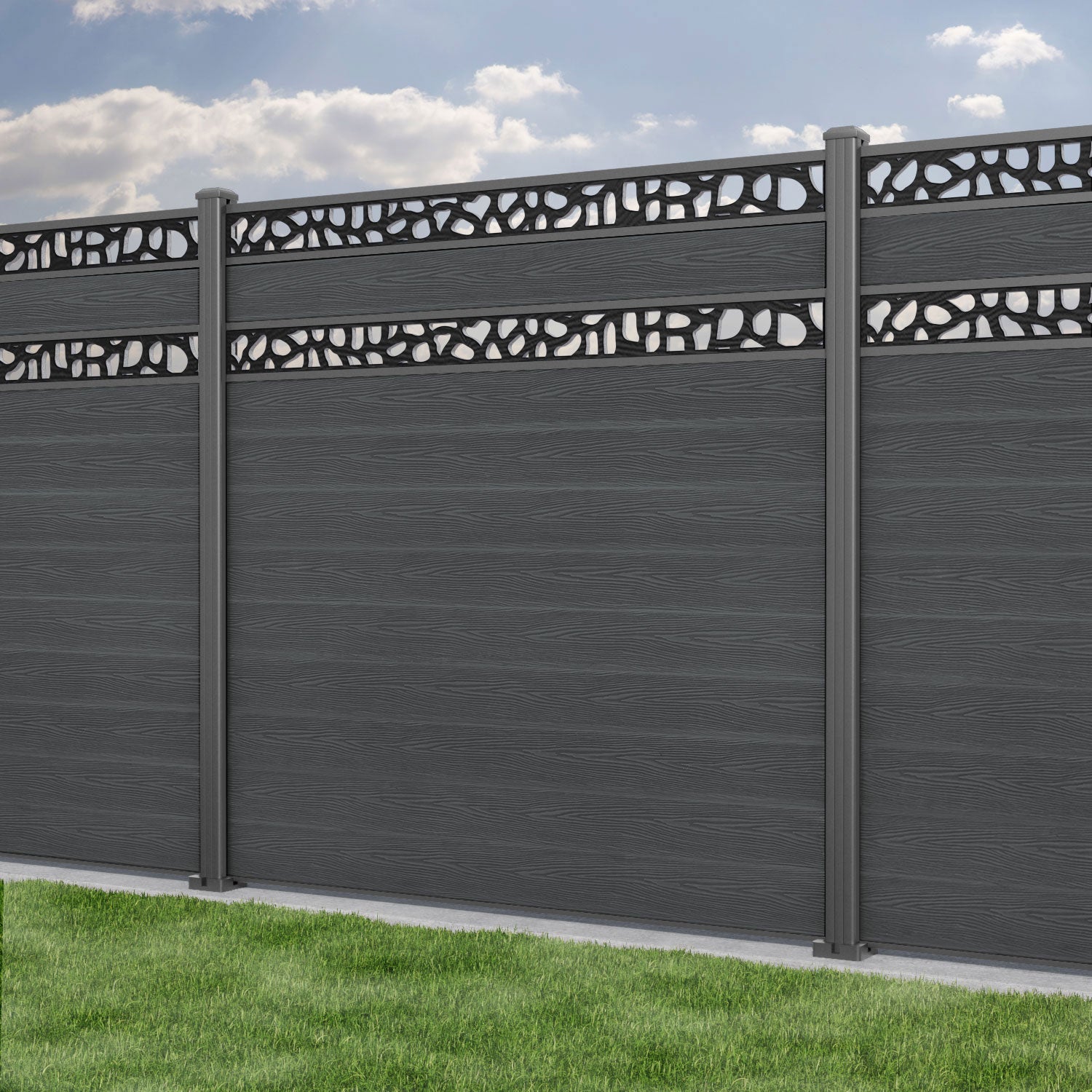 Classic Pebble Split Screen Fence Panel Dark Grey - with our aluminium posts