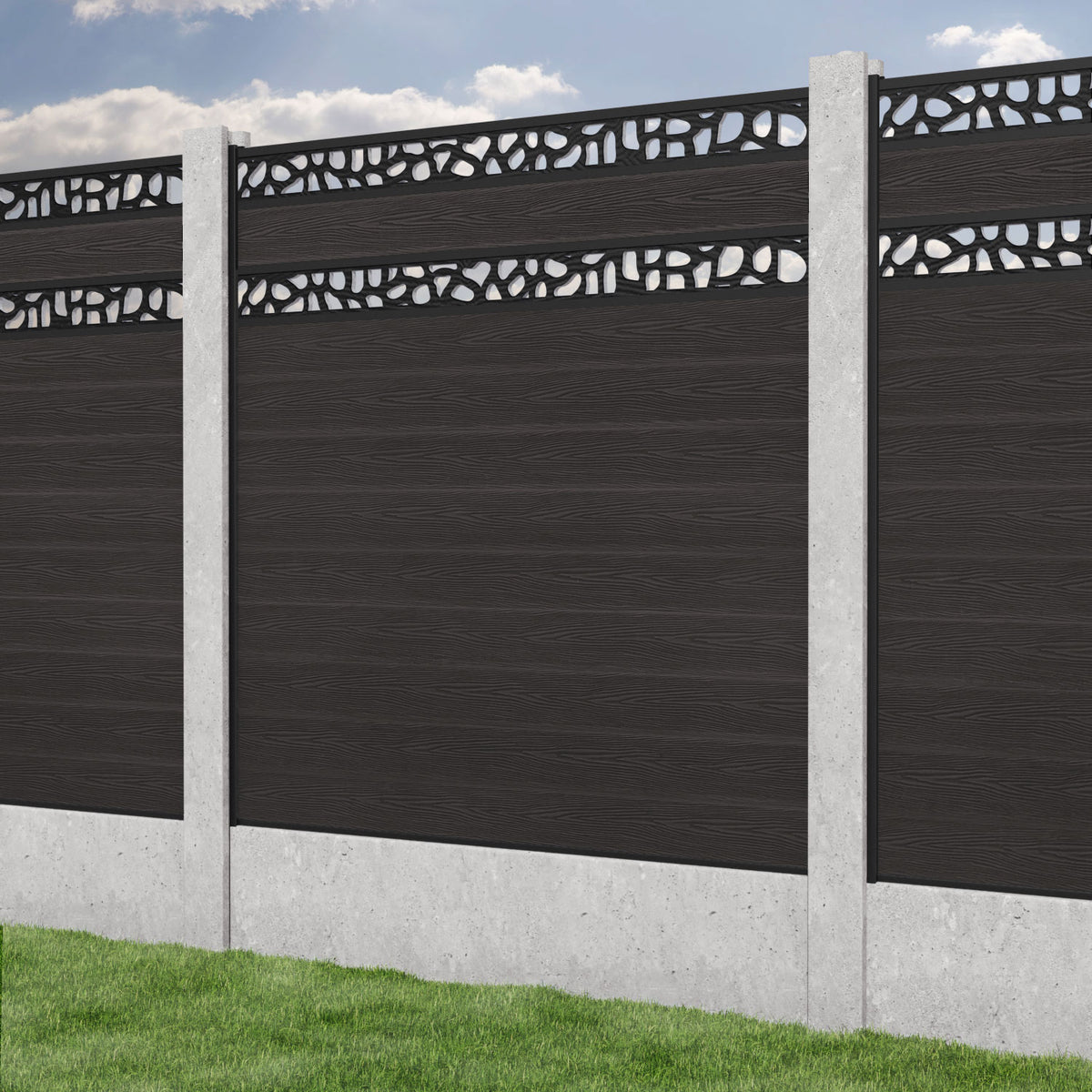 Classic Pebble Split Screen Fence Panel Dark Oak - for existing concrete posts