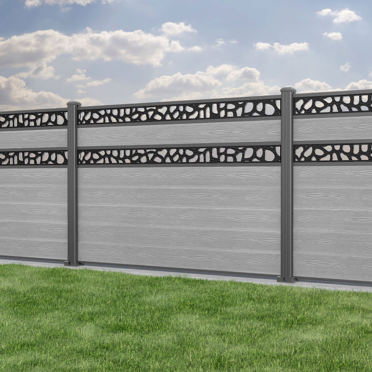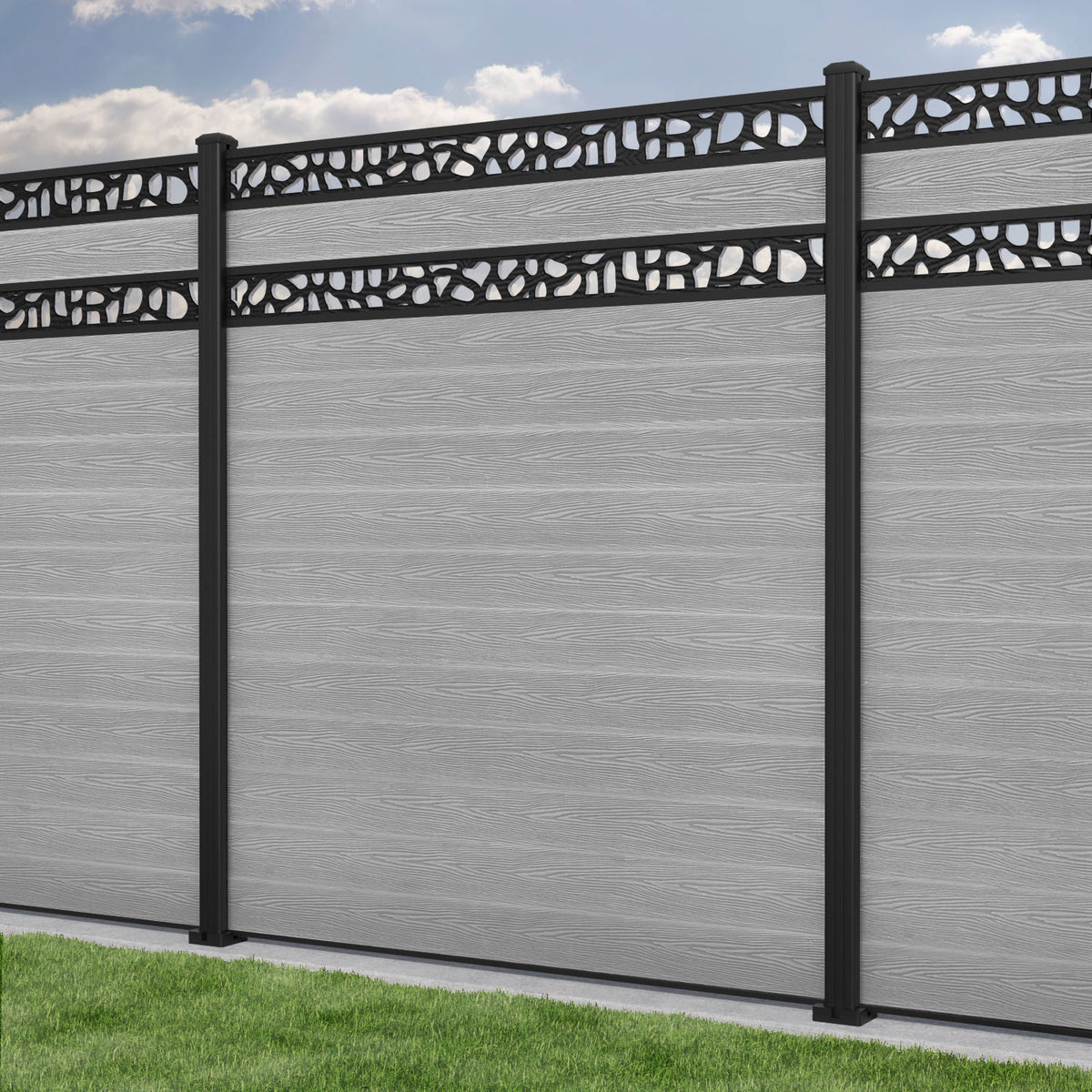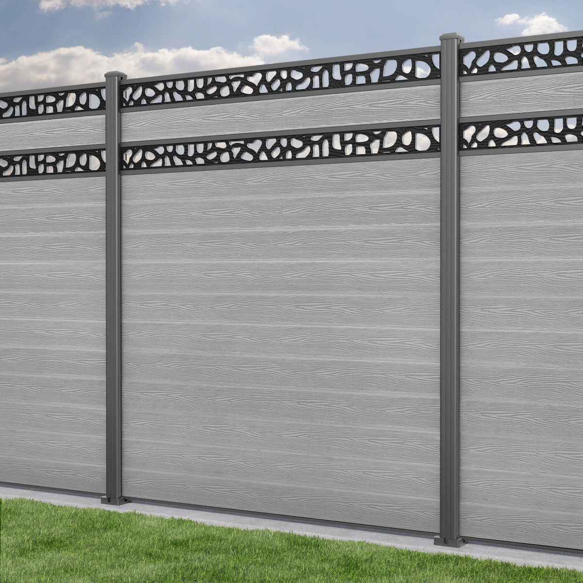 Classic Pebble Split Screen Fence Panel Light Grey - with our aluminium posts