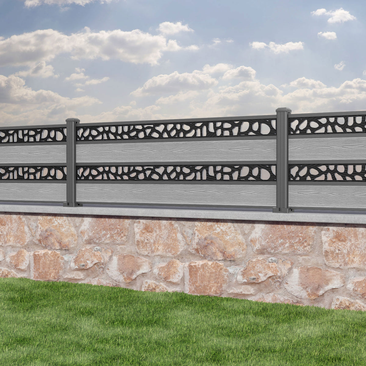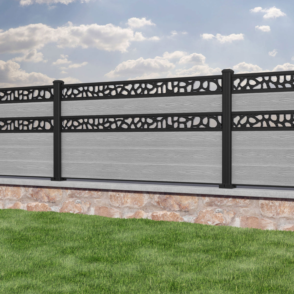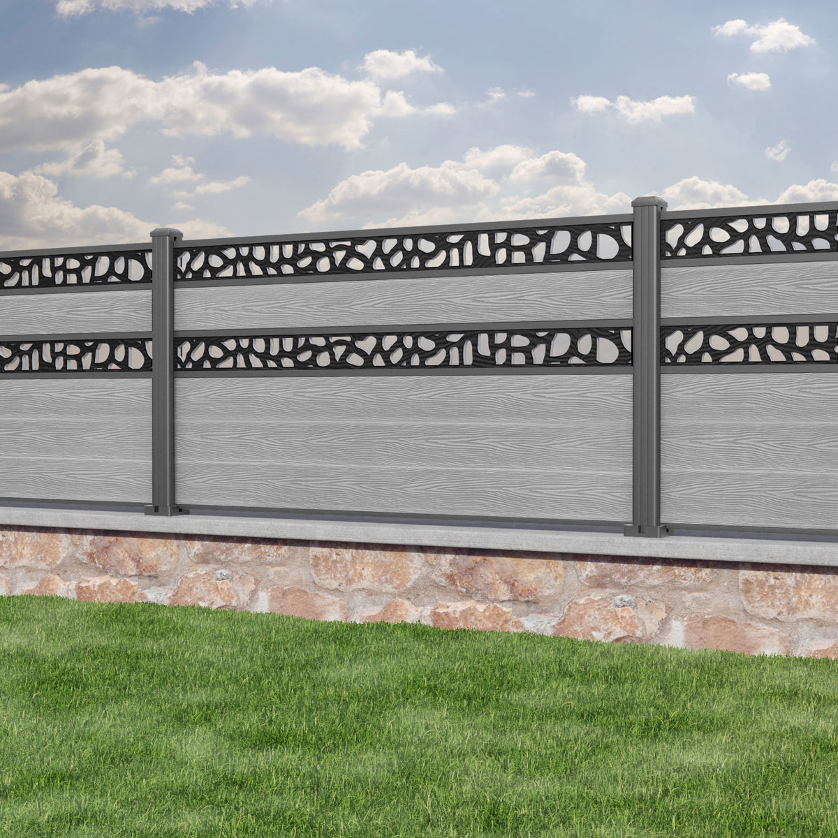 Classic Pebble Split Screen Fence Panel Light Grey - with our aluminium posts