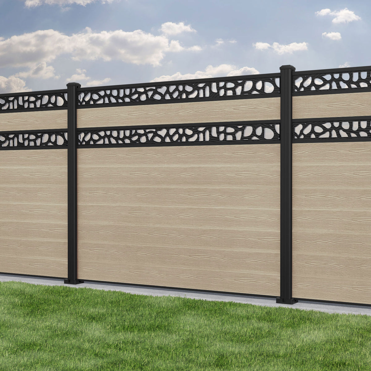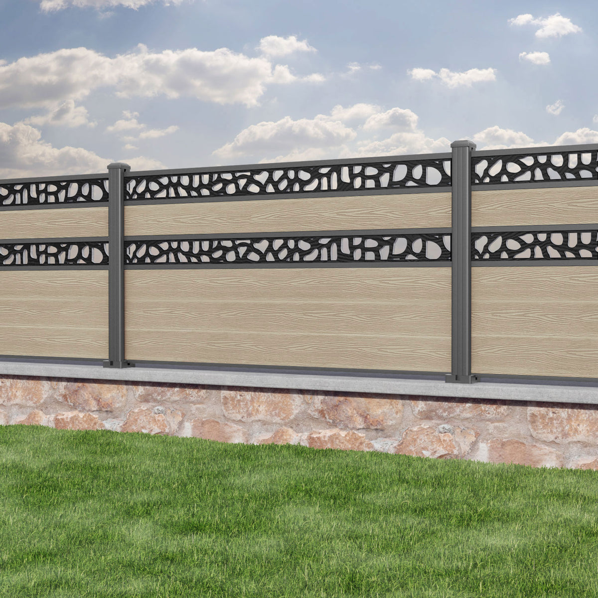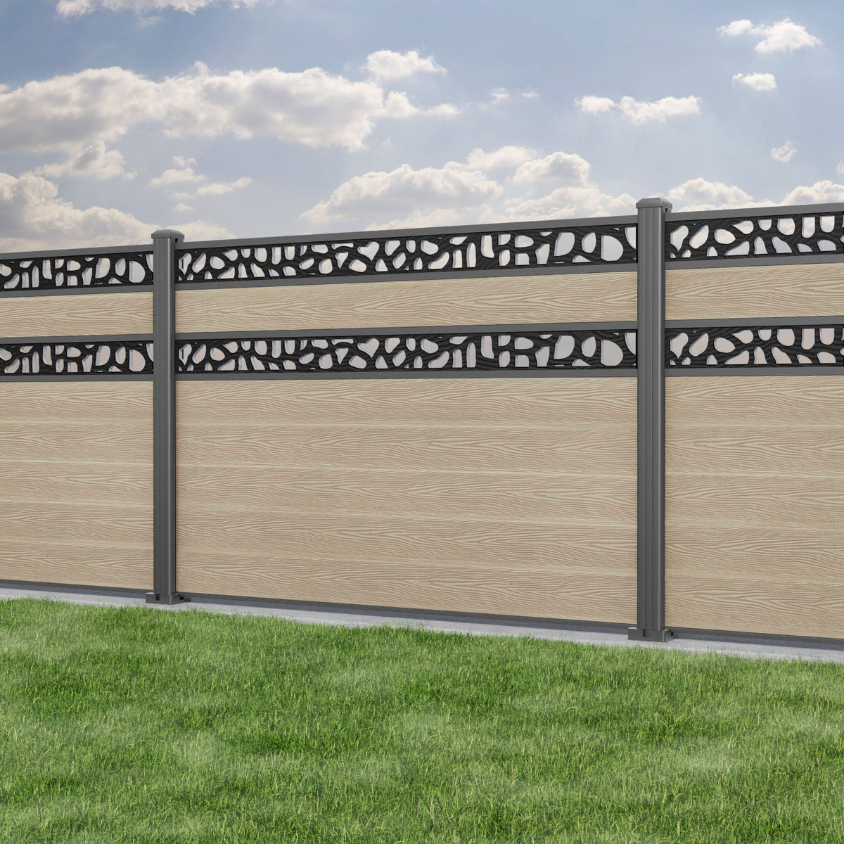 Classic Pebble Split Screen Fence Panel Light Oak - with our aluminium posts