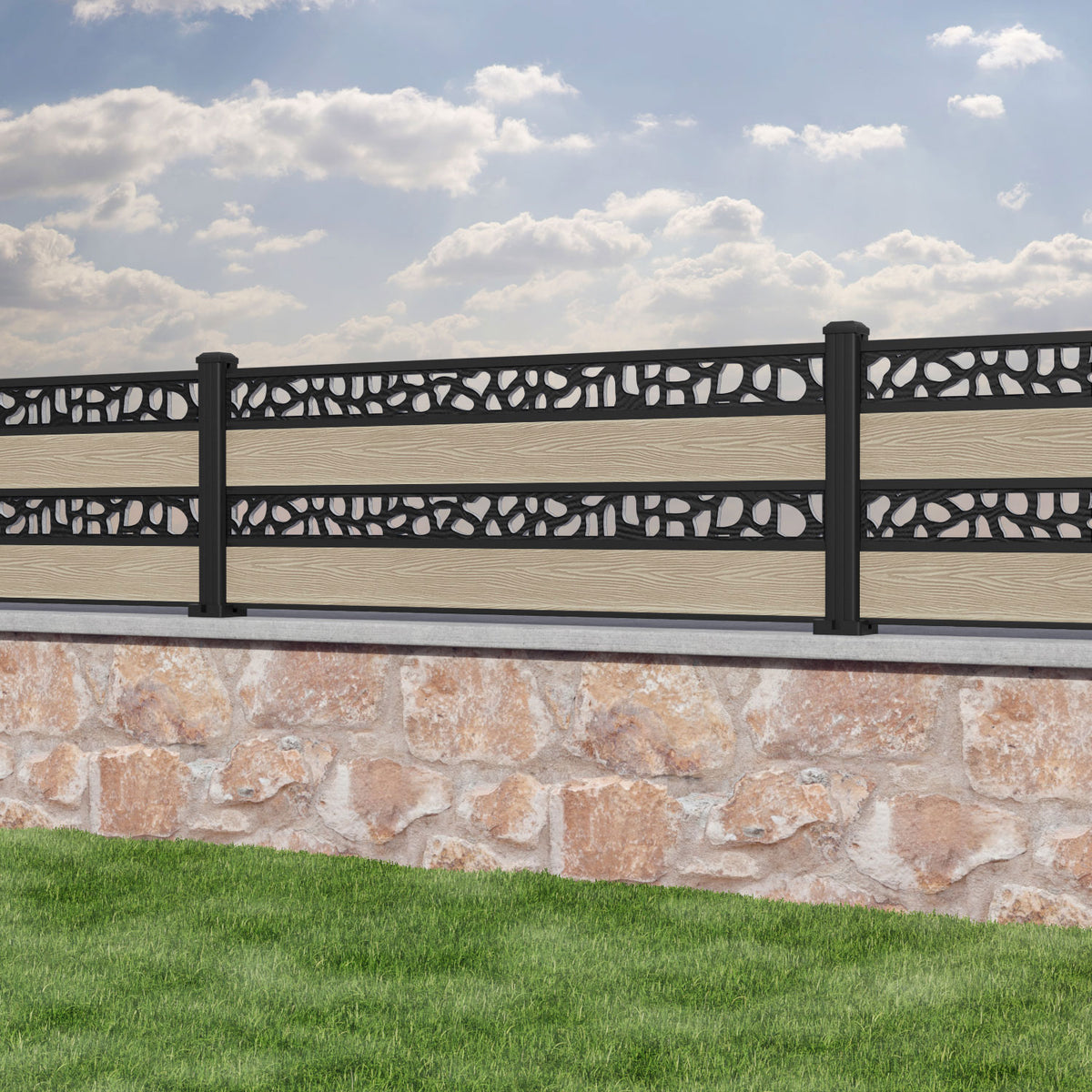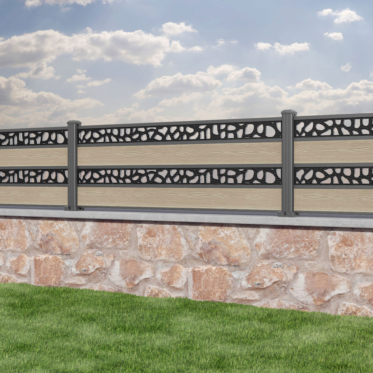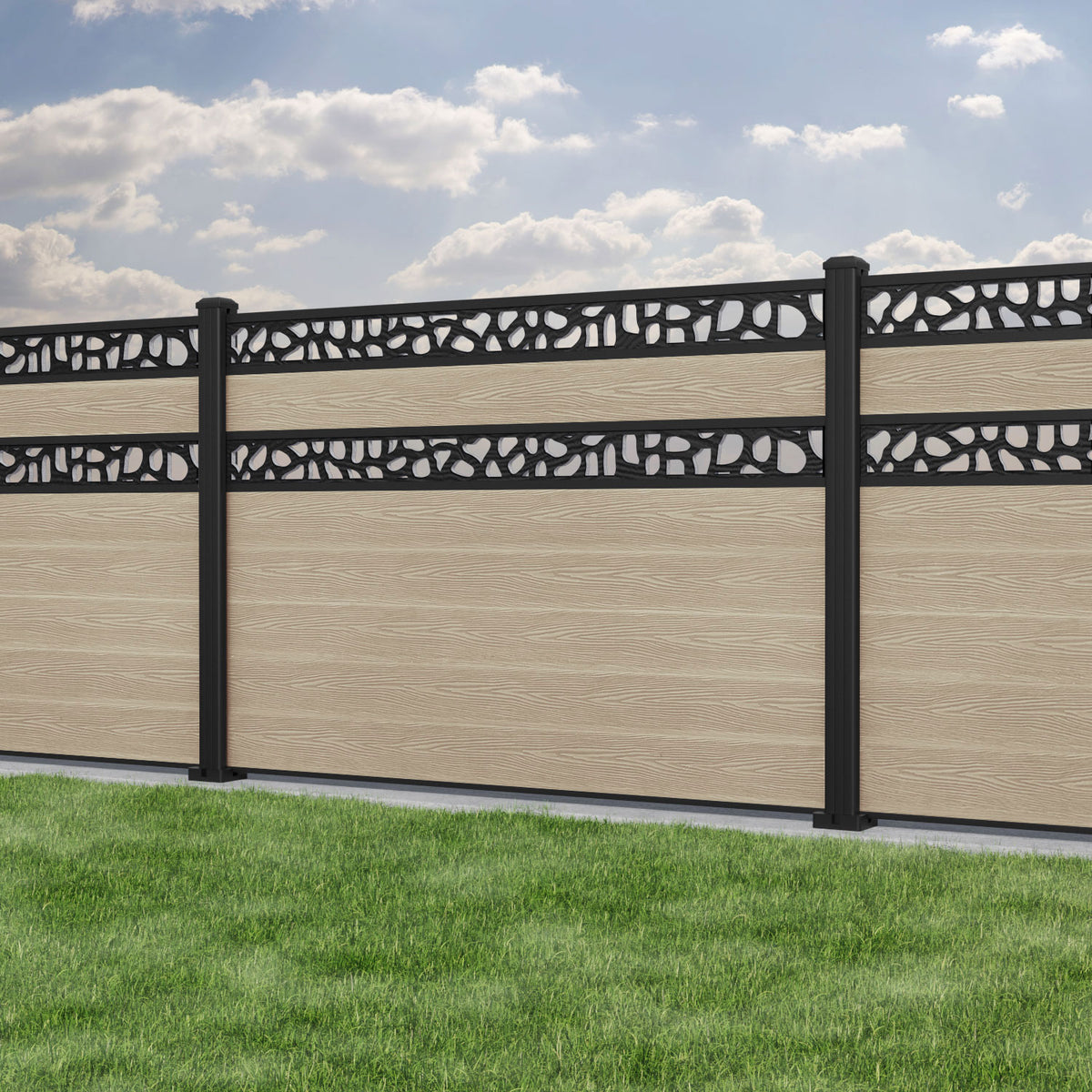 Classic Pebble Split Screen Fence Panel Light Oak - with our aluminium posts