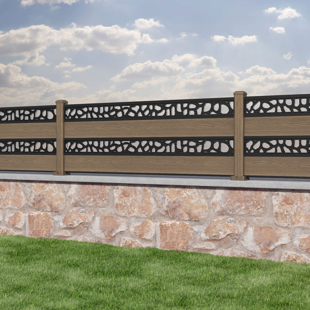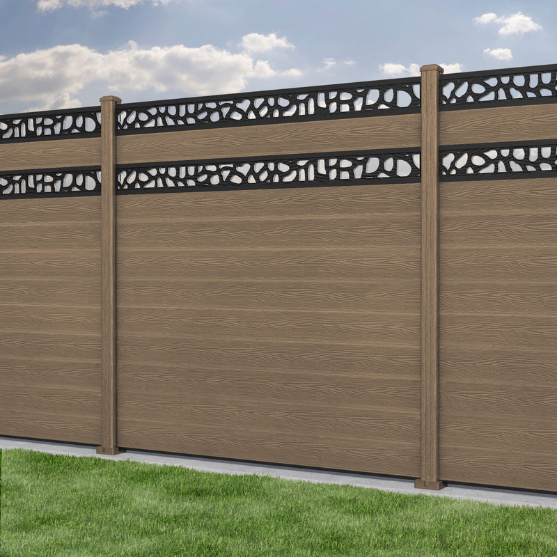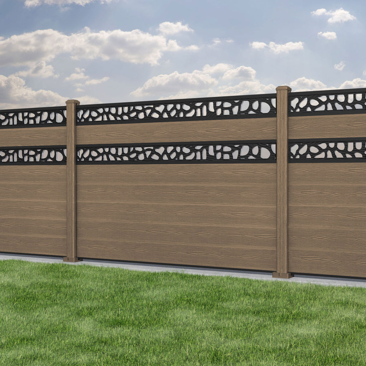 Classic Pebble Split Screen Fence Panel Teak - with our composite posts
