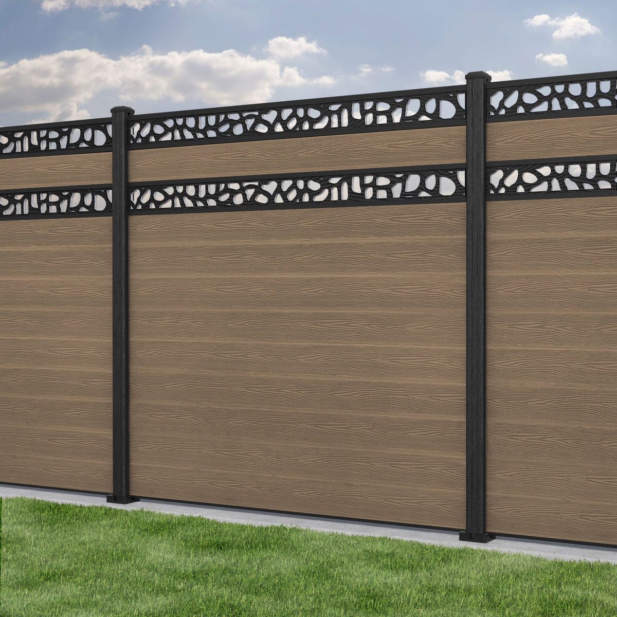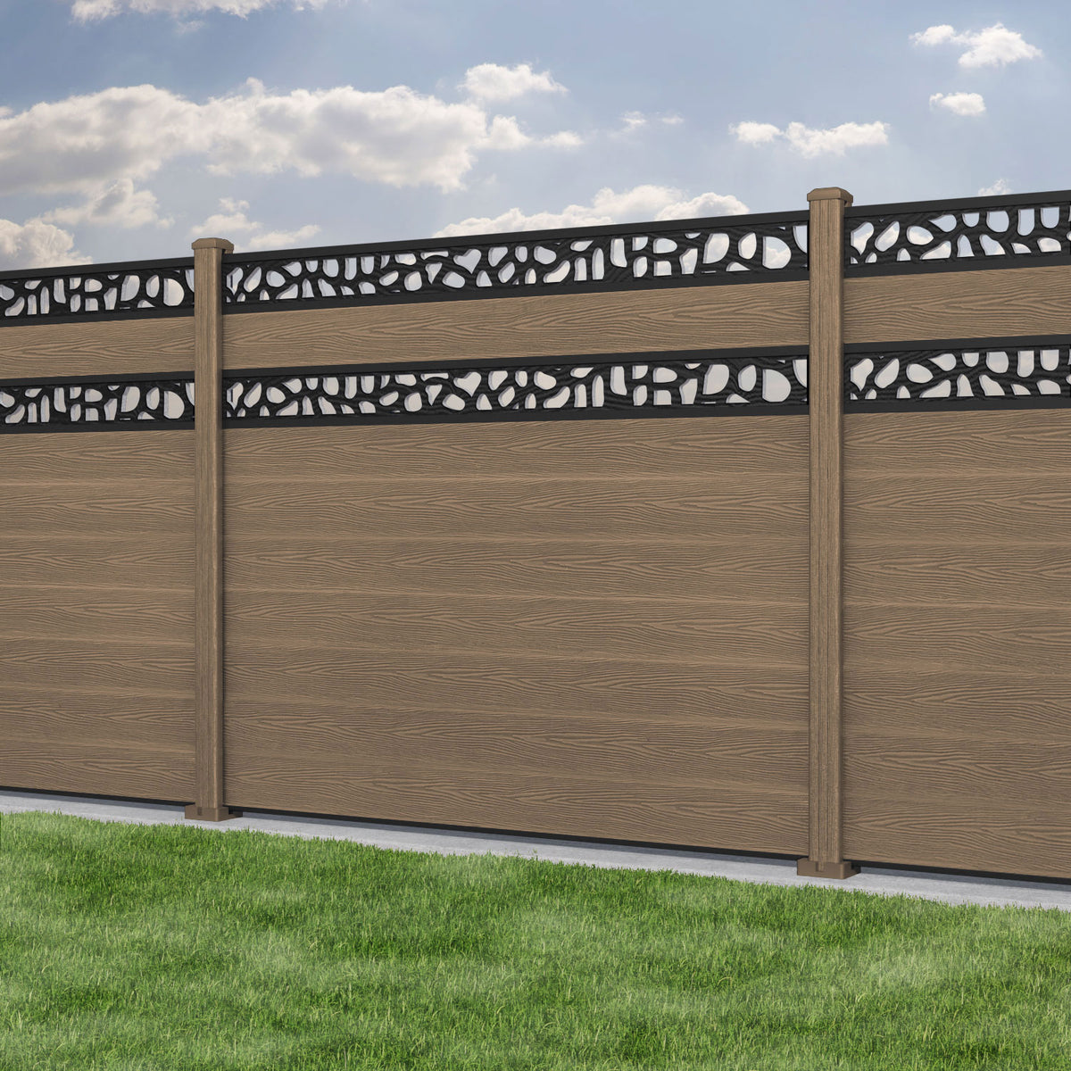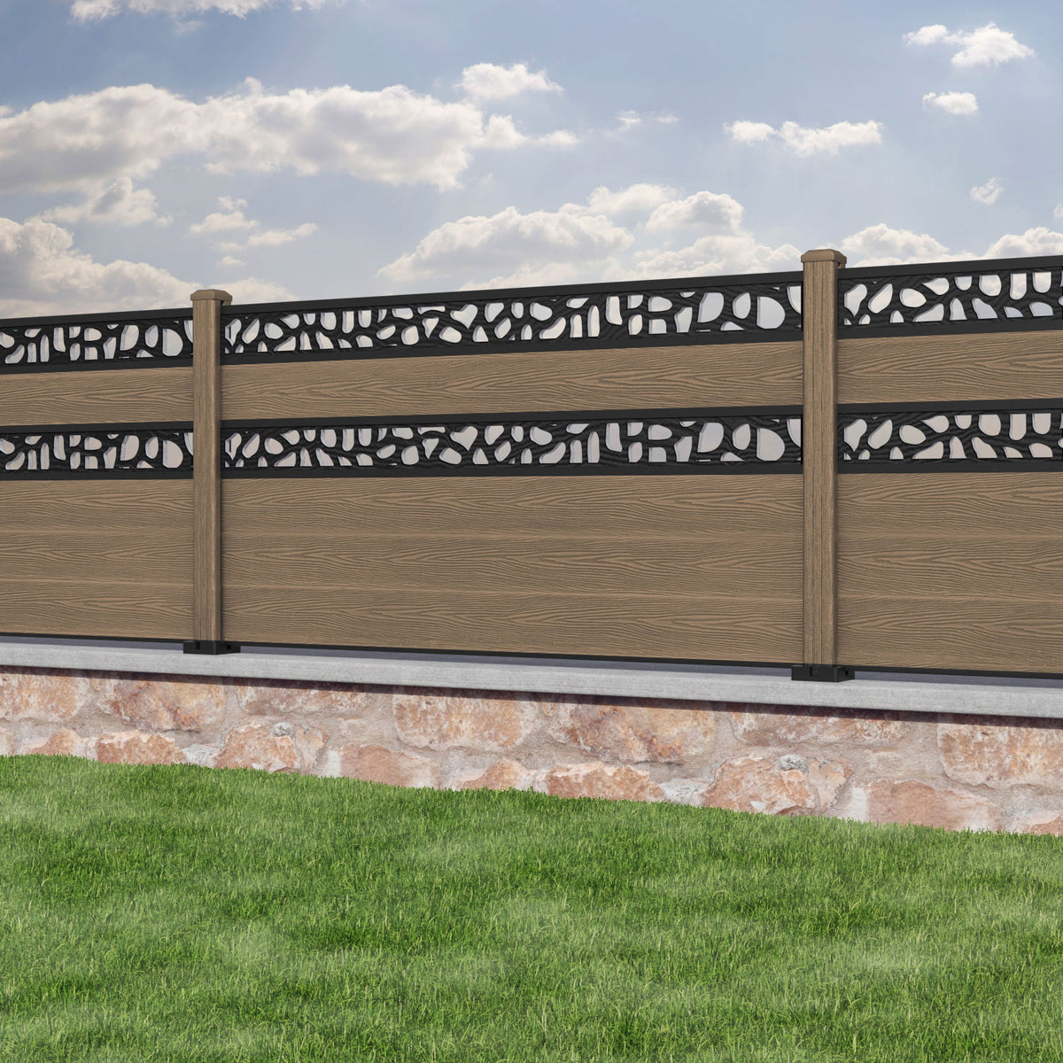 Classic Pebble Split Screen Fence Panel Teak - with our composite posts