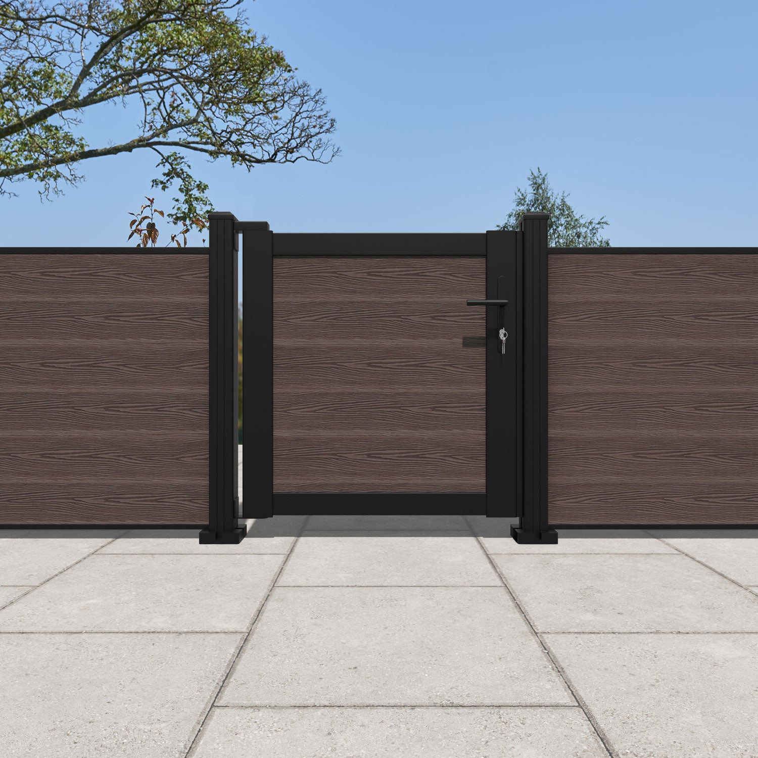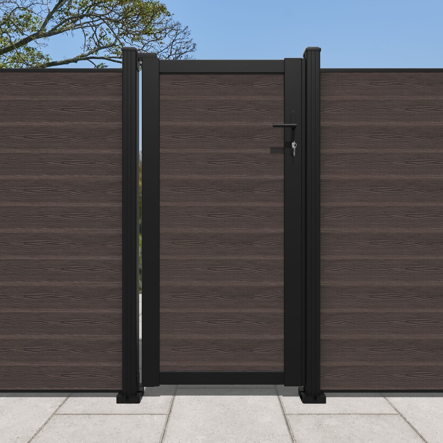 Pair your gate with our eco-friendly composite or aluminium slats for a seamless match to our fencing collections, ensuring a stylish and cohesive look.