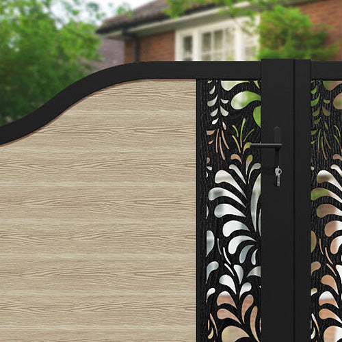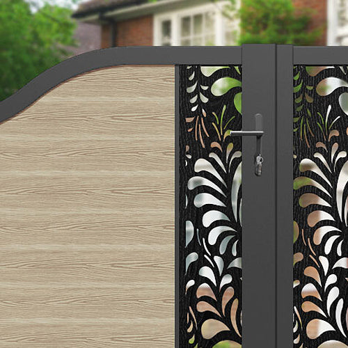 Classic Petal Curved Top Driveway Gate Light Oak - Middle & End Screen