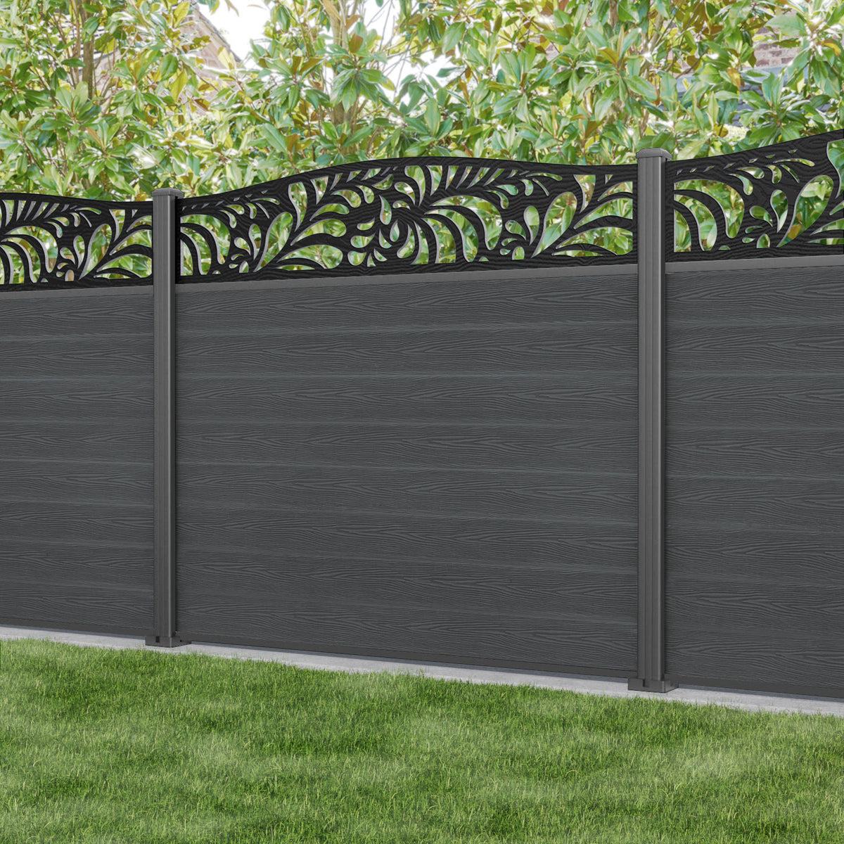 Classic Petal Curved Top Fence Panel Dark Grey - with our aluminium posts
