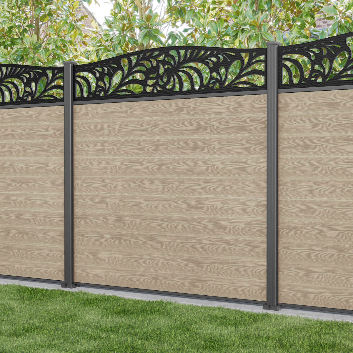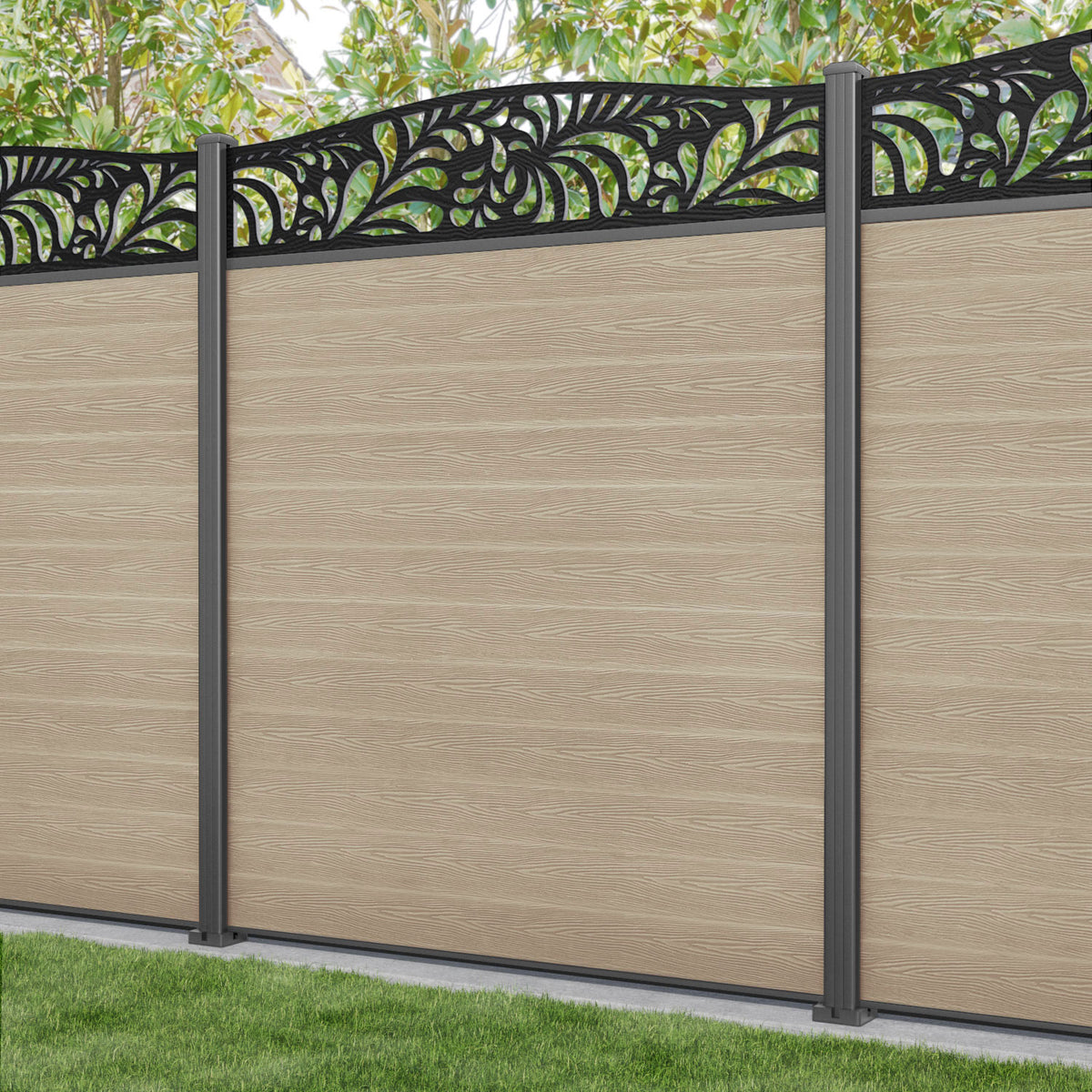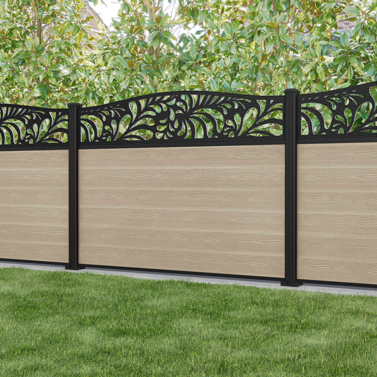 Classic Petal Curved Top Fence Panel Light Oak - with our aluminium posts