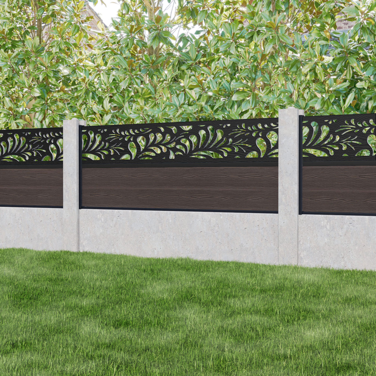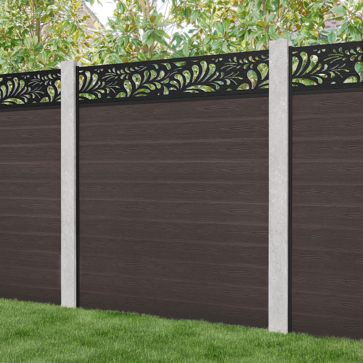 Classic Petal Fence Panel Mid Brown - for existing concrete posts