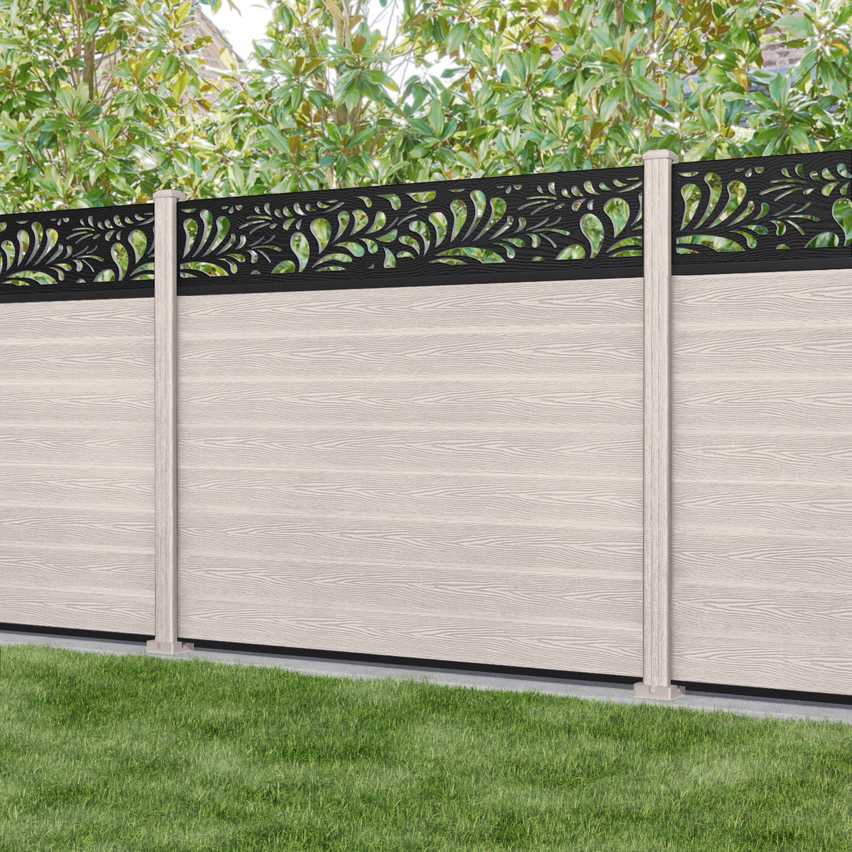 Classic Petal Fence Panel Mid Stone - with our composite posts