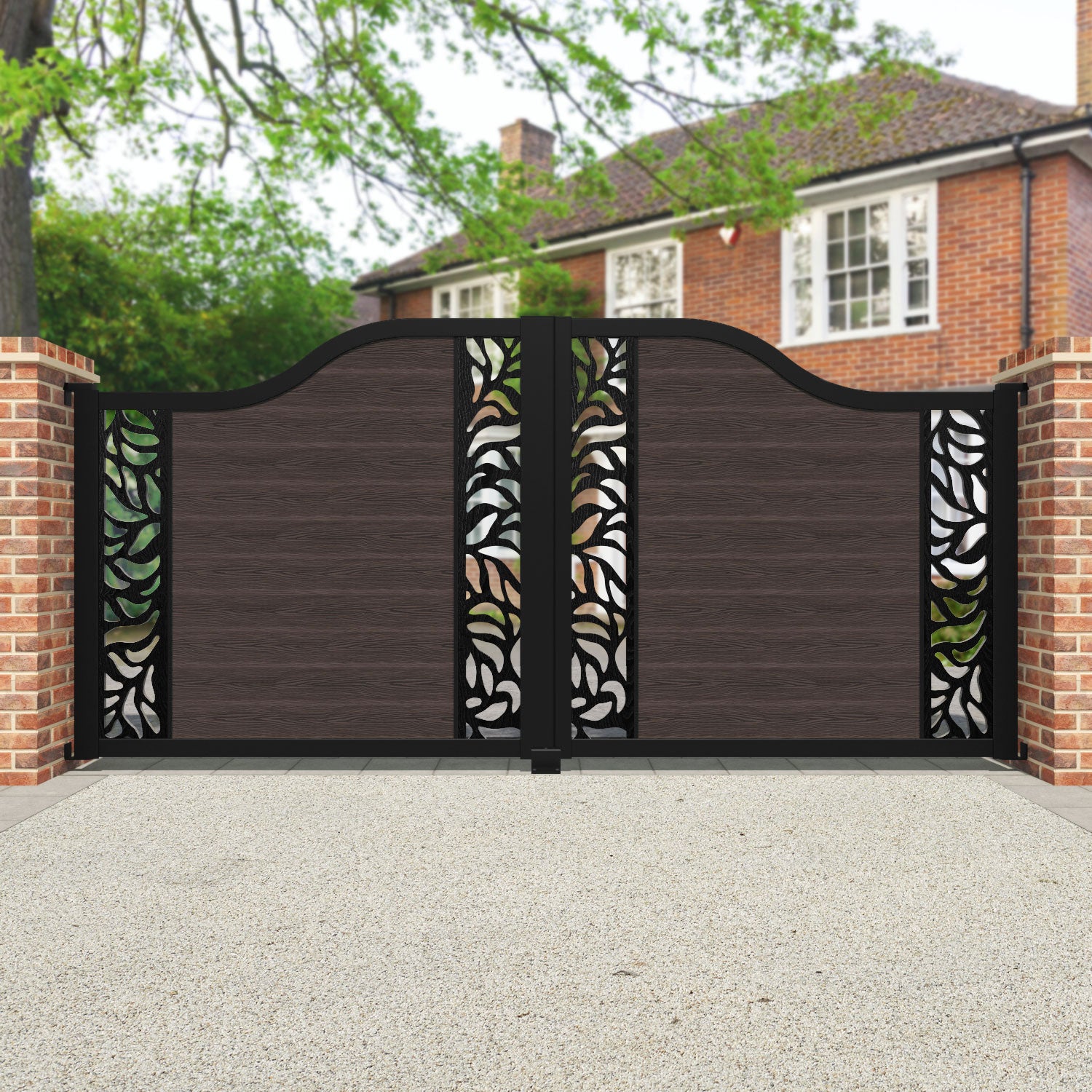 Classic Plume Curved Top Driveway Gate Mid Brown - Middle & End Screen
