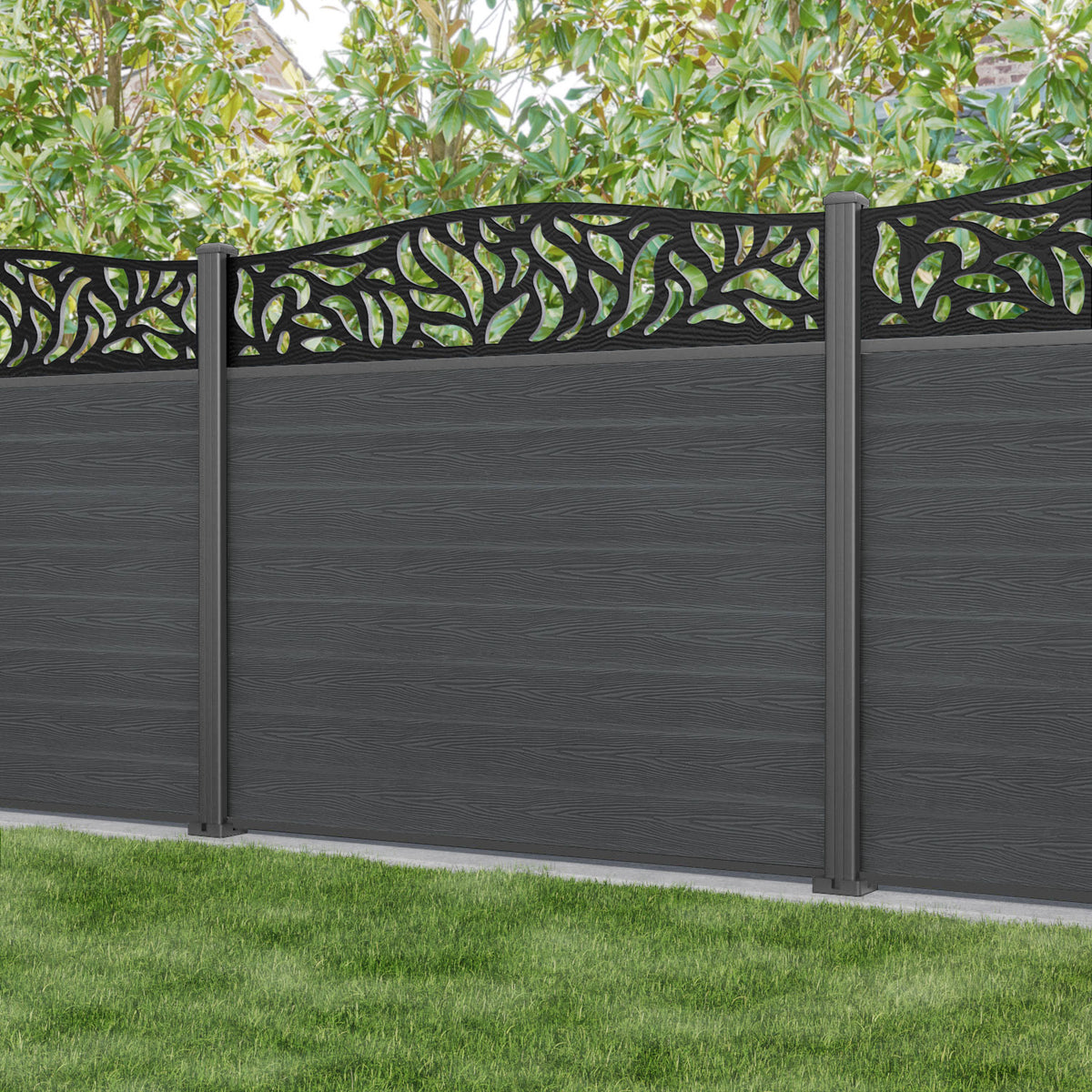 Classic Plume Curved Top Fence Panel Dark Grey - with our aluminium posts