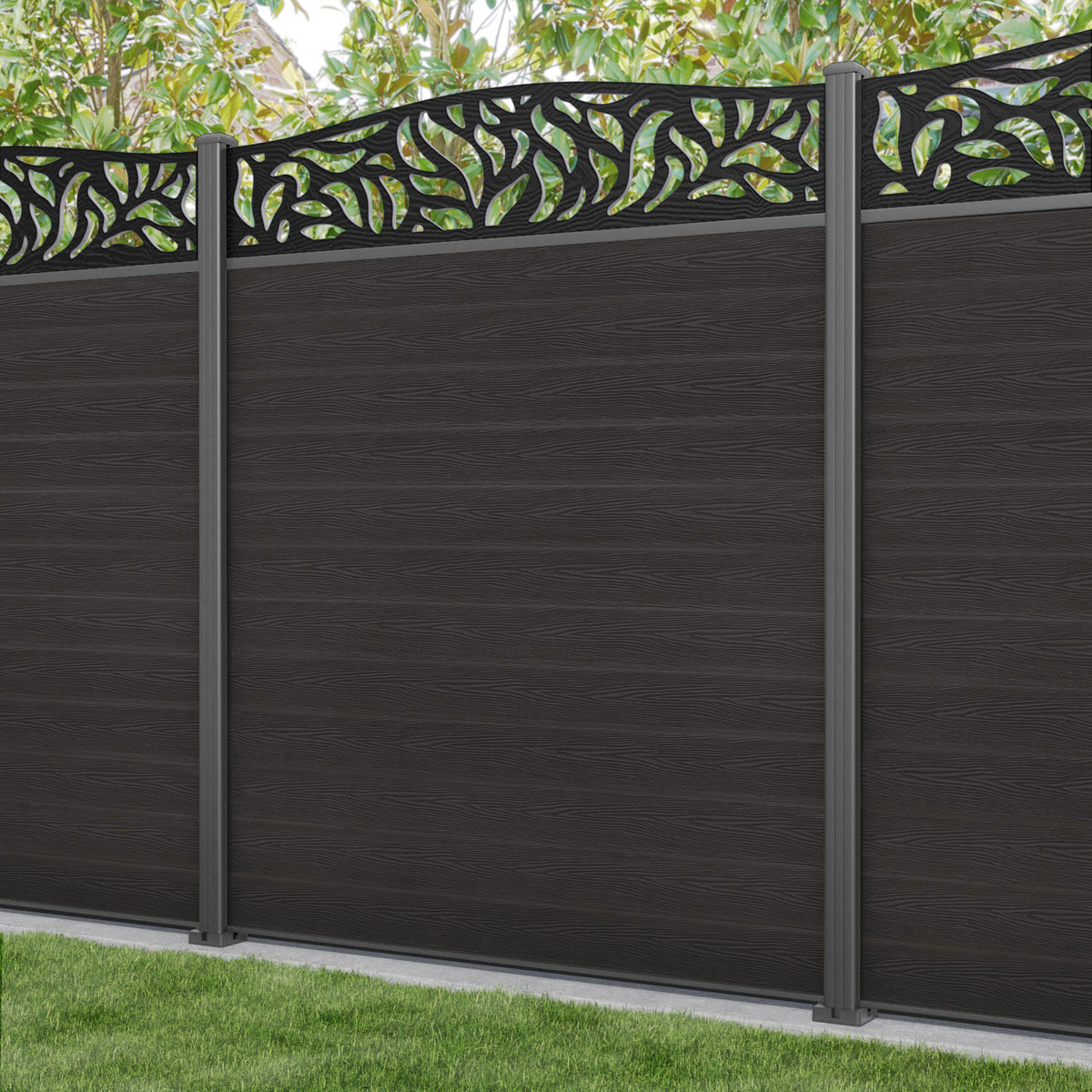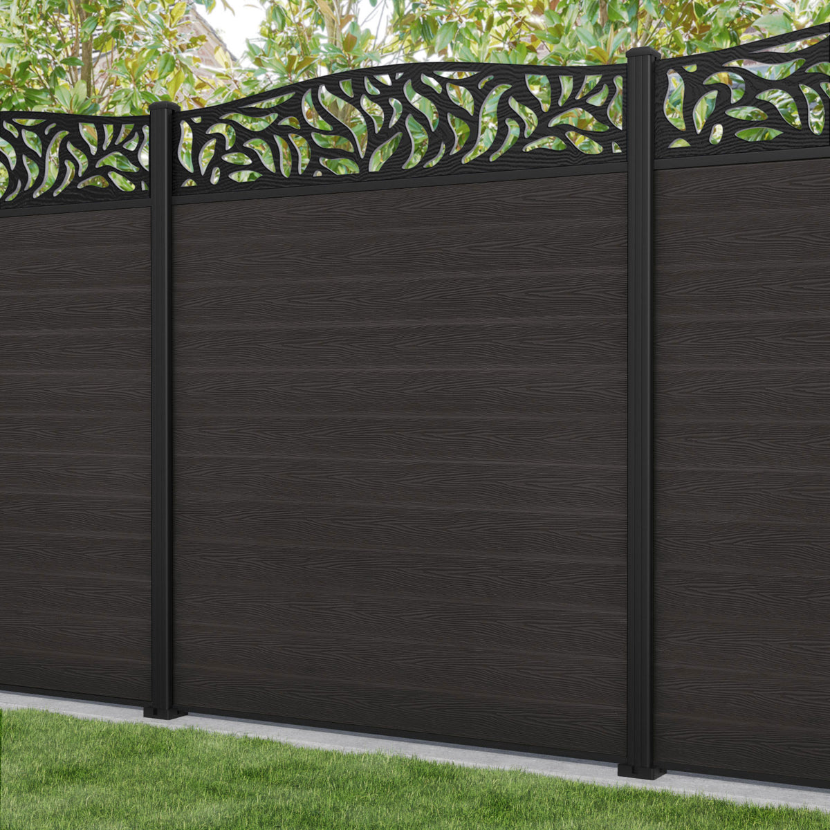 Classic Plume Curved Top Fence Panel Dark Oak - with our aluminium posts