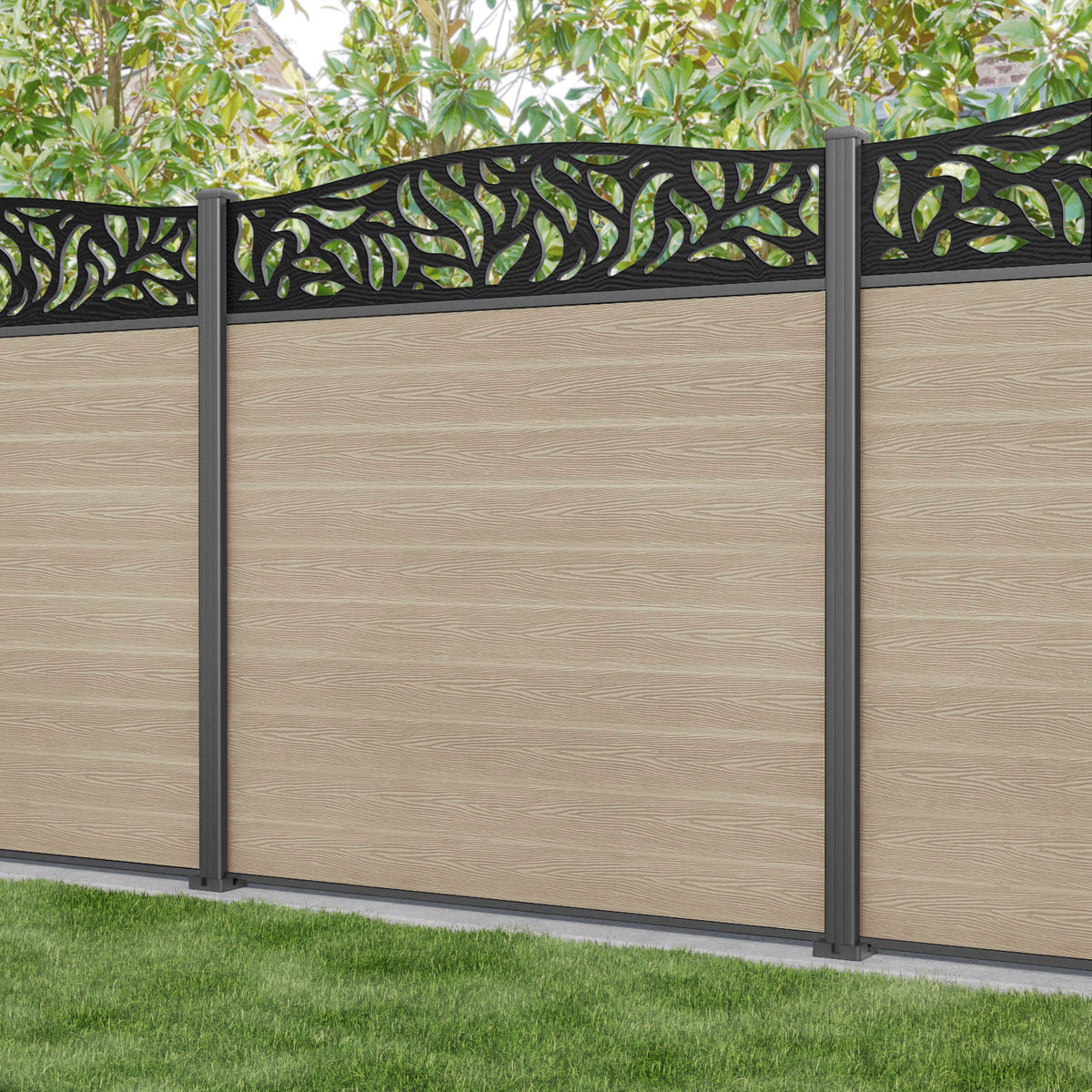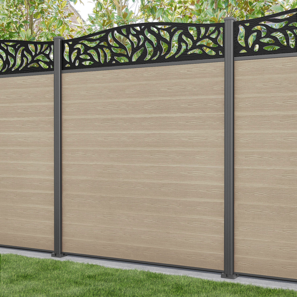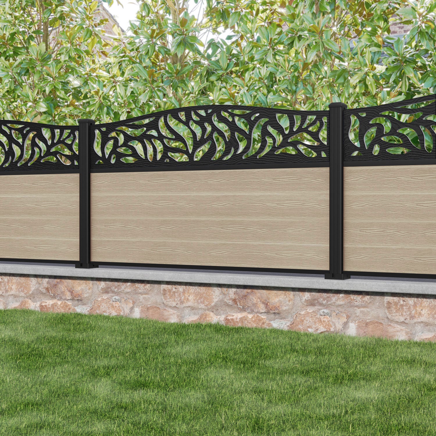 Classic Plume Curved Top Fence Panel Light Oak - with our aluminium posts