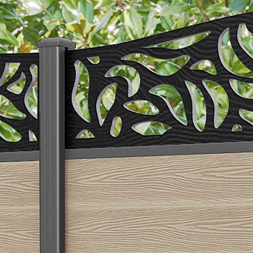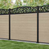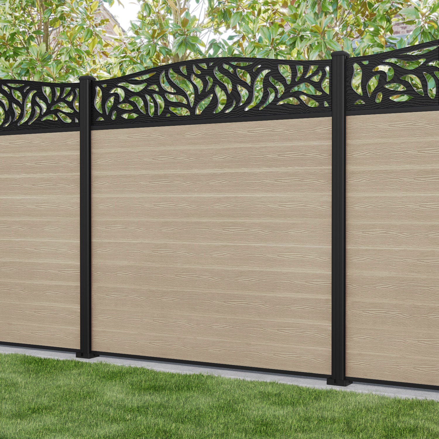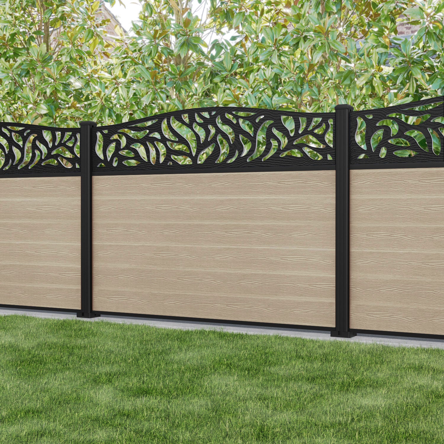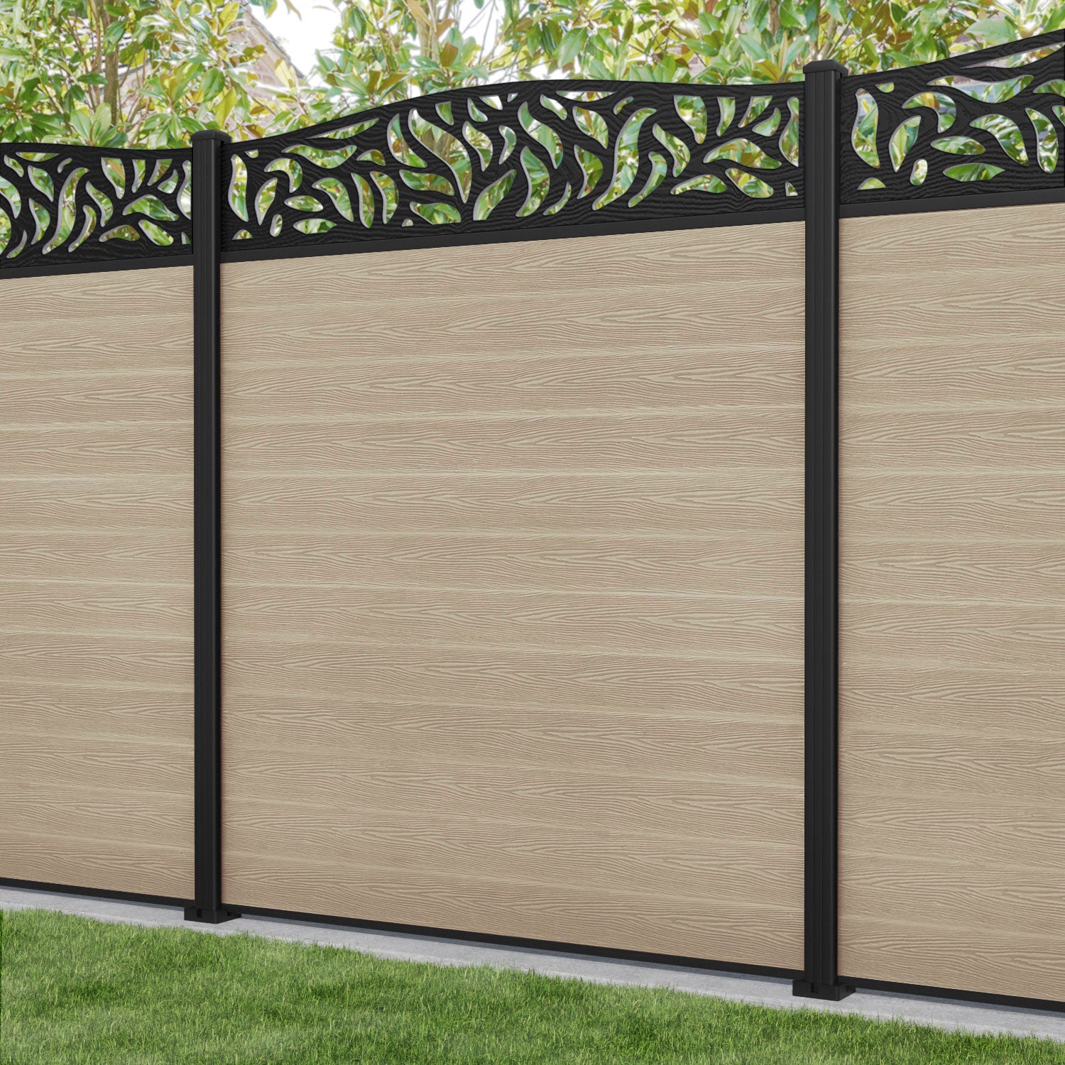 Classic Plume Curved Top Fence Panel Light Oak - with our aluminium posts