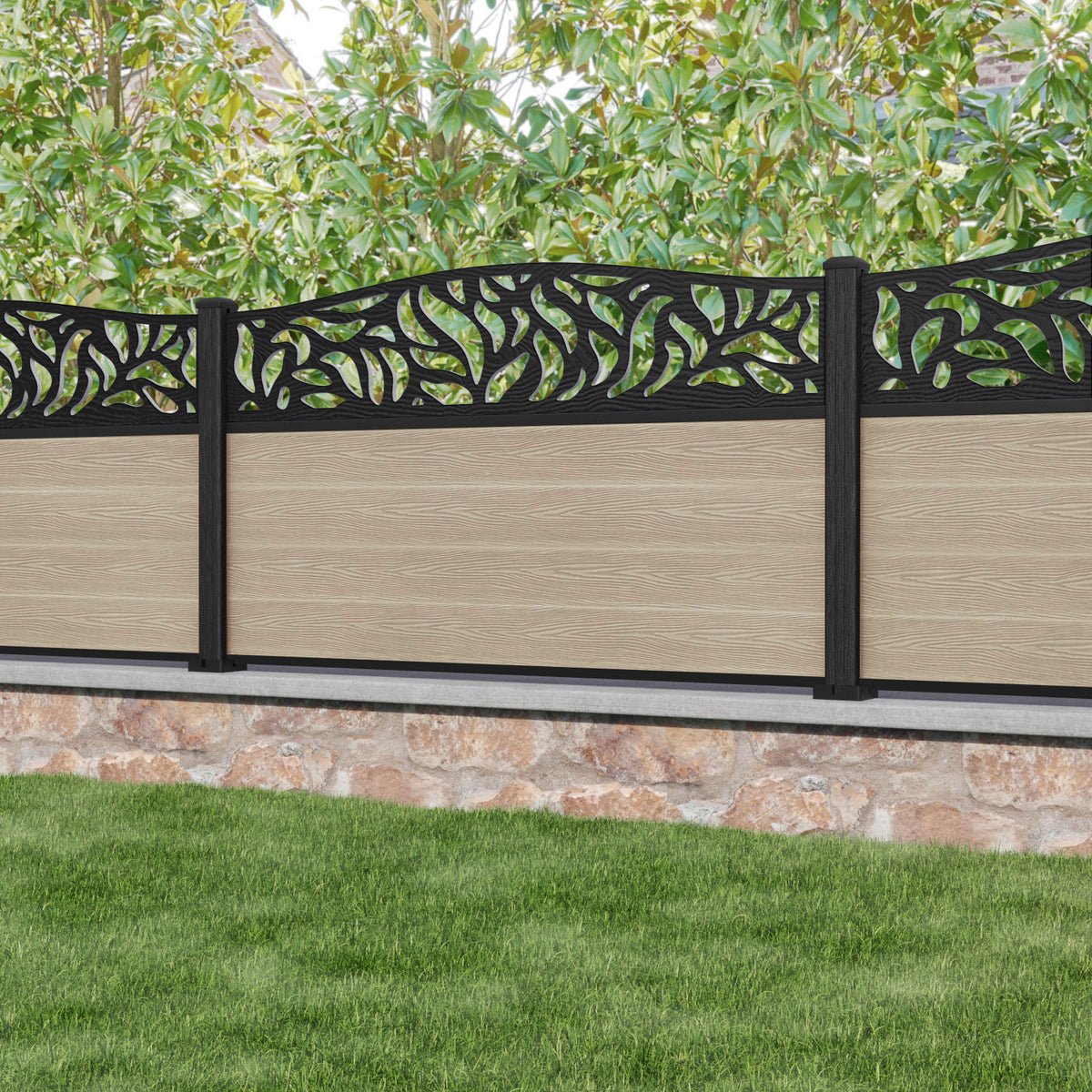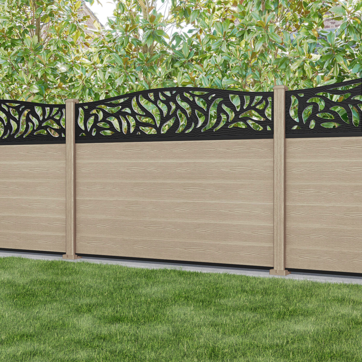 Classic Plume Curved Top Fence Panel Light Oak - with our composite posts