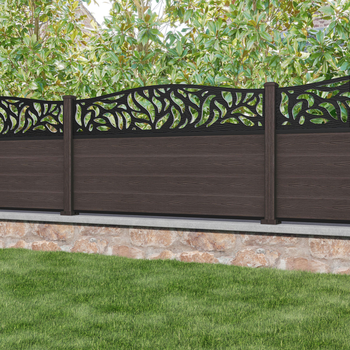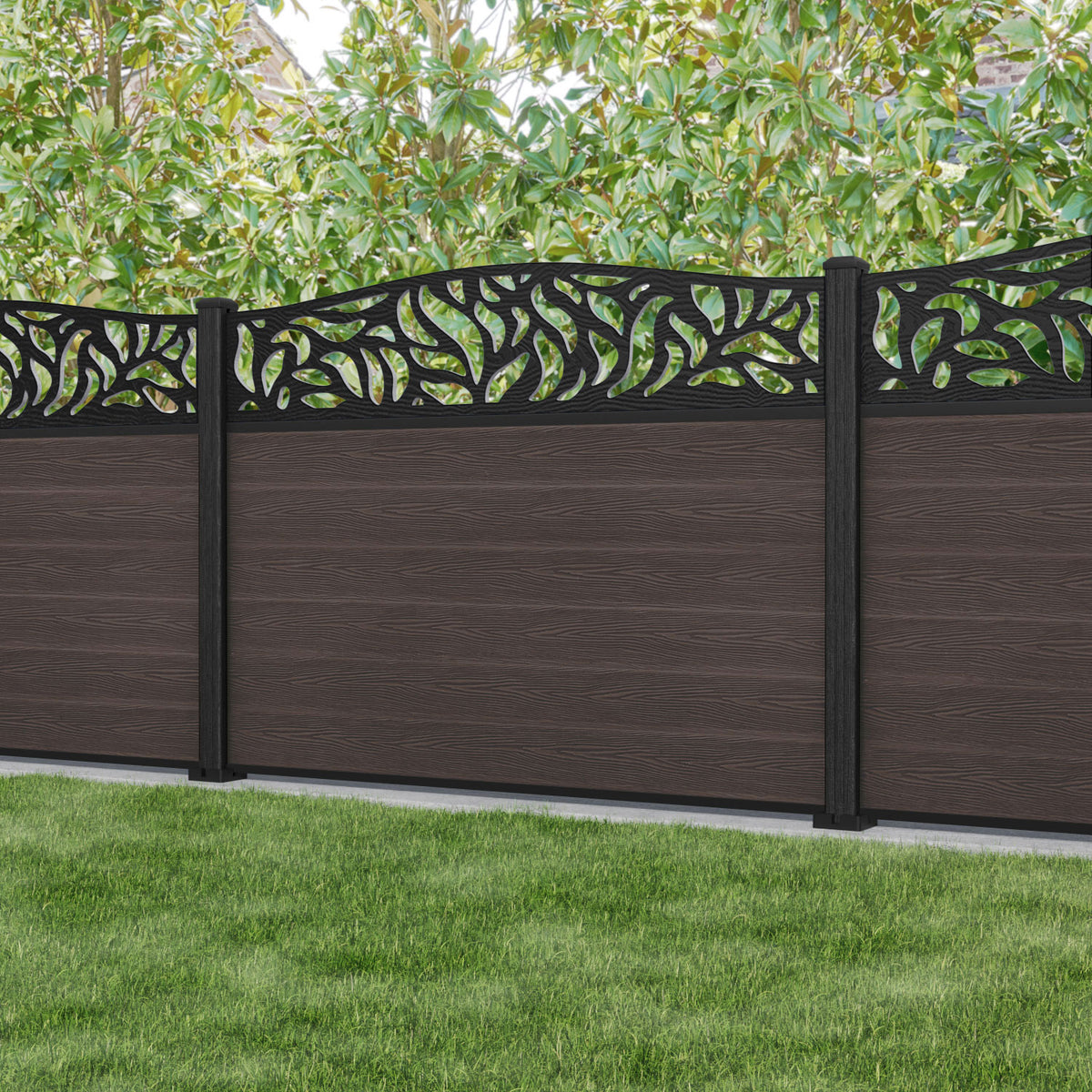 Classic Plume Curved Top Fence Panel Mid Brown - with our composite posts