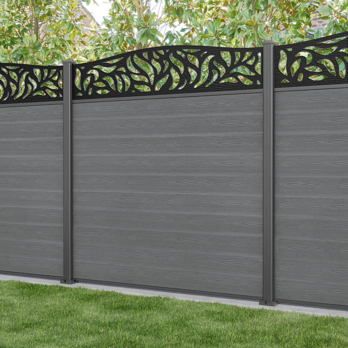 Classic Plume Curved Top Fence Panel Mid Grey - with our aluminium posts