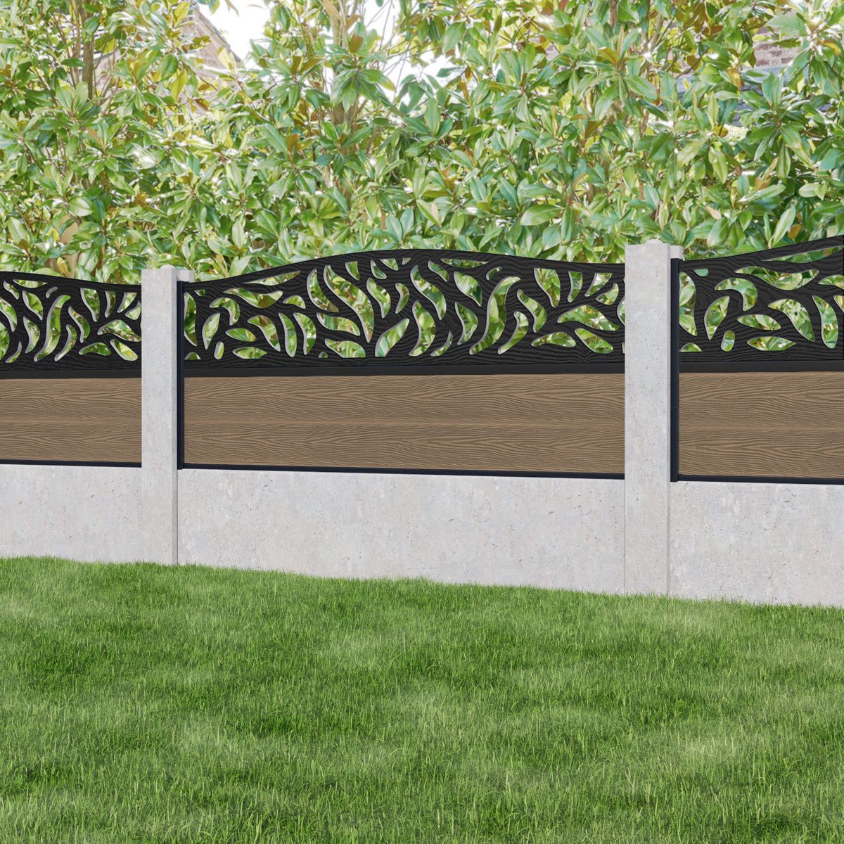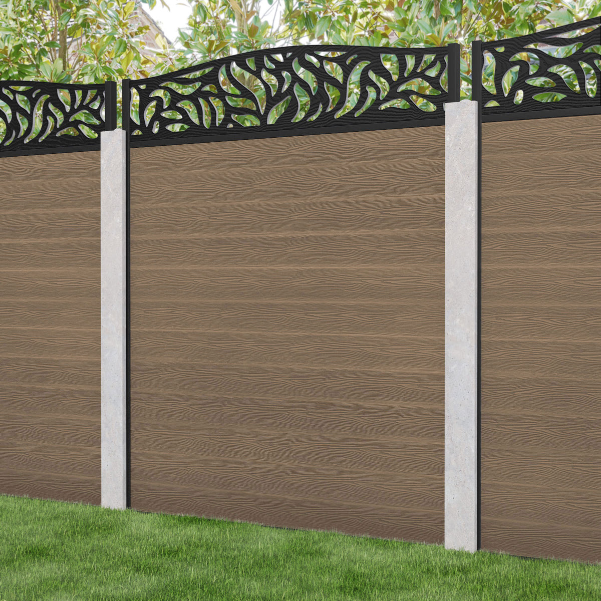 Classic Plume Curved Top Fence Panel Teak - for existing concrete posts