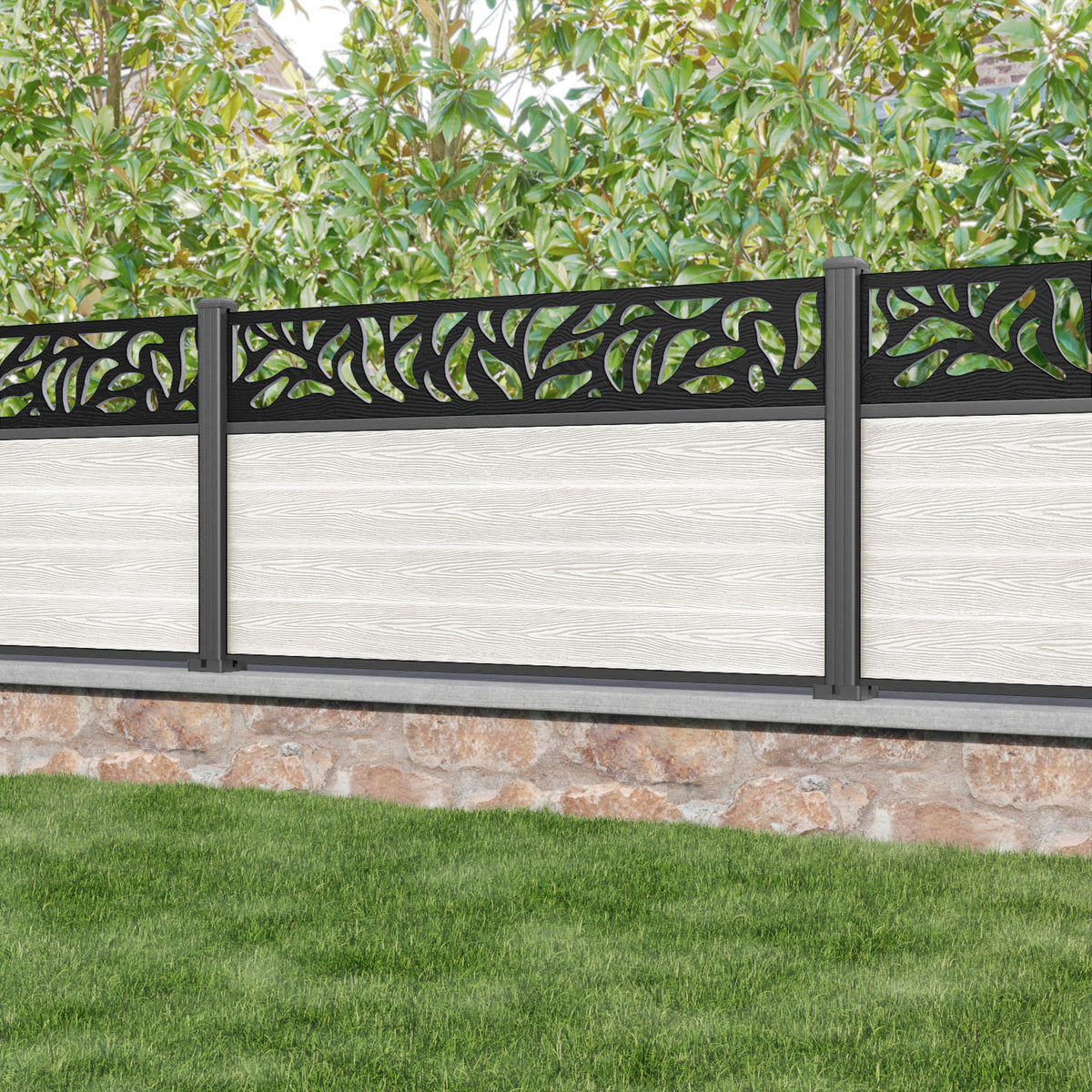Classic Plume Fence Panel Light Stone - with our aluminium posts