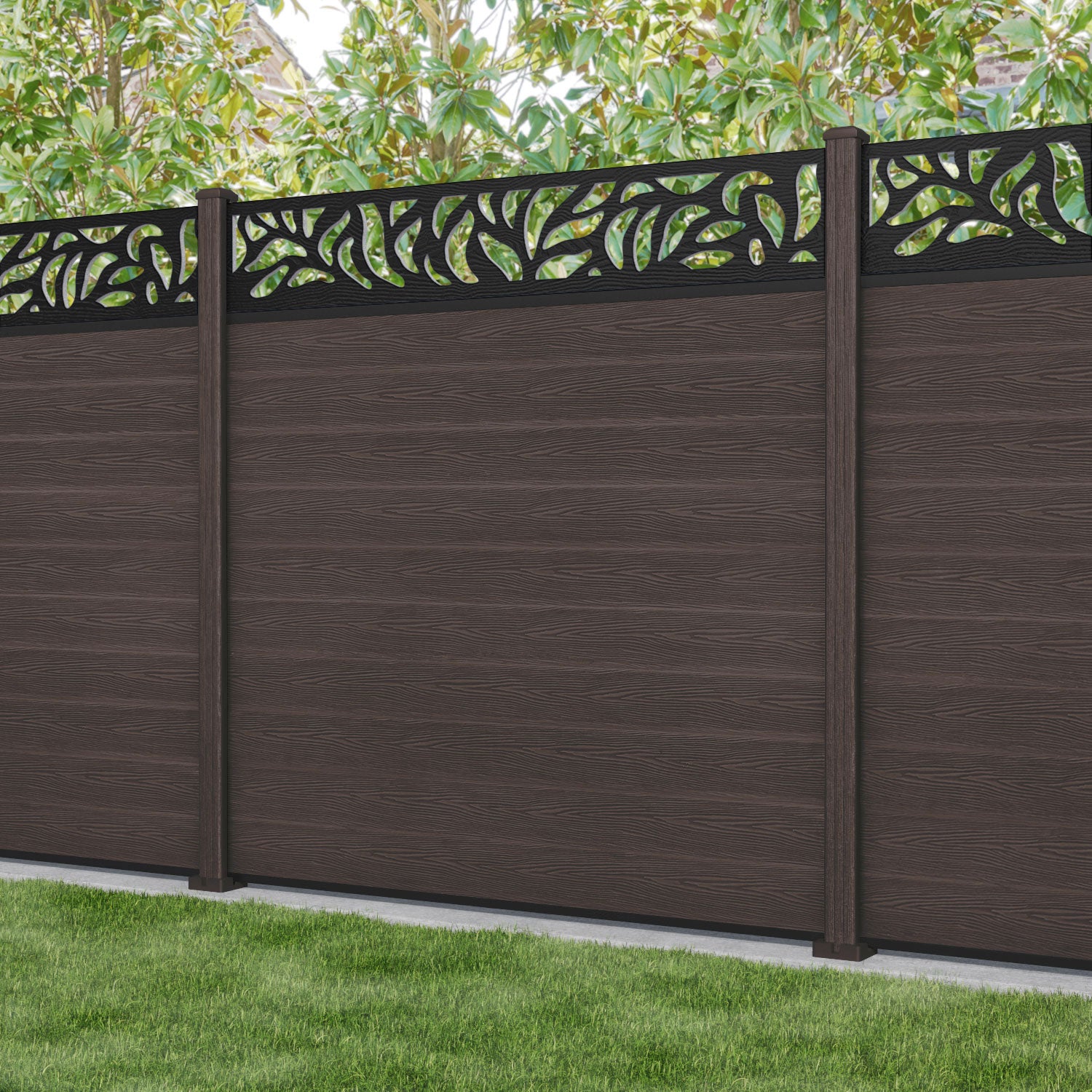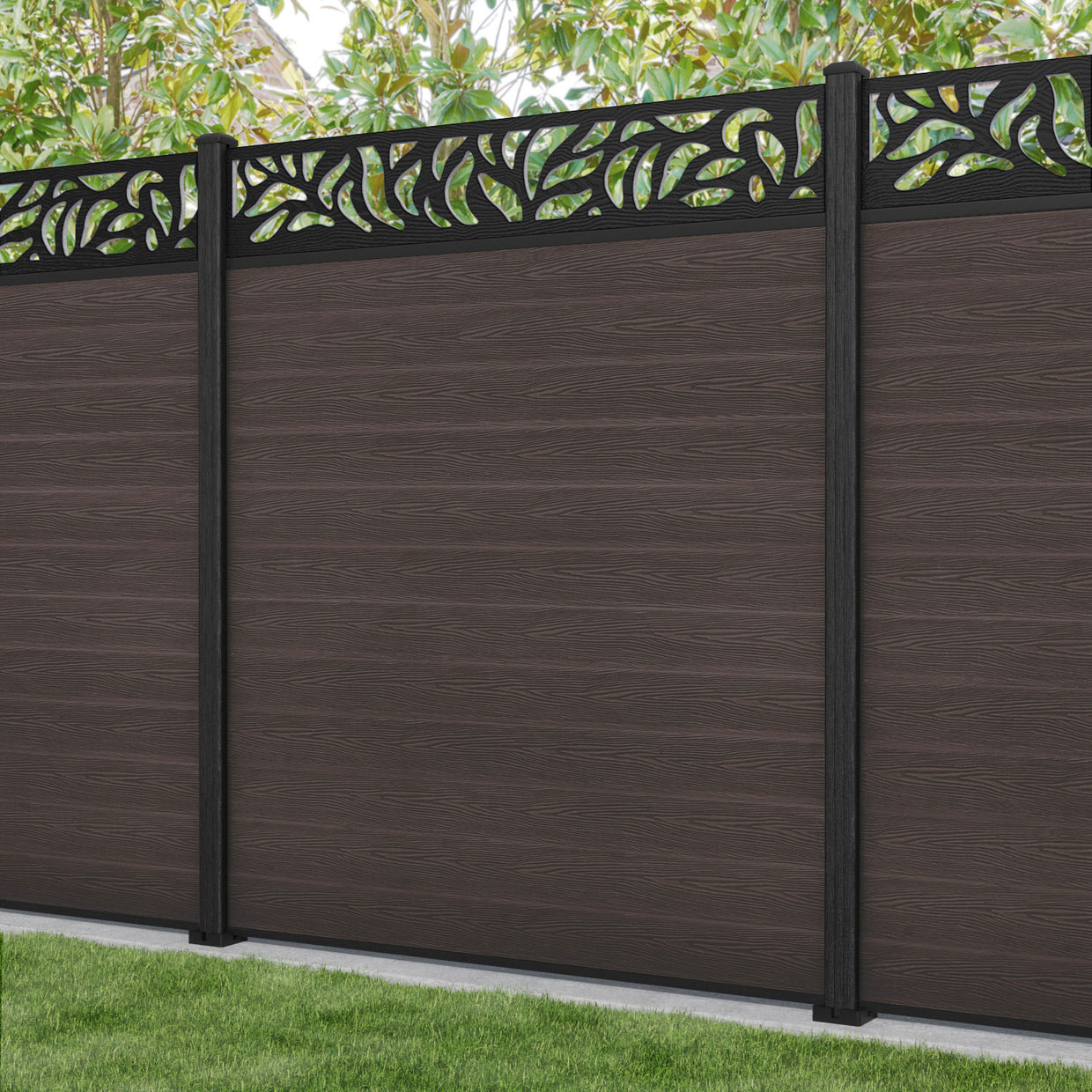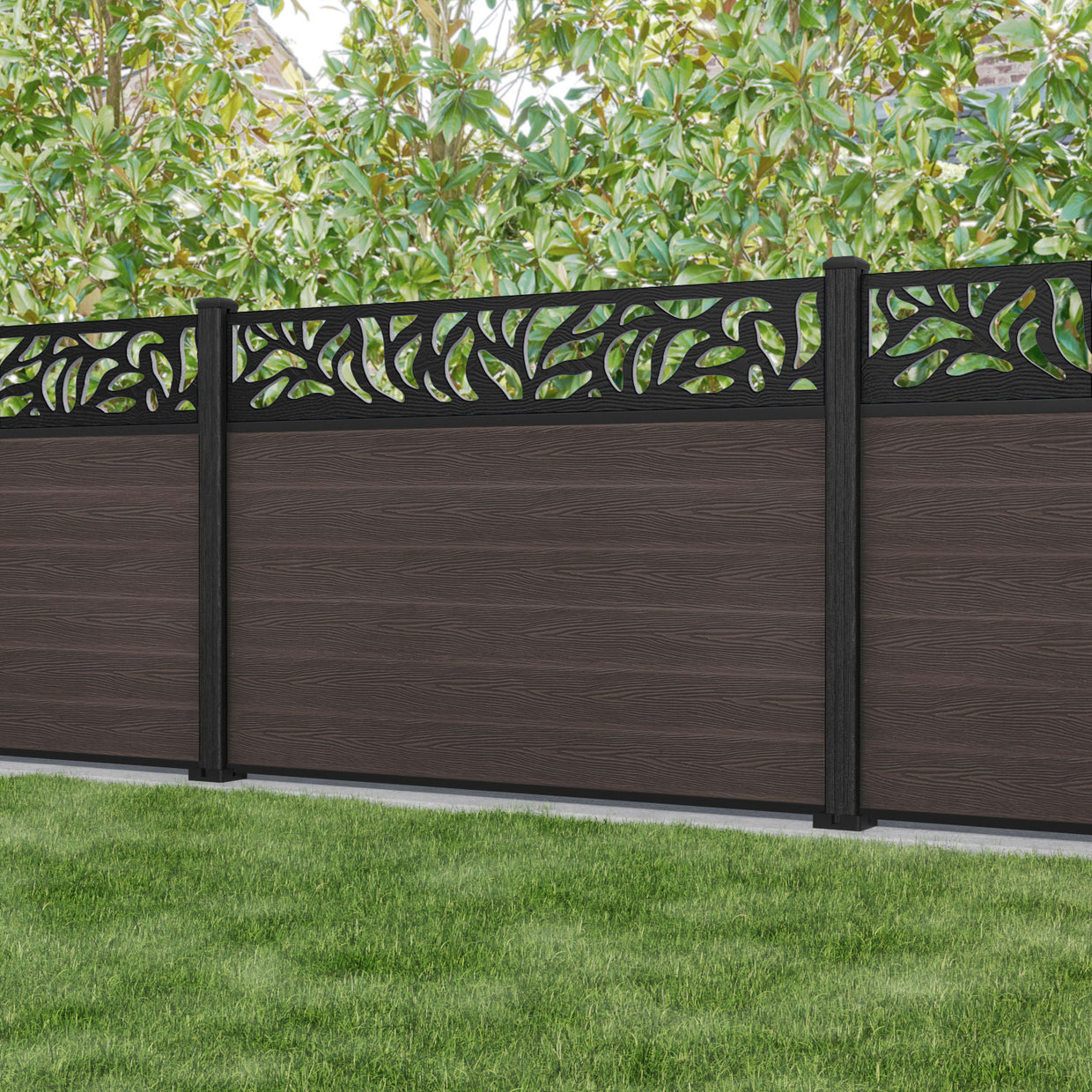 Classic Plume Fence Panel Mid Brown - with our composite posts