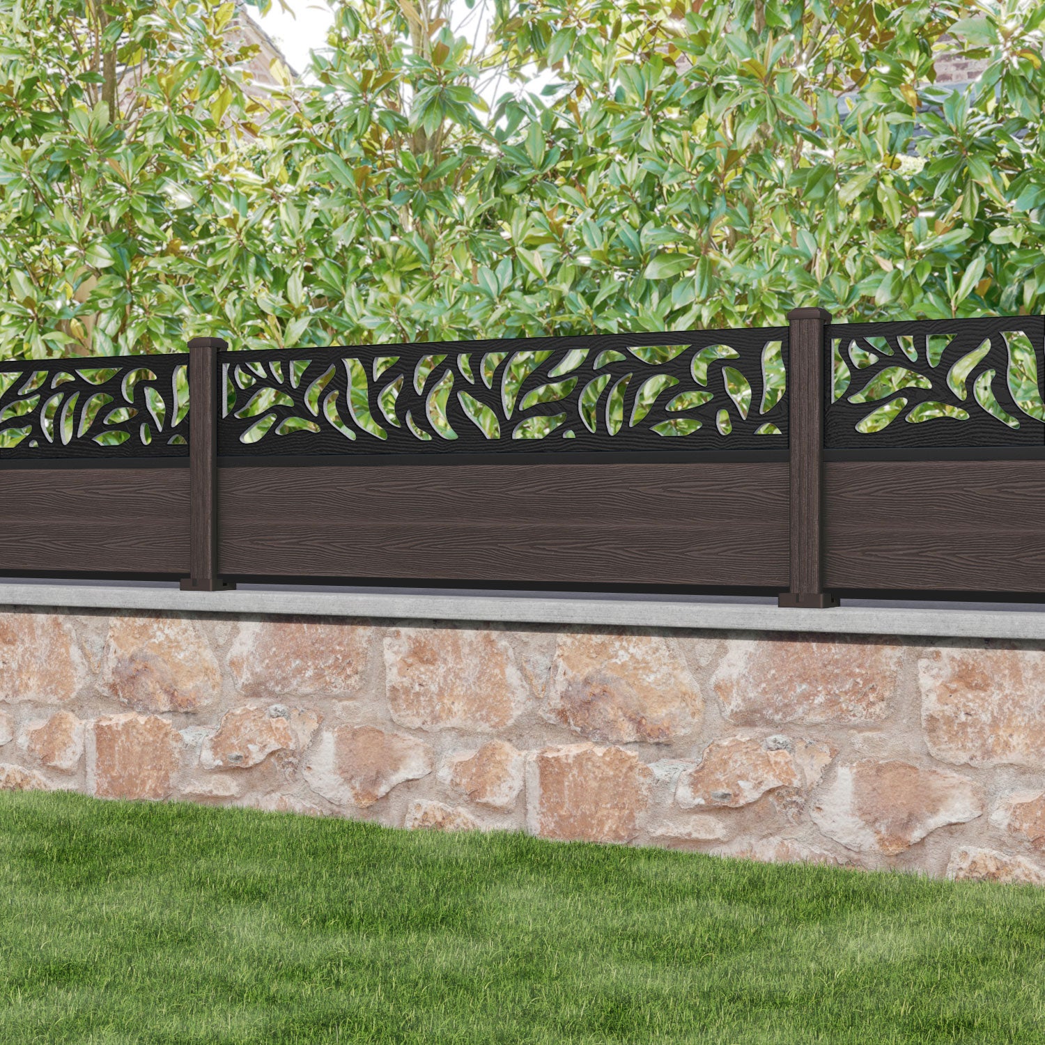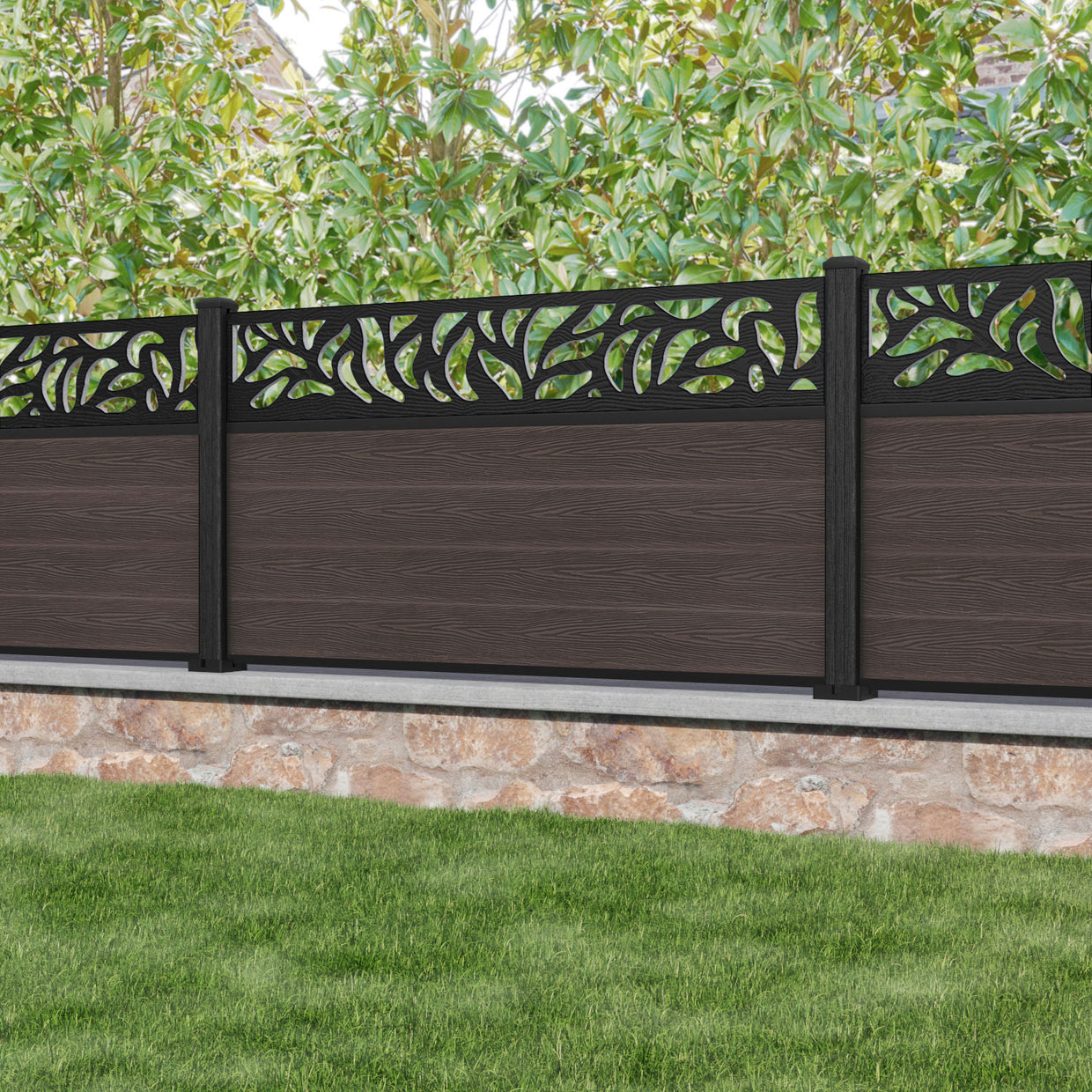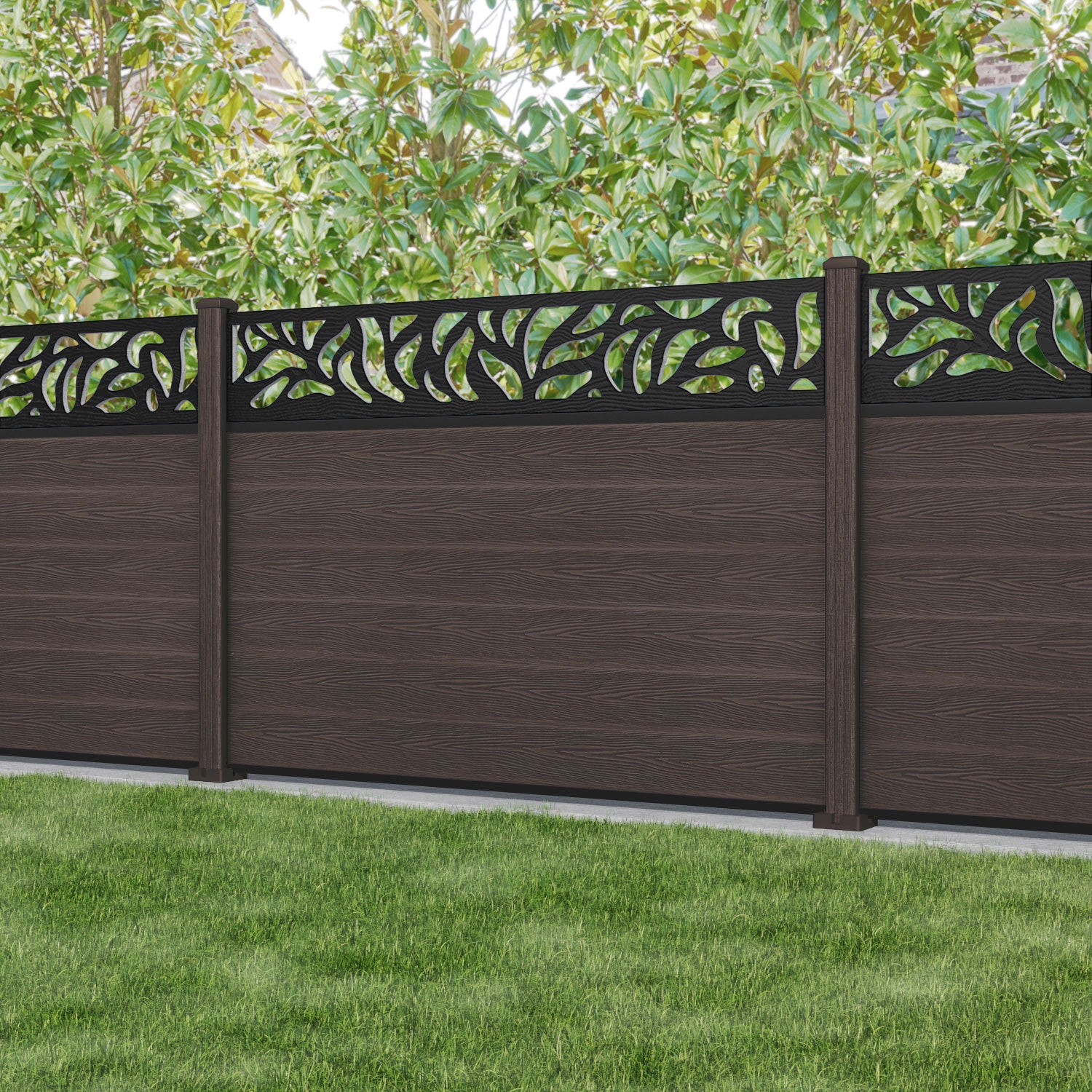 Classic Plume Fence Panel Mid Brown - with our composite posts