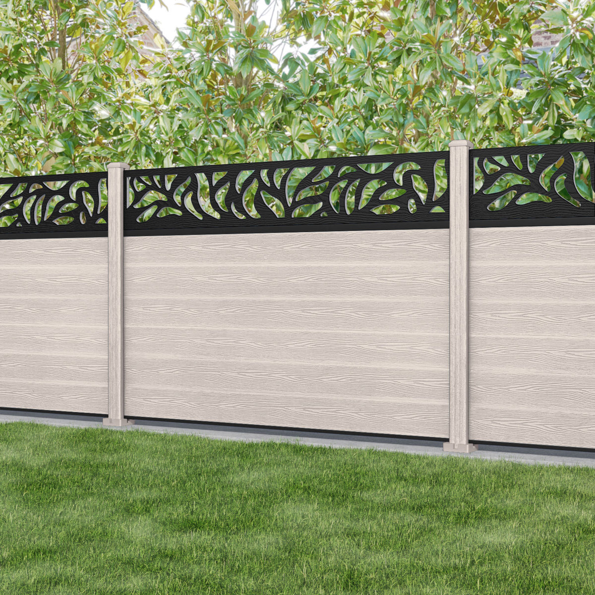 Classic Plume Fence Panel Mid Stone - with our composite posts