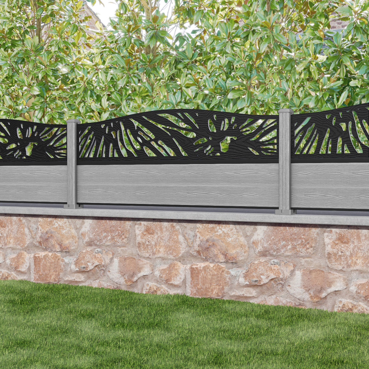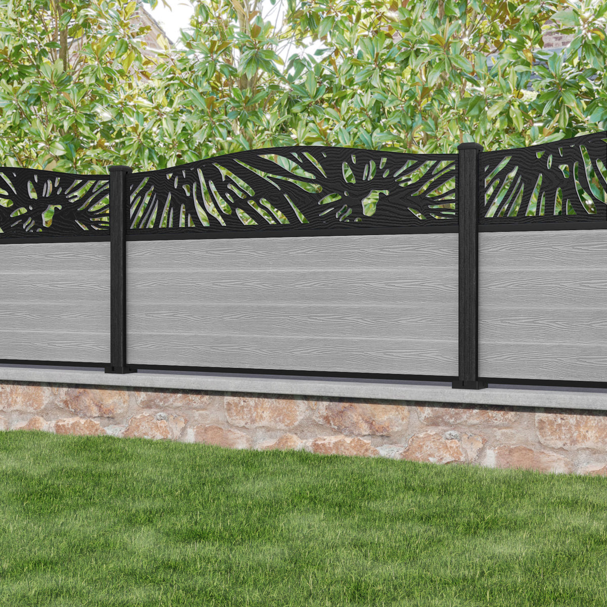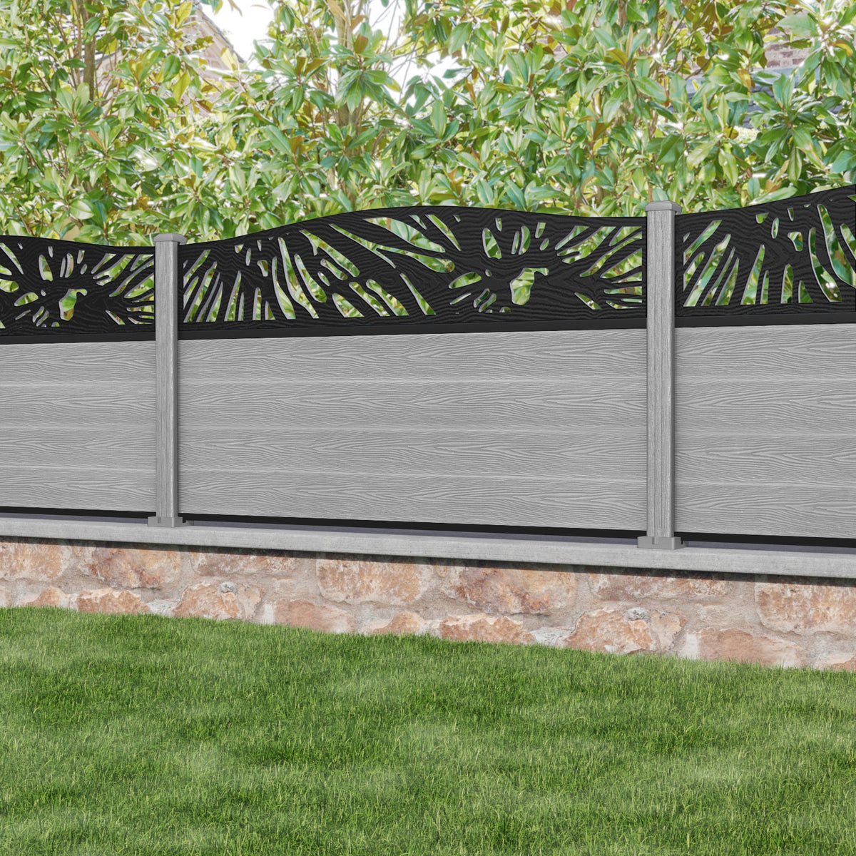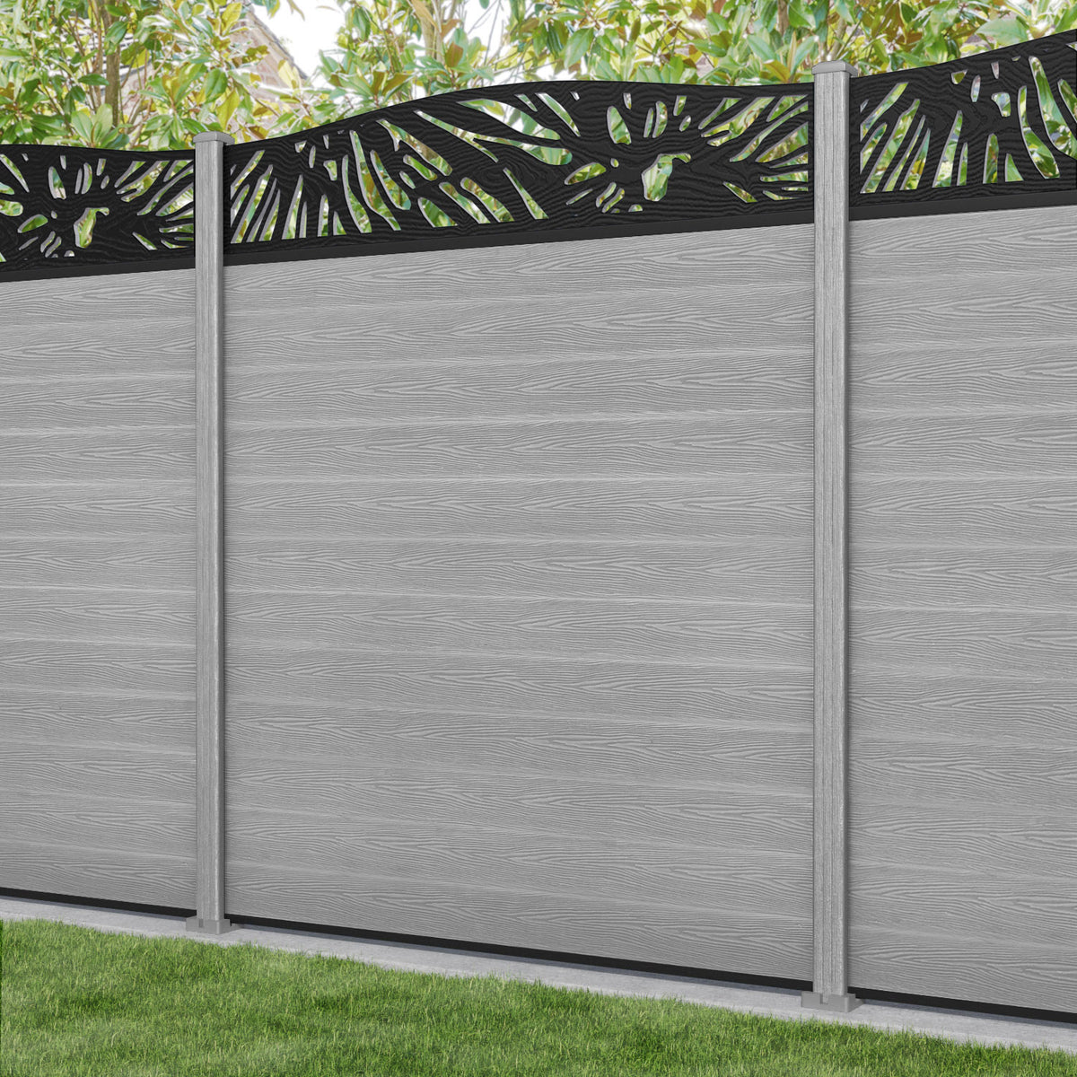 Classic Poppy Curved Top Fence Panel Light Grey - with our composite posts
