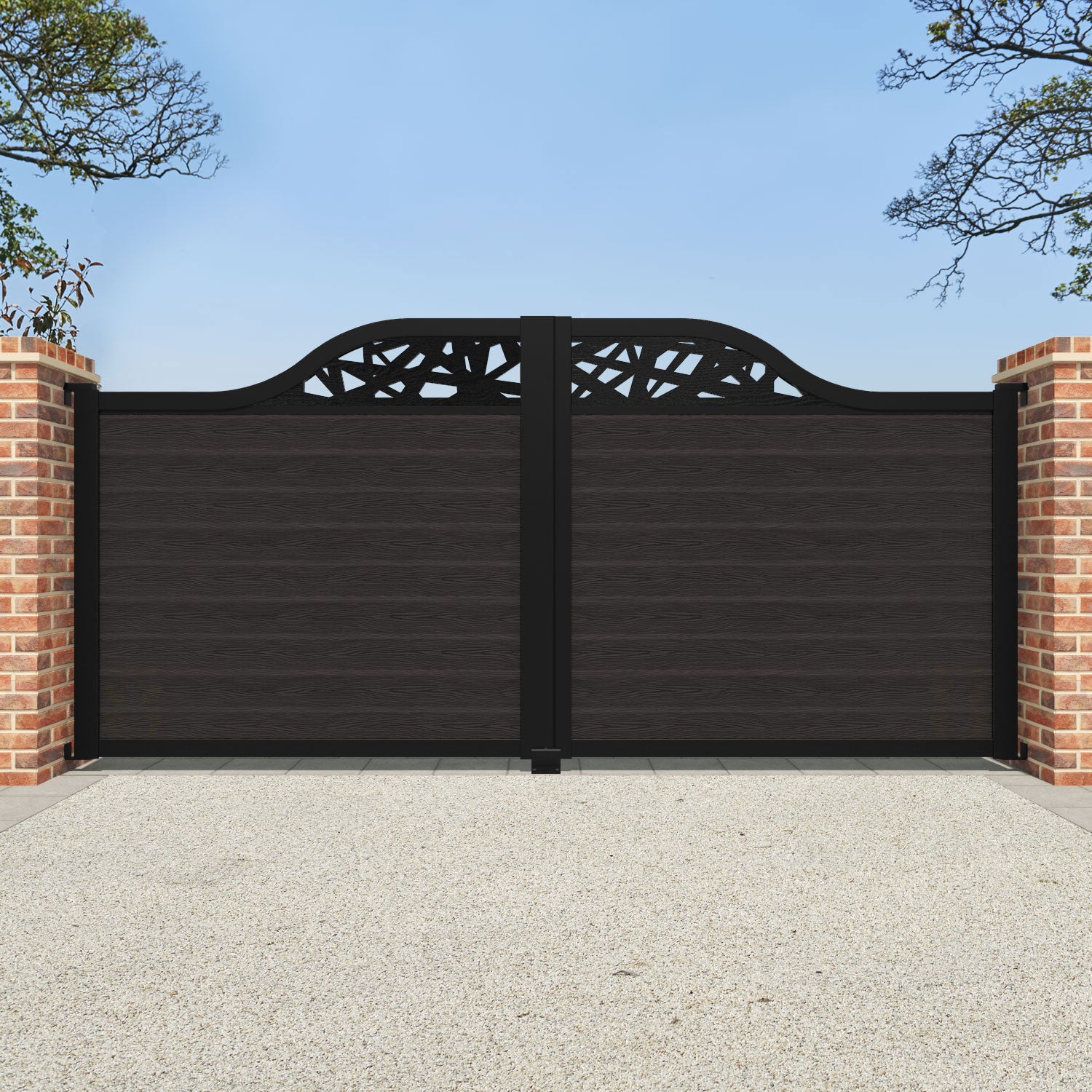 Classic Prism Curved Top Driveway Gate Dark Oak - Top Screen
