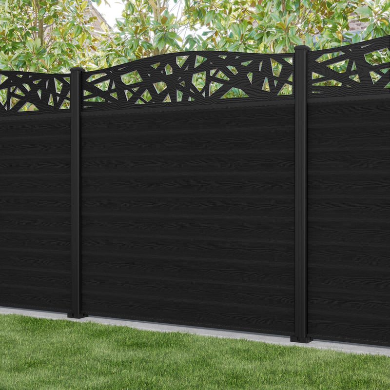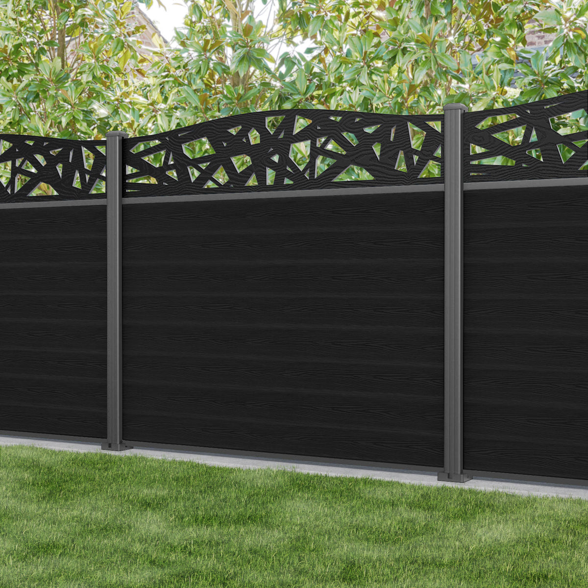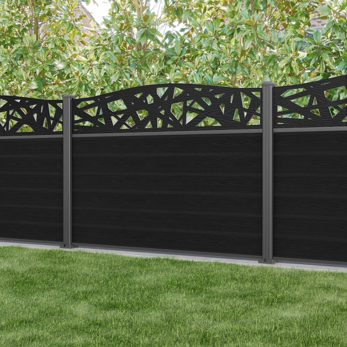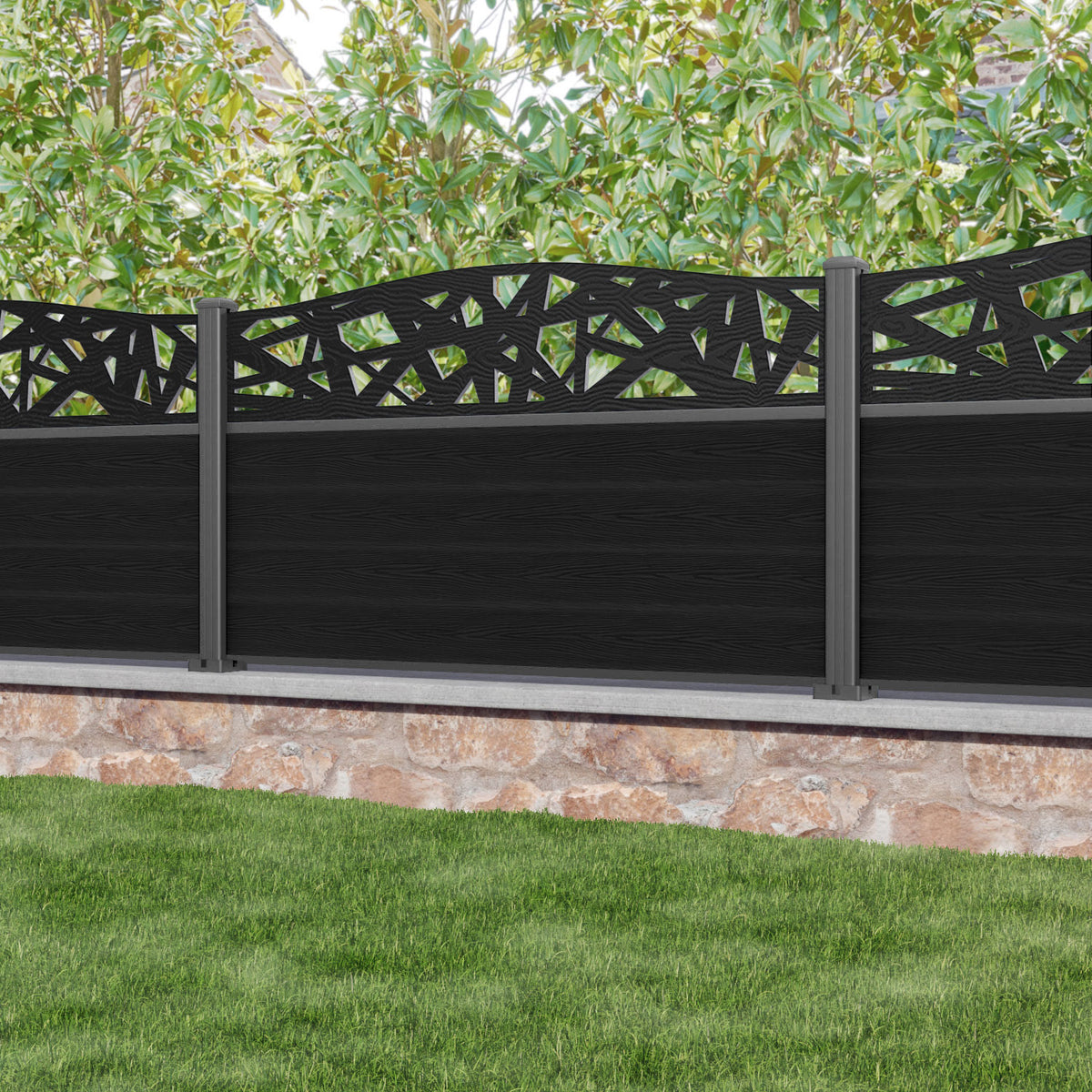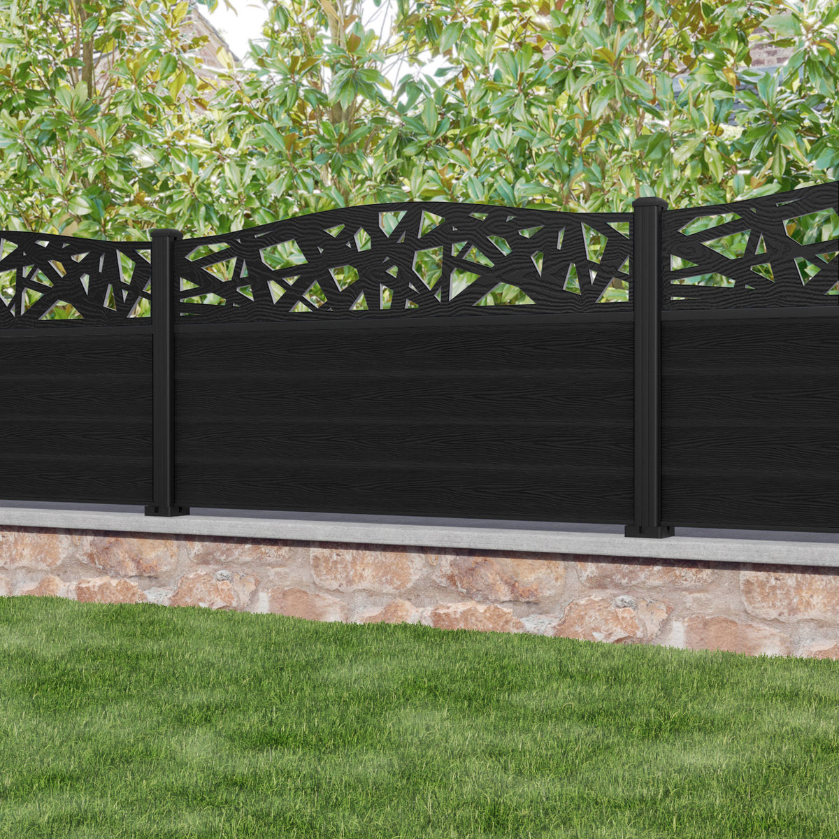 Classic Prism Curved Top Fence Panel Black - with our aluminium posts