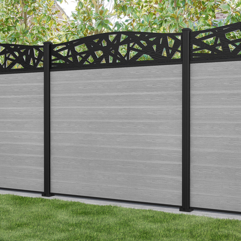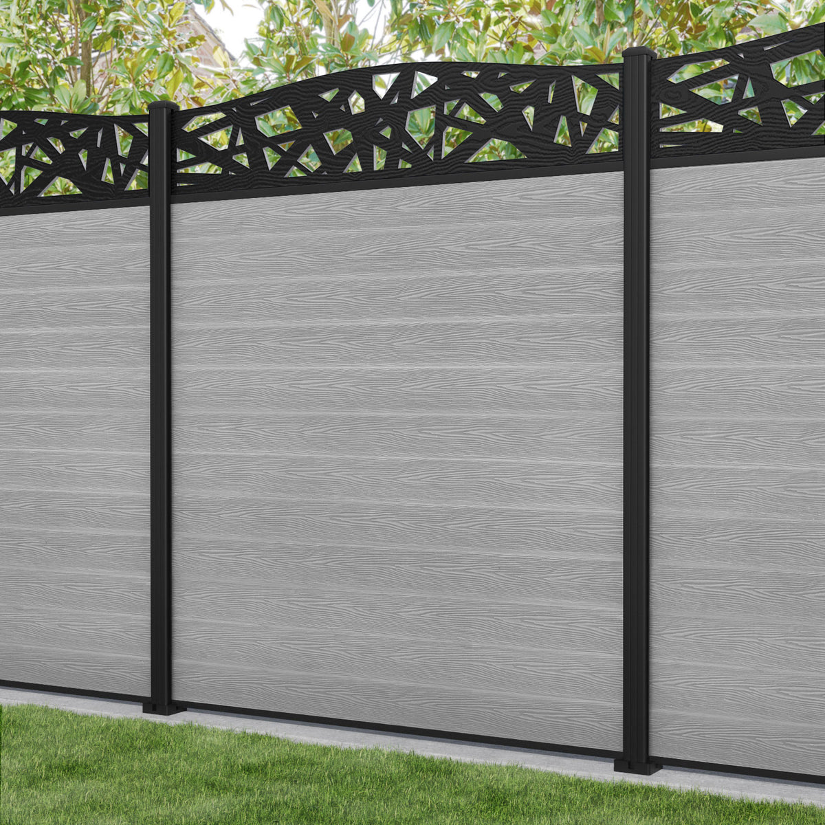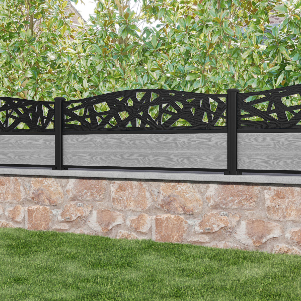 Classic Prism Curved Top Fence Panel Light Grey - with our aluminium posts