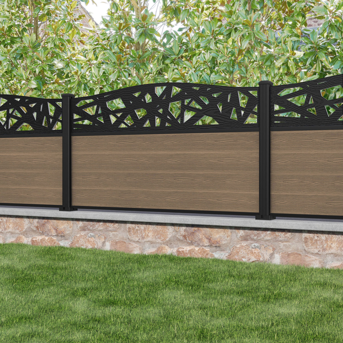 Classic Prism Curved Top Fence Panel Teak - with our aluminium posts