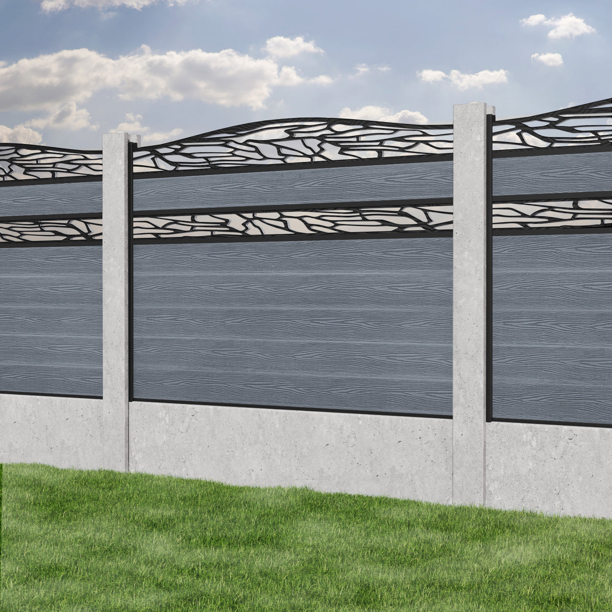 Classic Shatter Curved Top Split Screen Fence Panel Anthracite - for existing concrete posts