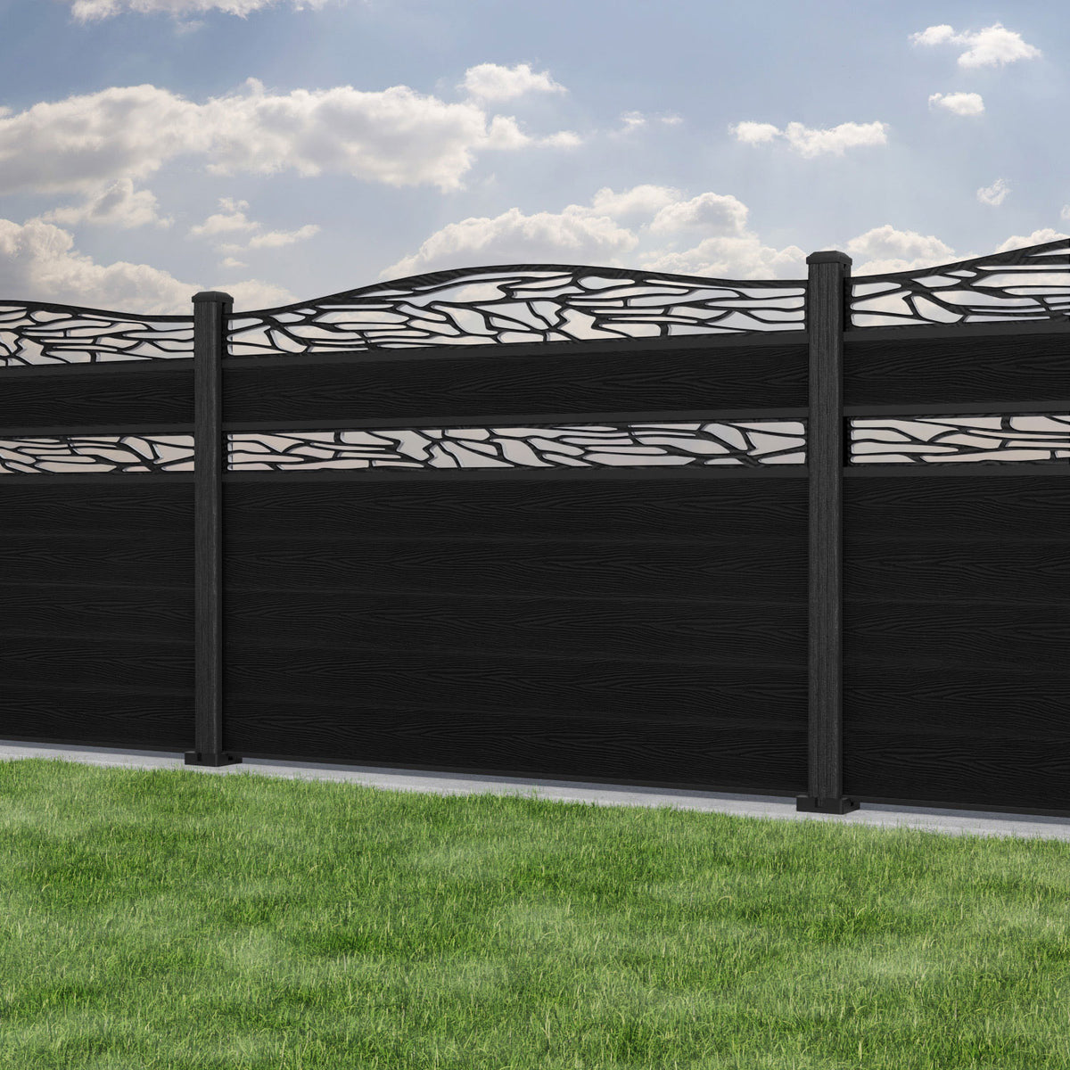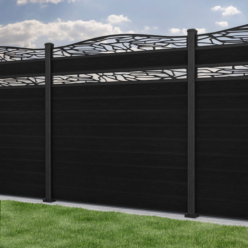 Classic Shatter Curved Top Split Screen Fence Panel Black - with our composite posts