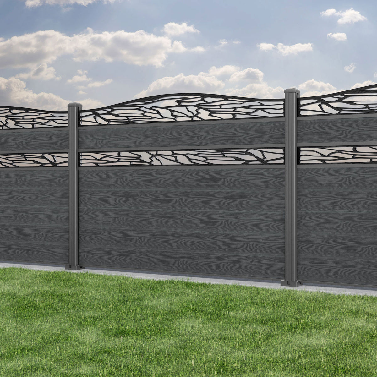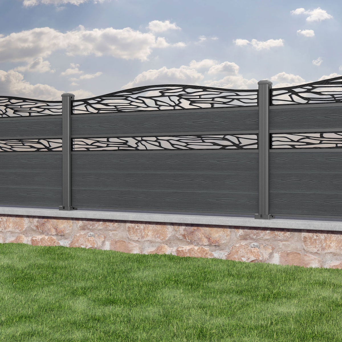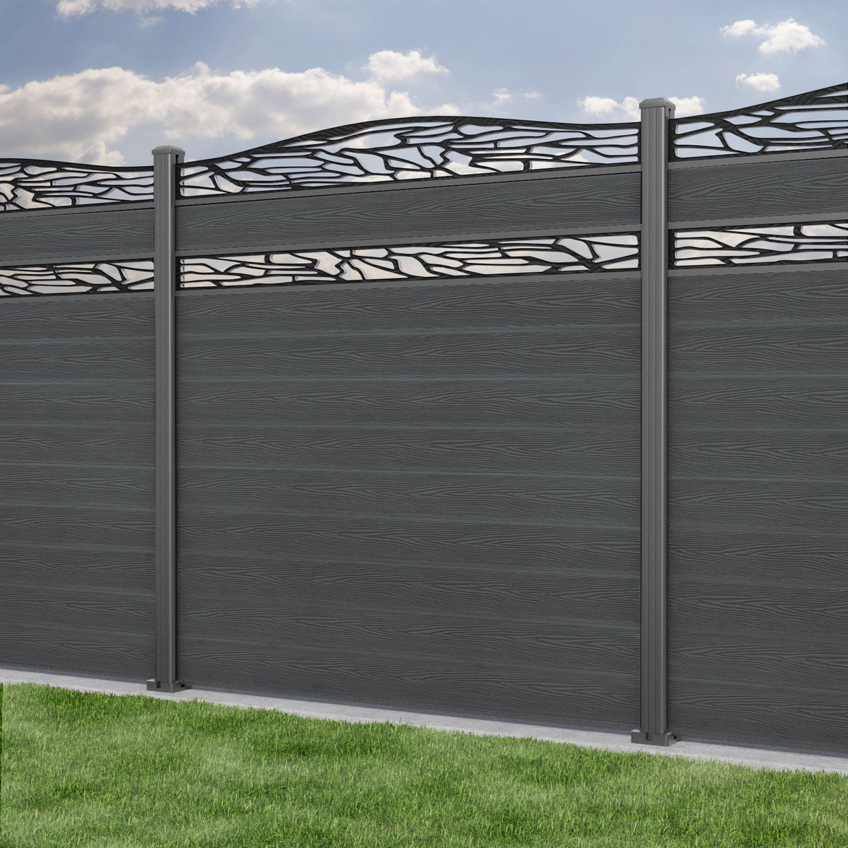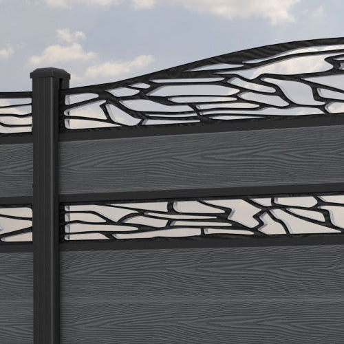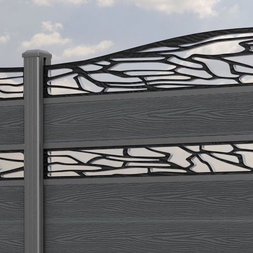 Classic Shatter Curved Top Split Screen Fence Panel Dark Grey - with our aluminium posts