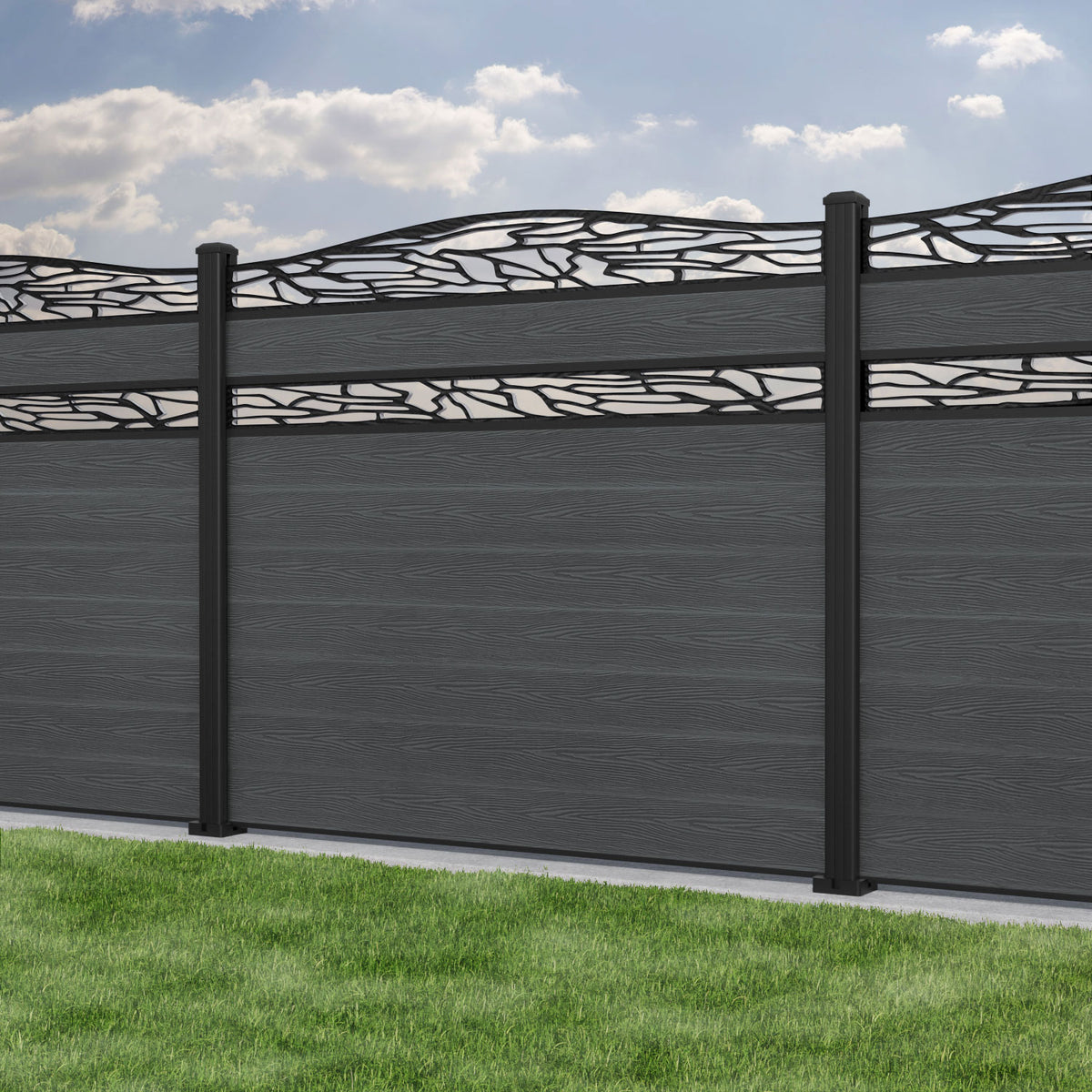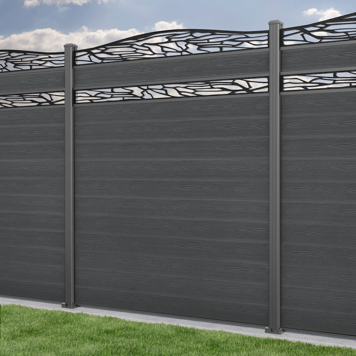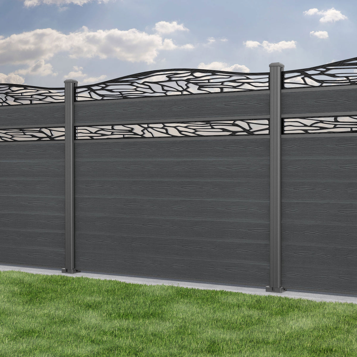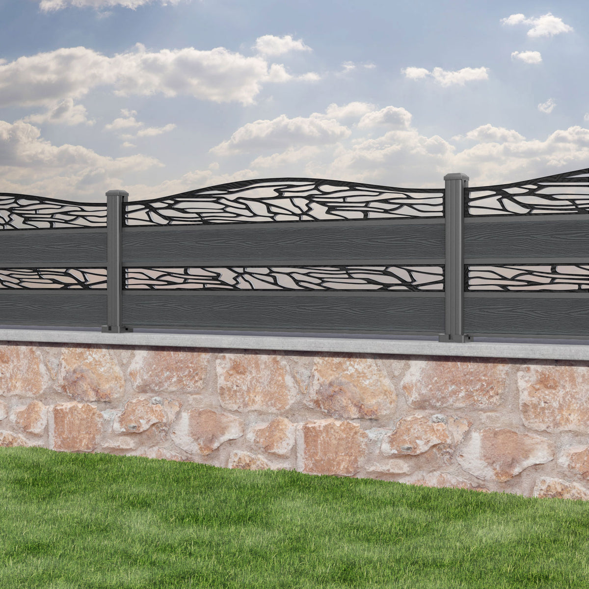 Classic Shatter Curved Top Split Screen Fence Panel Dark Grey - with our aluminium posts