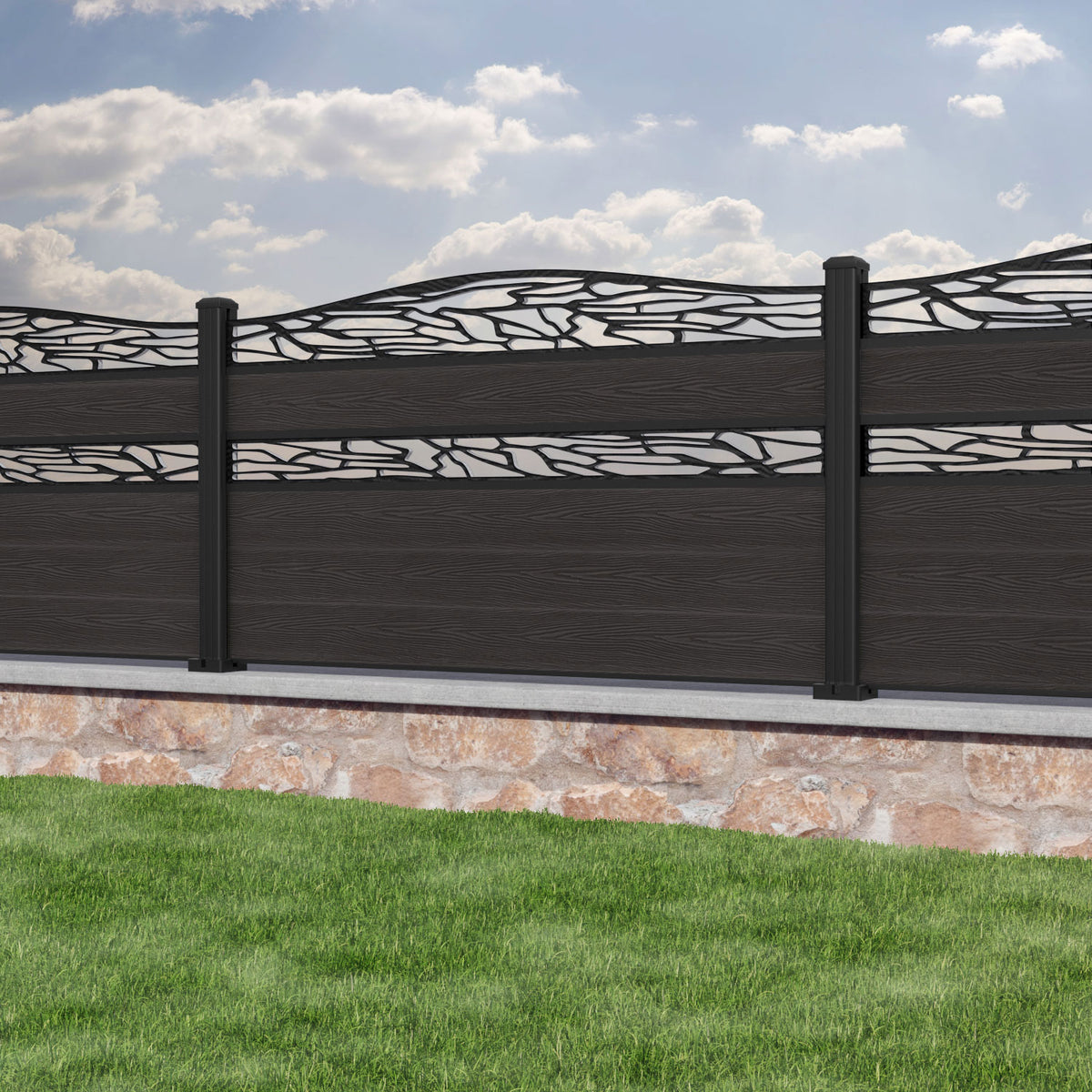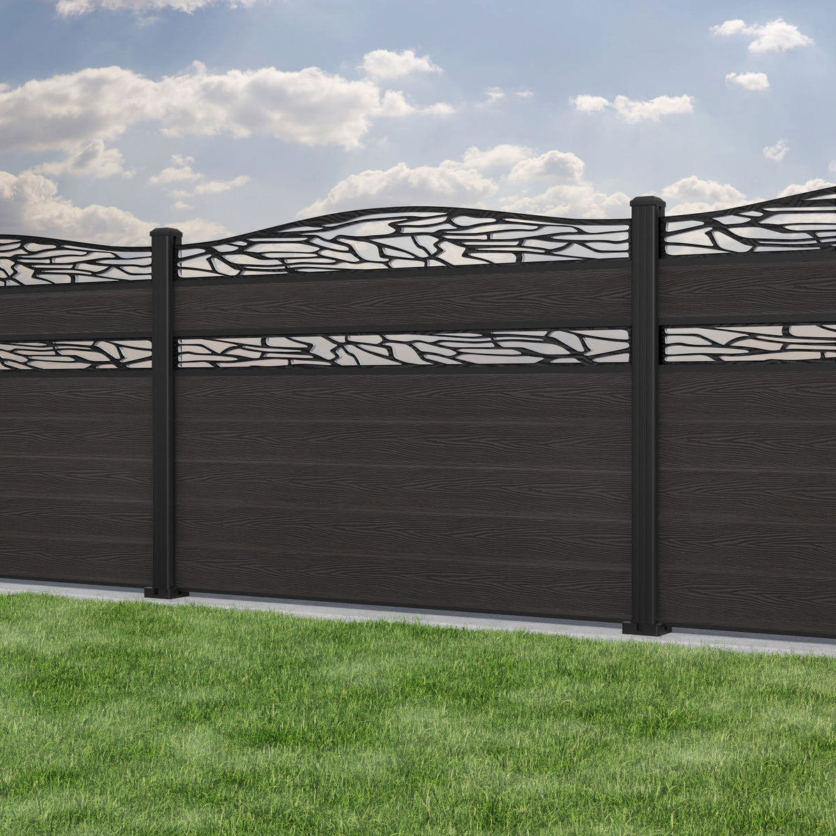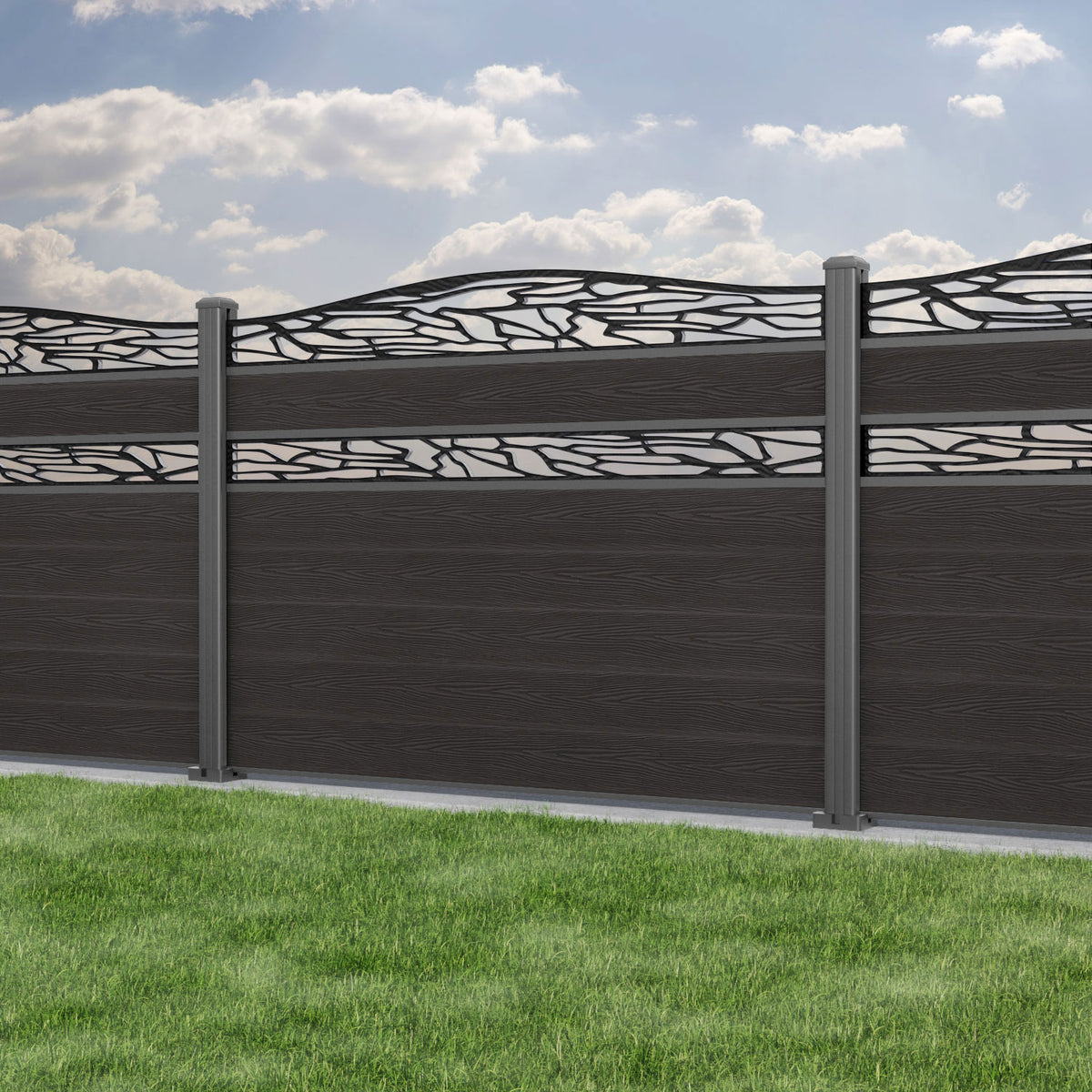 Classic Shatter Curved Top Split Screen Fence Panel Dark Oak - with our aluminium posts