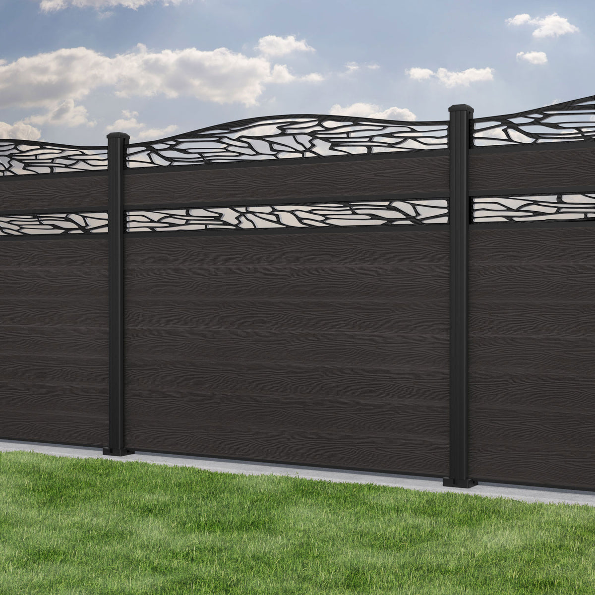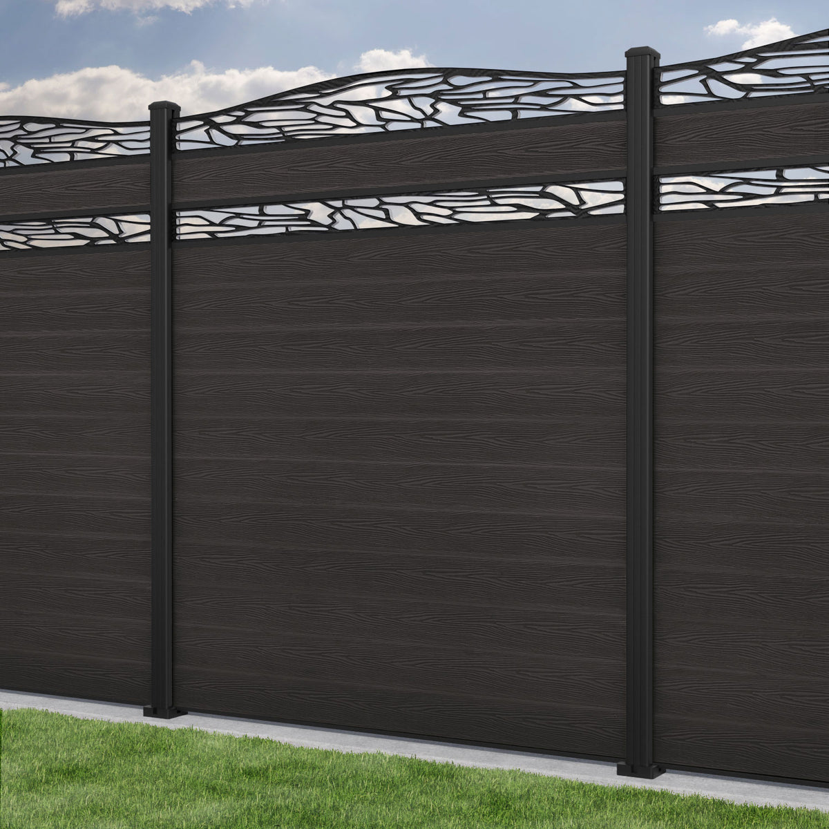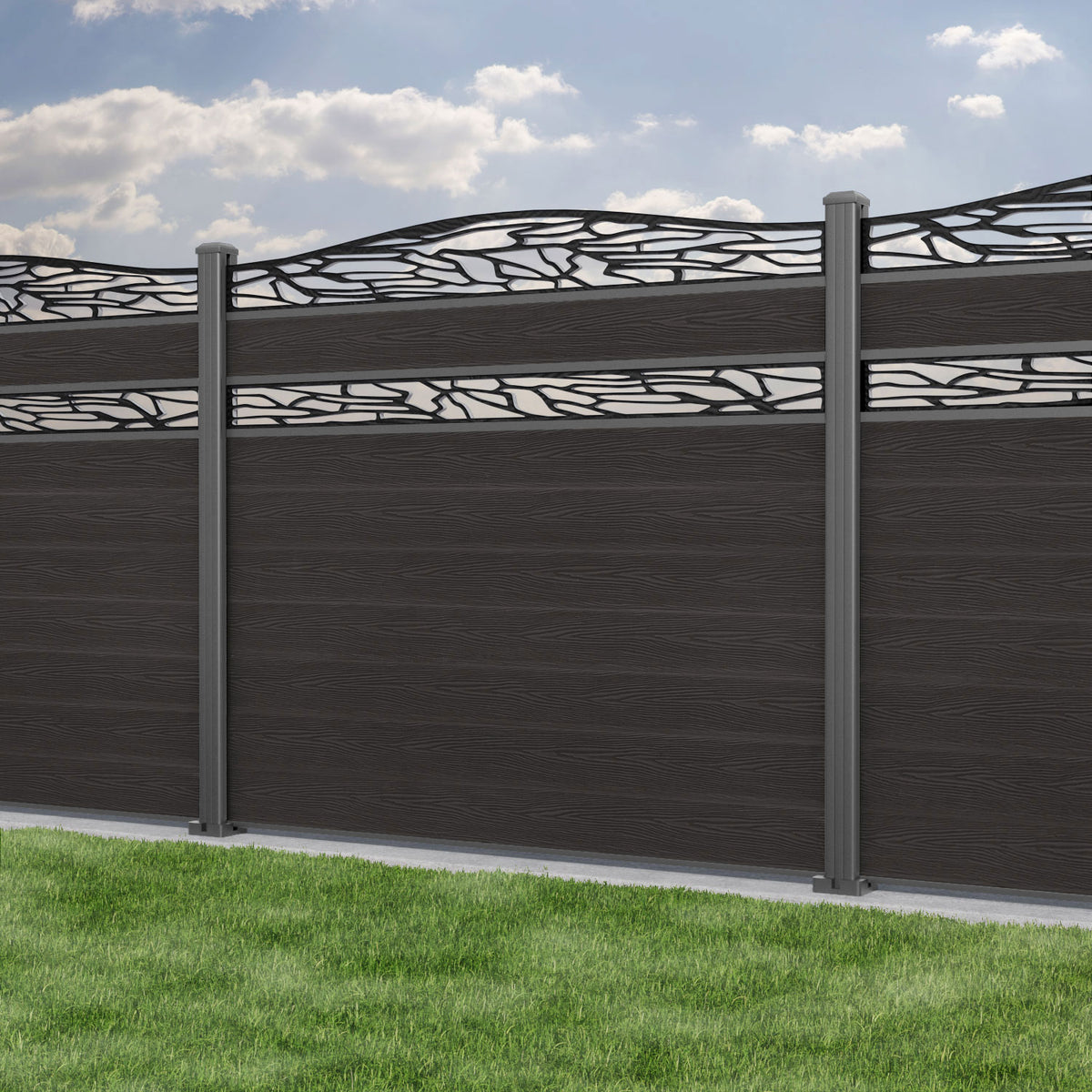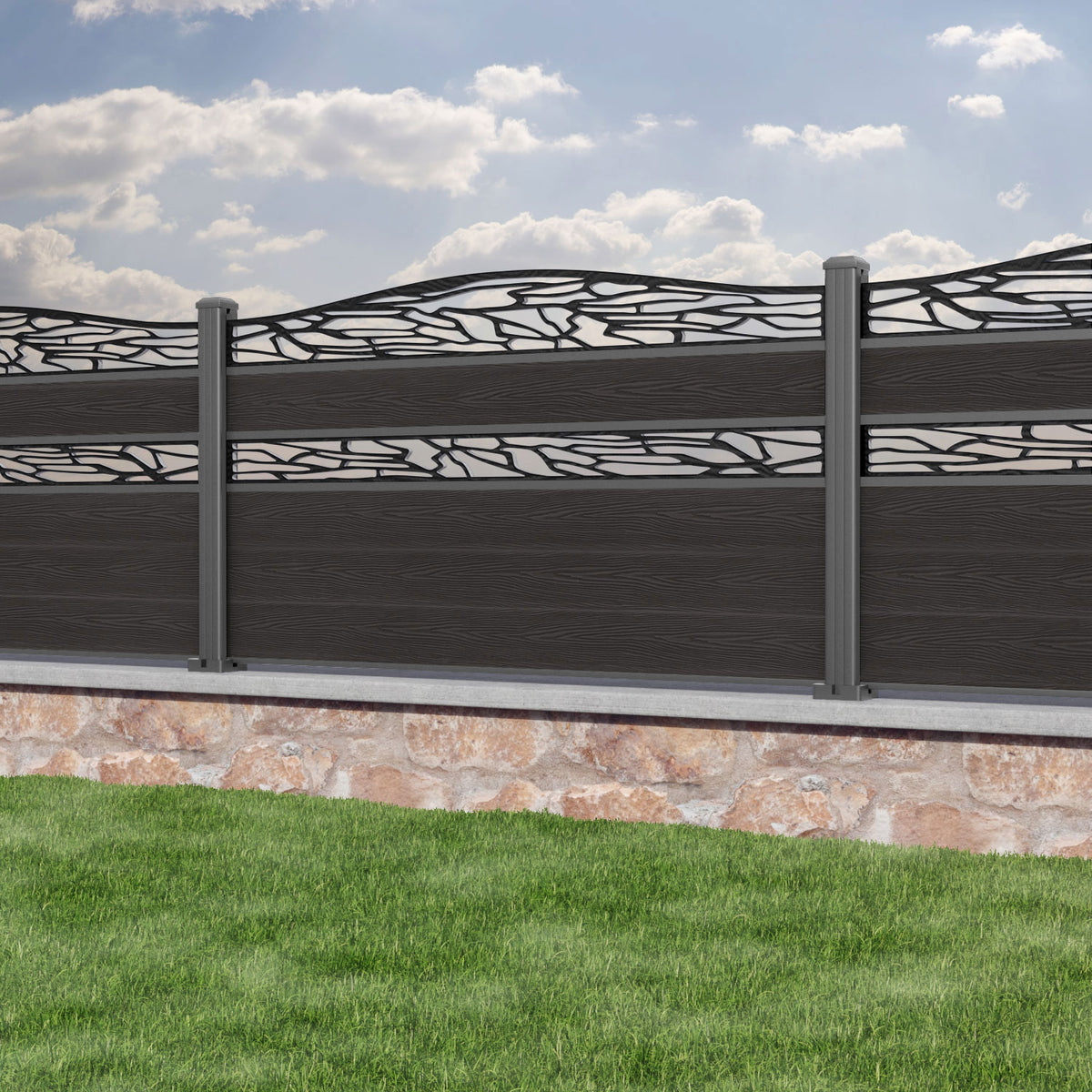Classic Shatter Curved Top Split Screen Fence Panel Dark Oak - with our aluminium posts