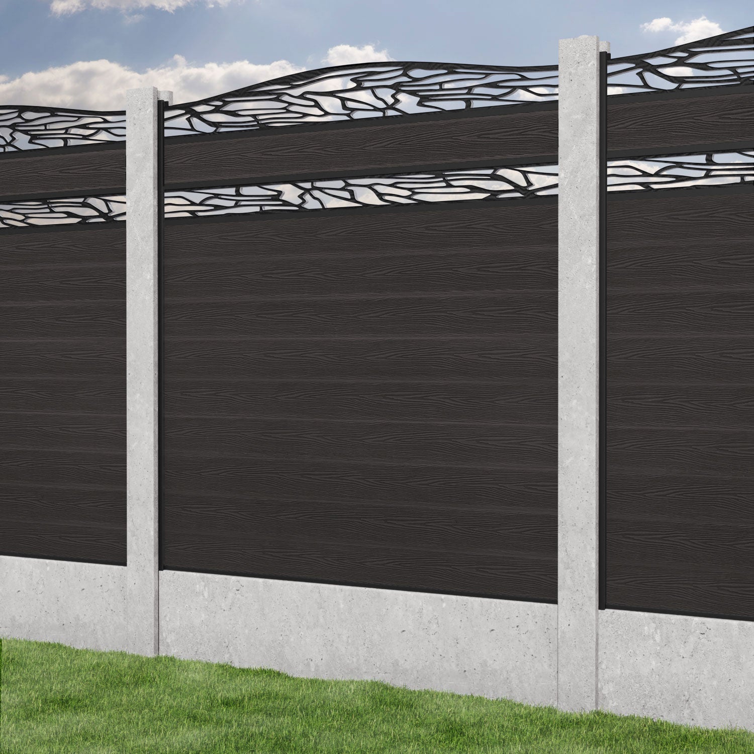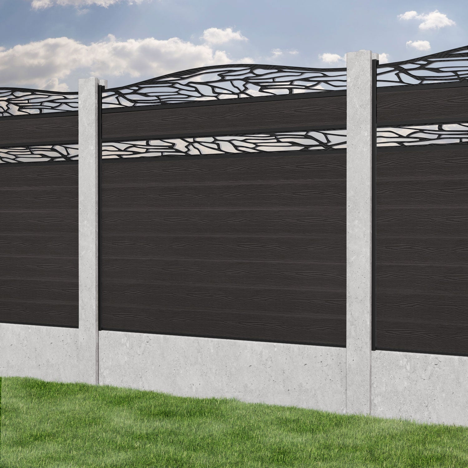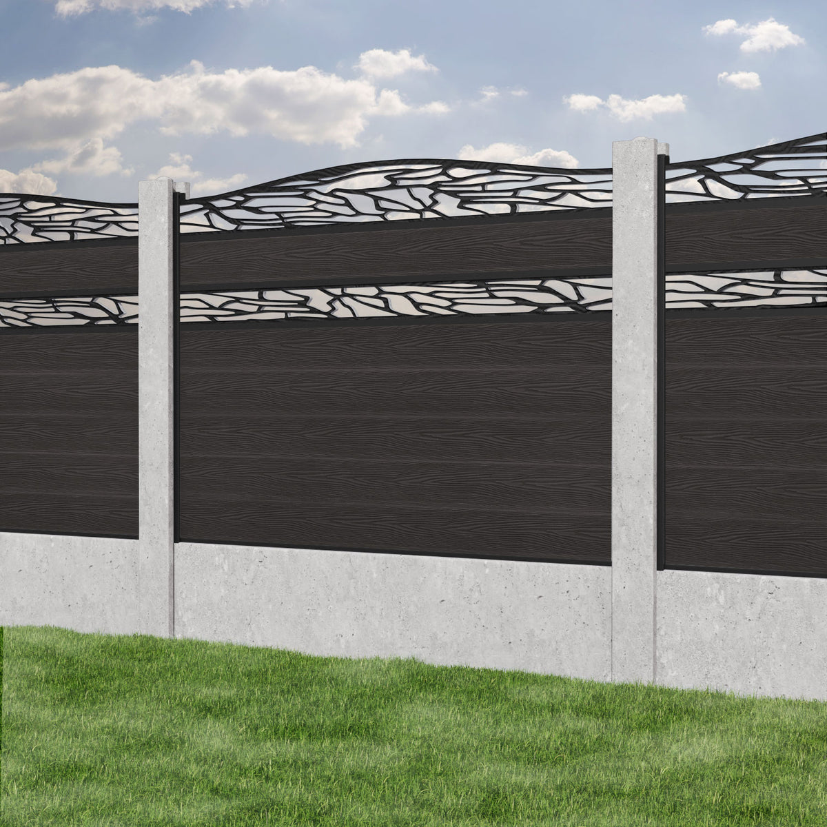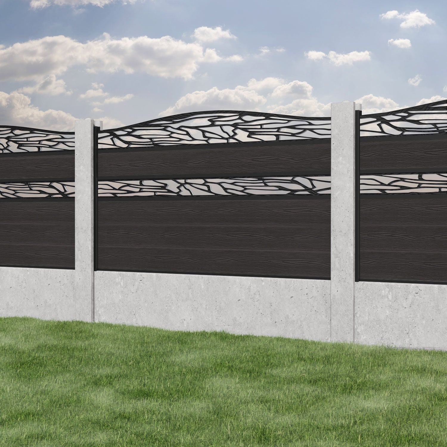 Classic Shatter Curved Top Split Screen Fence Panel Dark Oak - for existing concrete posts