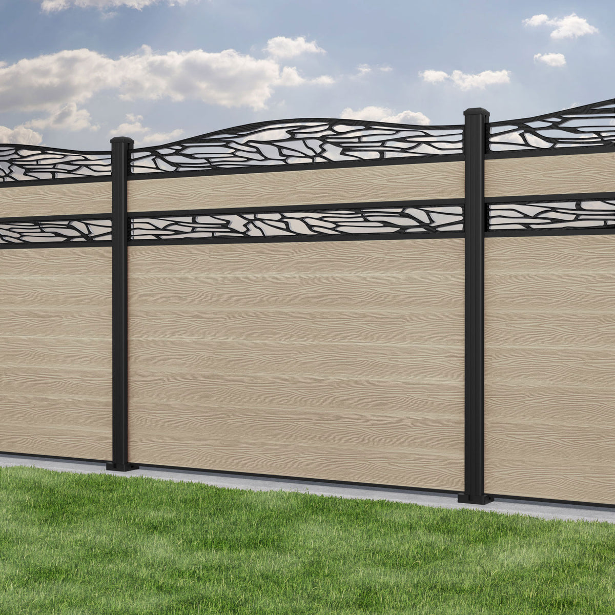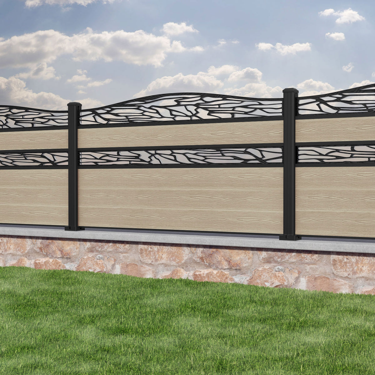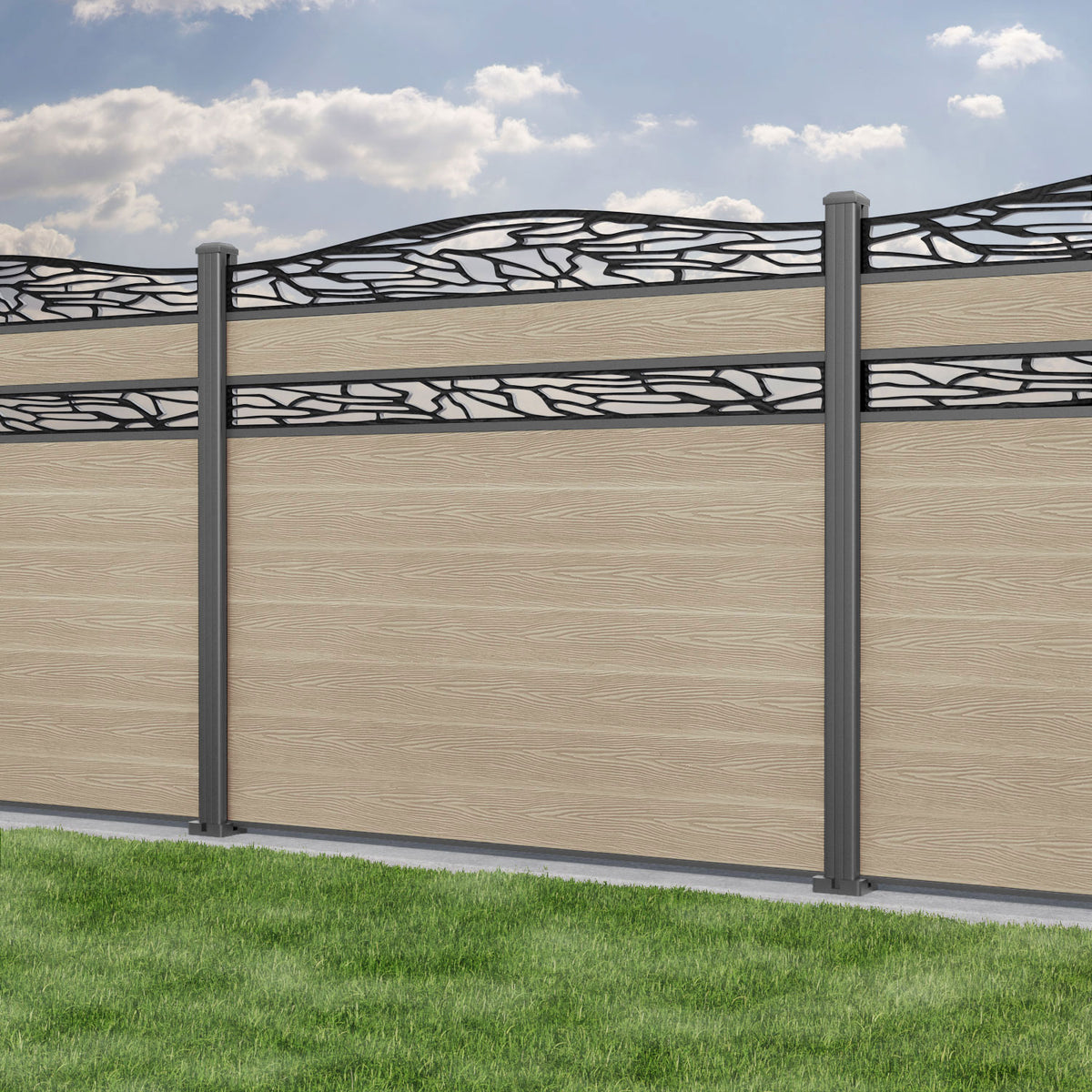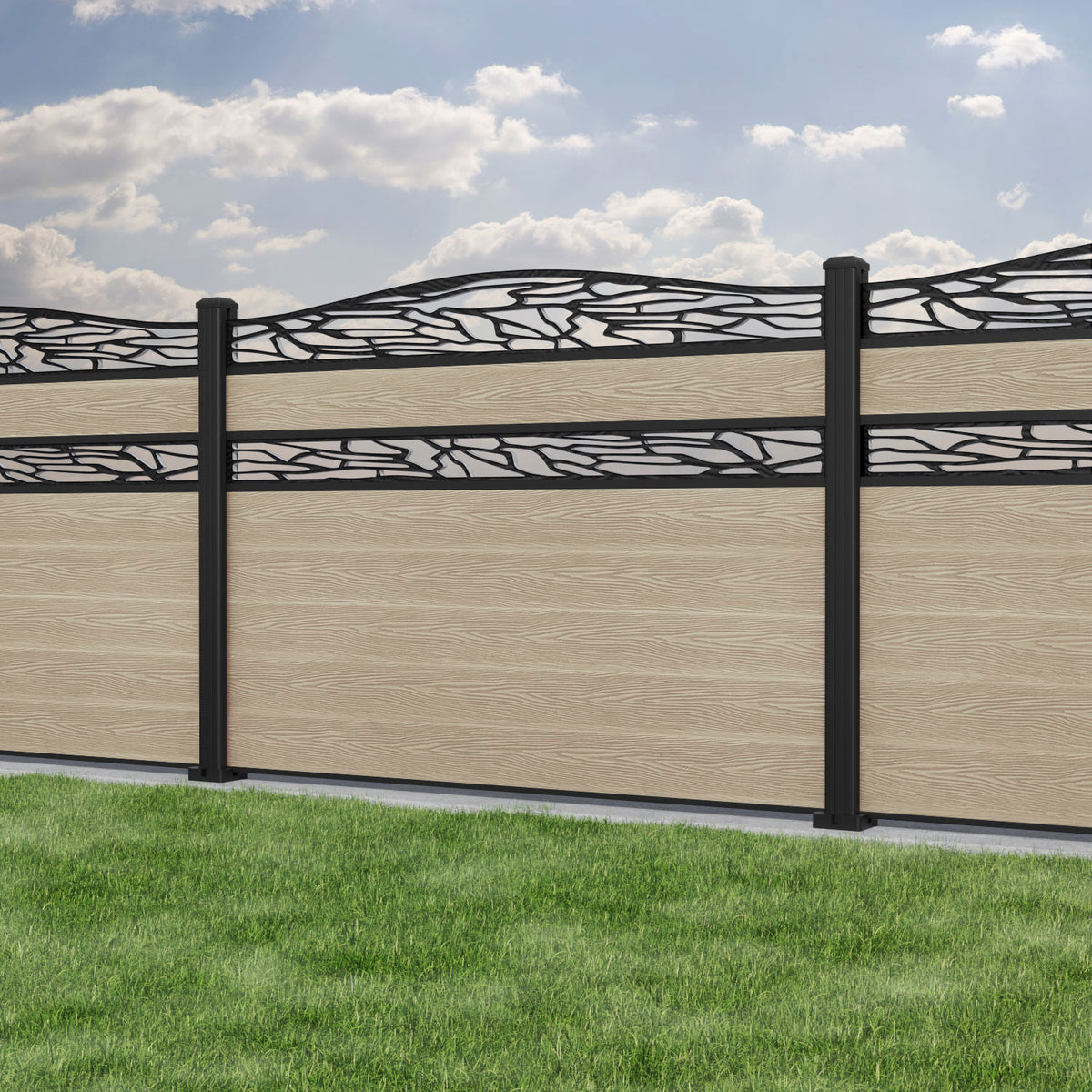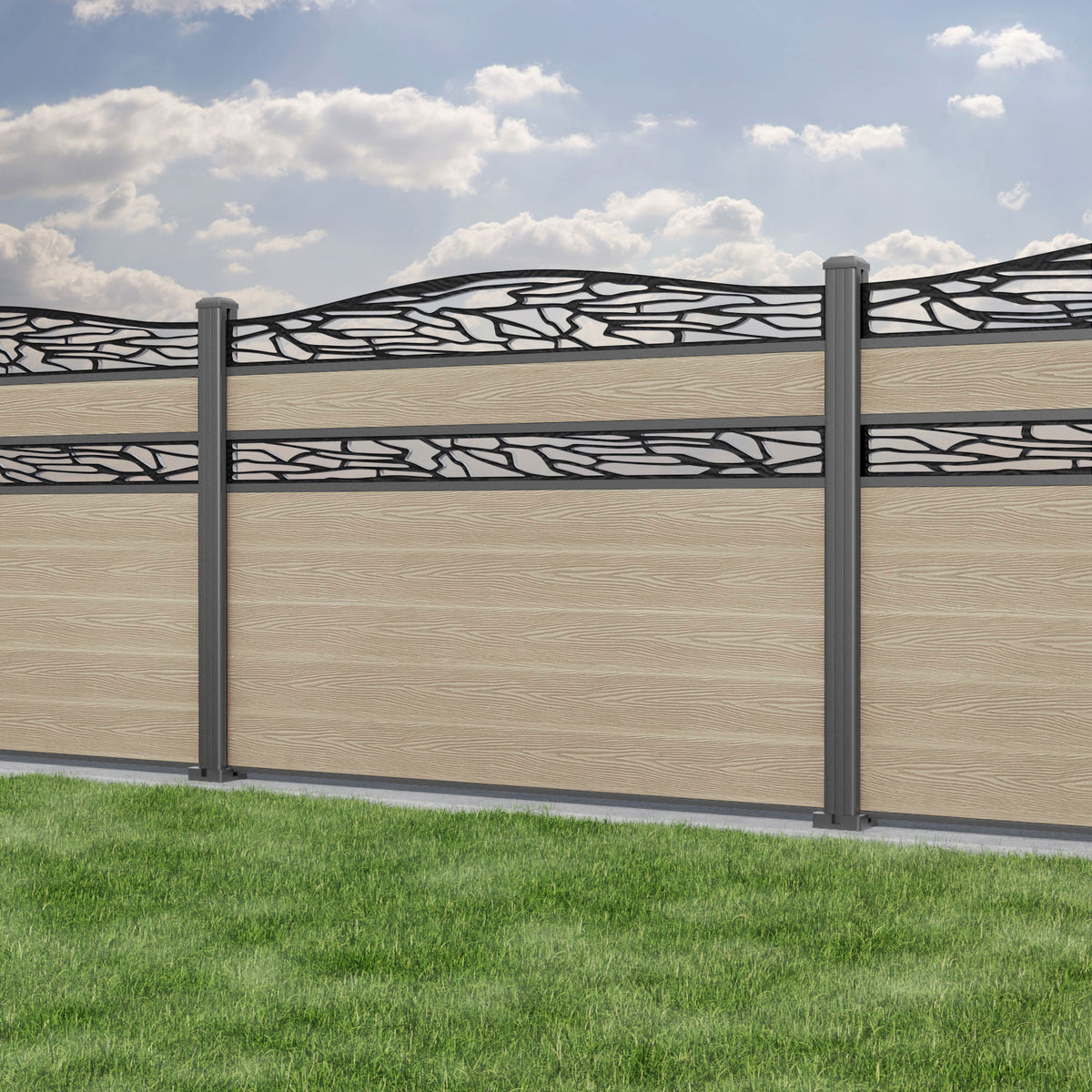 Classic Shatter Curved Top Split Screen Fence Panel Light Oak - with our aluminium posts
