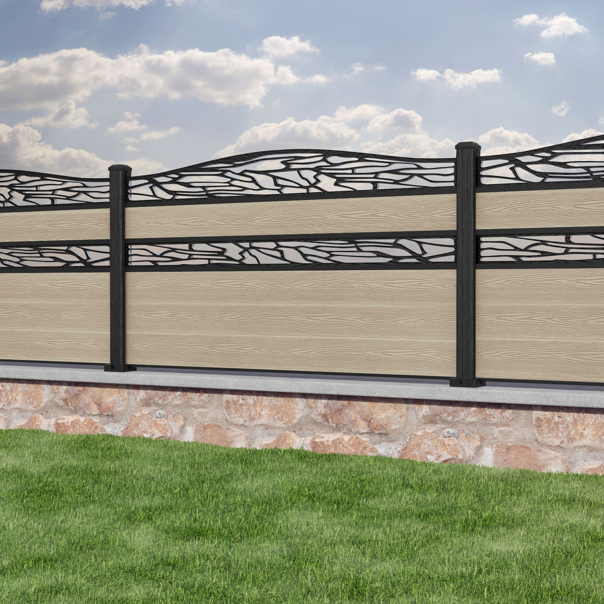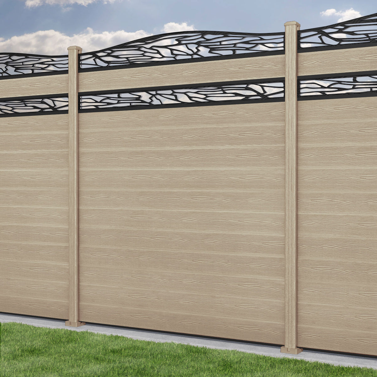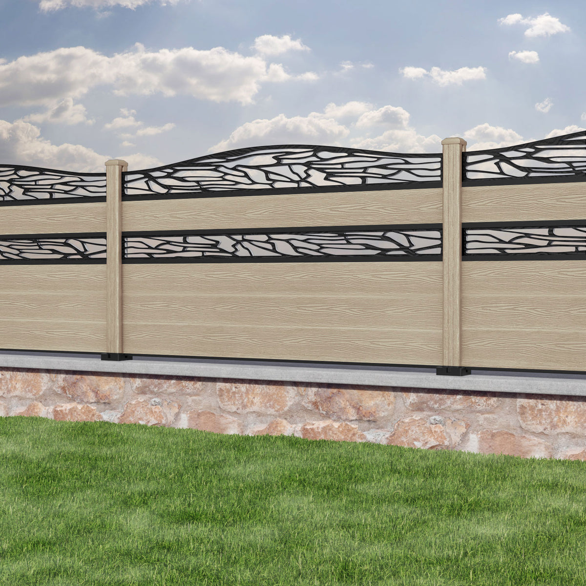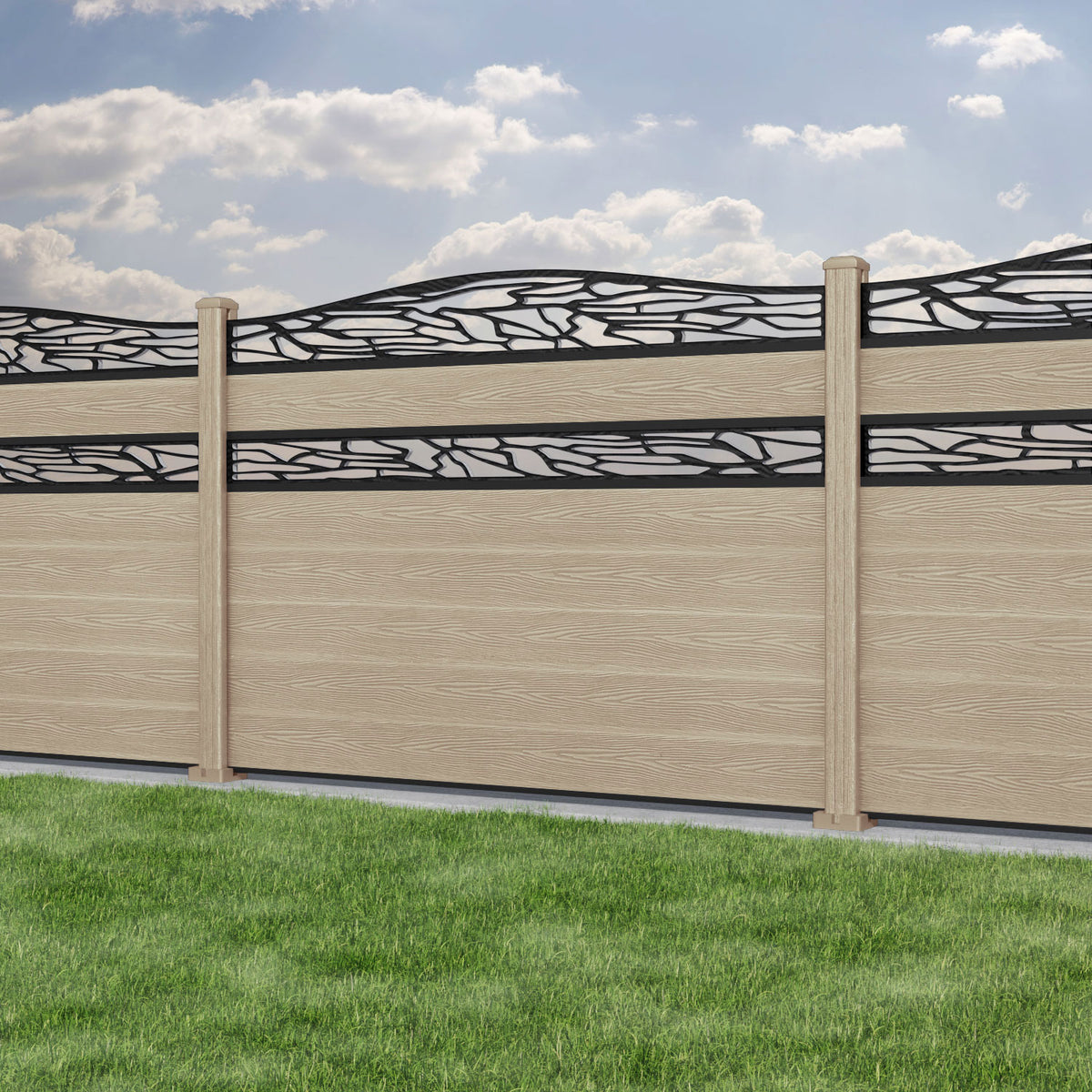 Classic Shatter Curved Top Split Screen Fence Panel Light Oak - with our composite posts