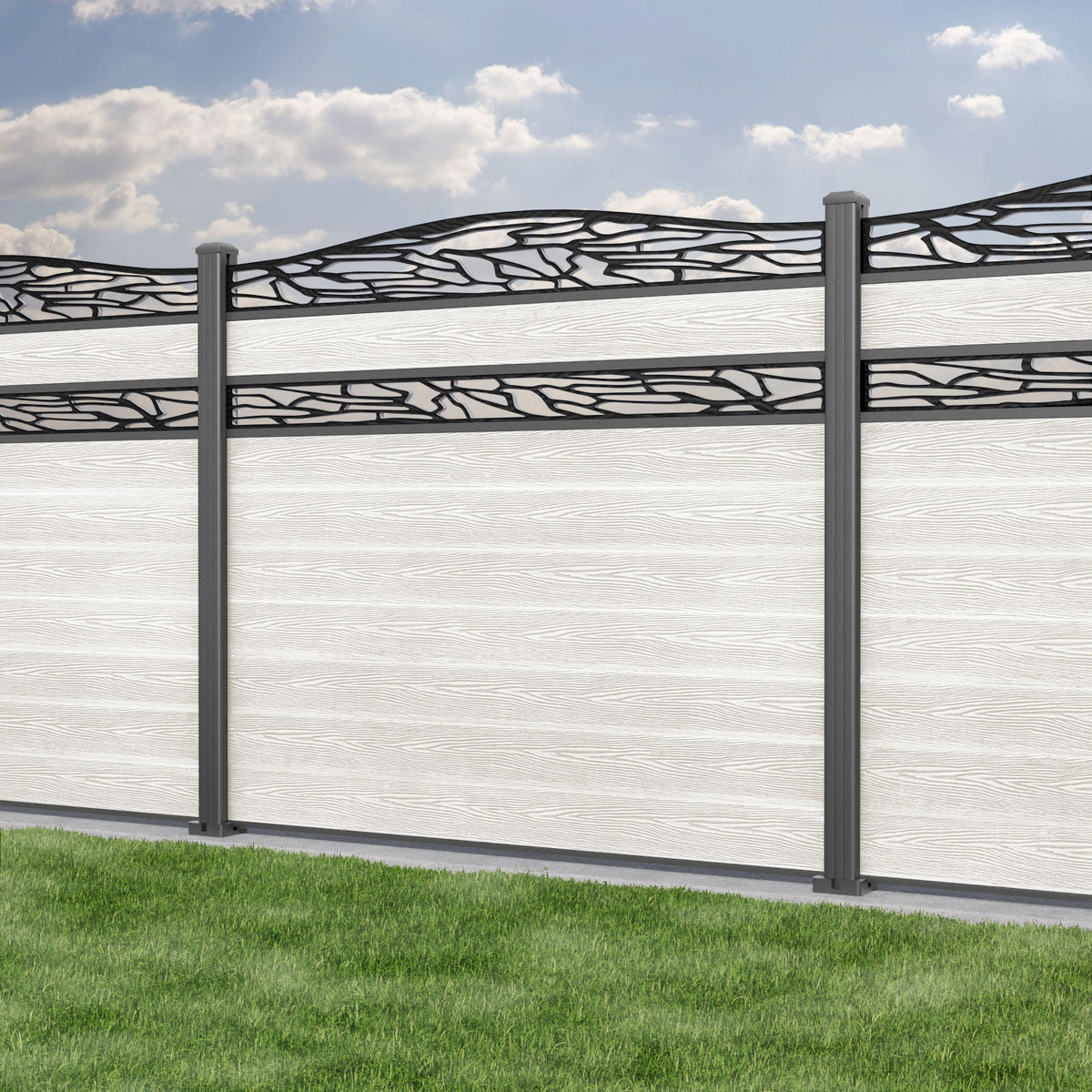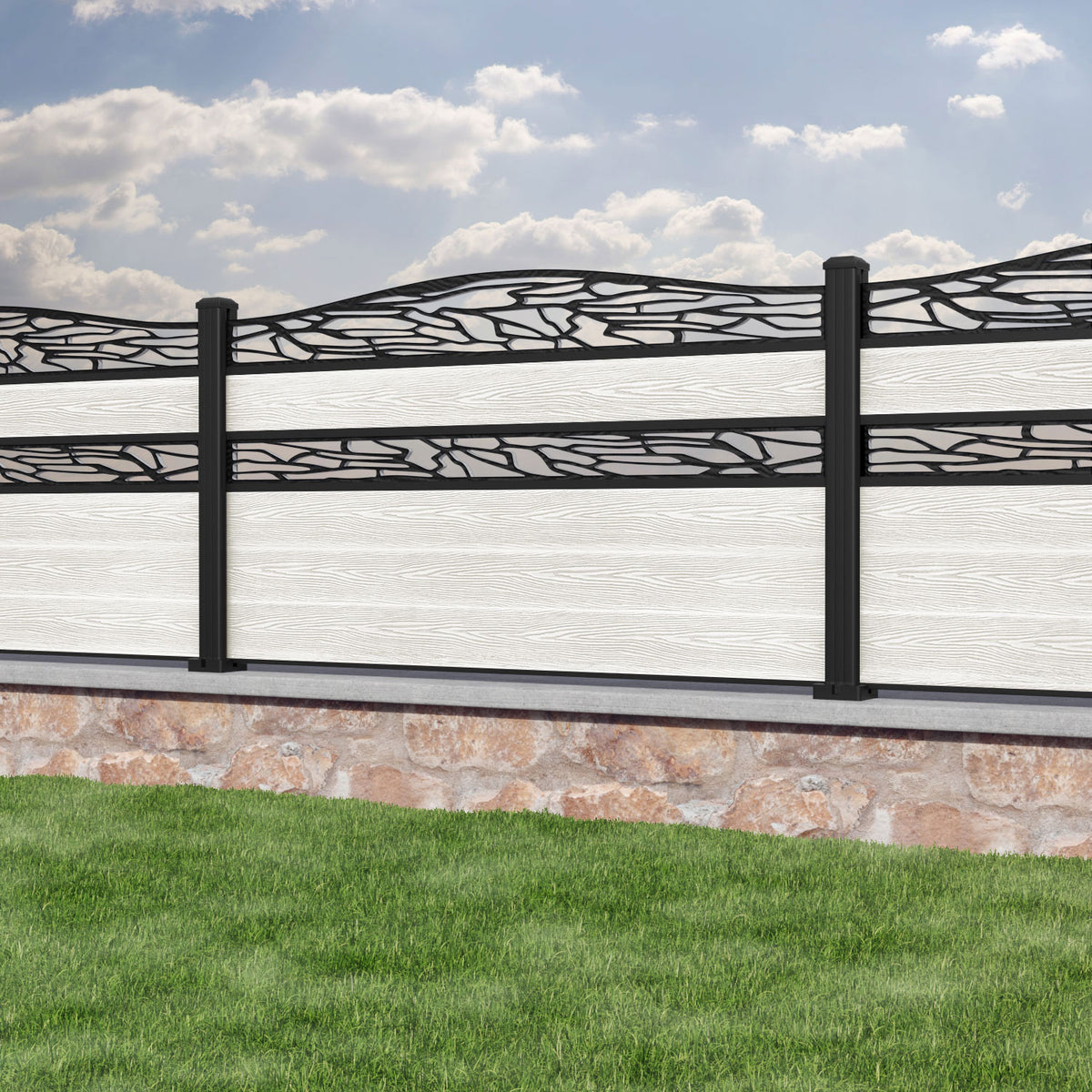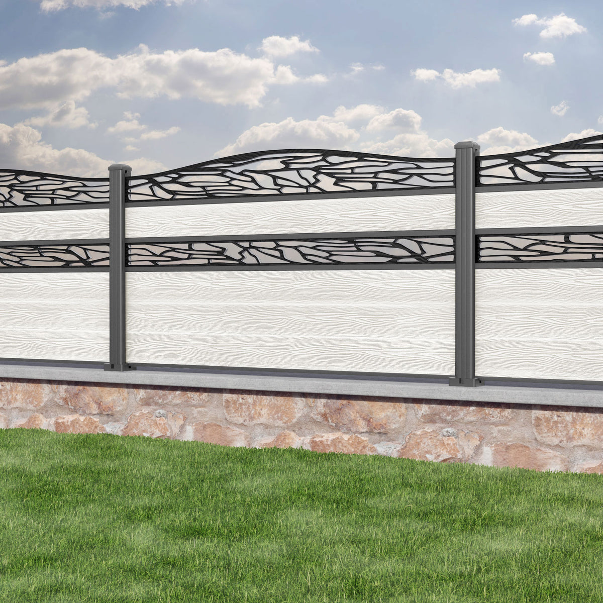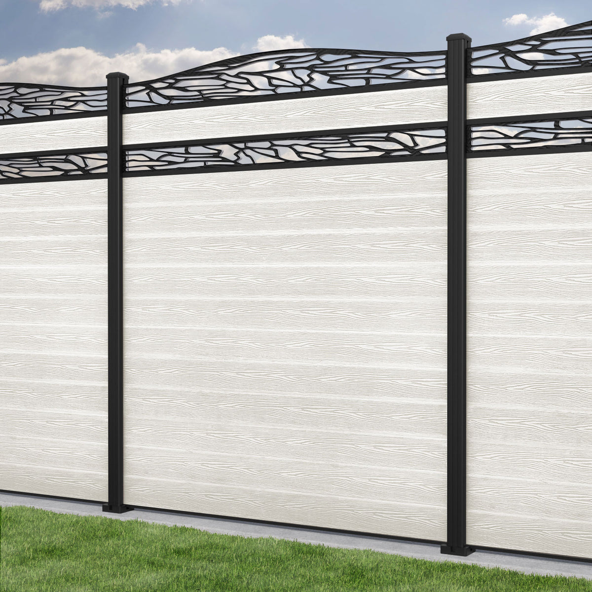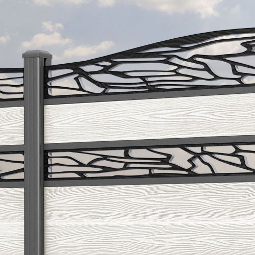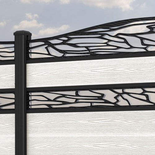 Classic Shatter Curved Top Split Screen Fence Panel Light Stone - with our aluminium posts