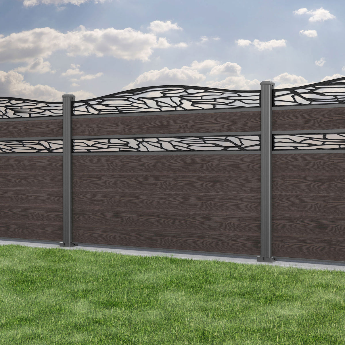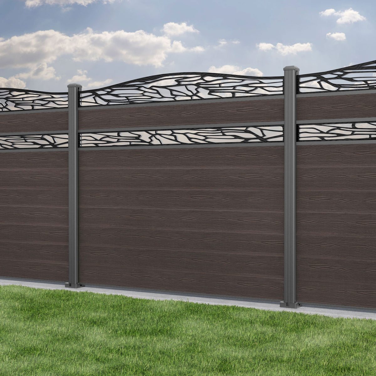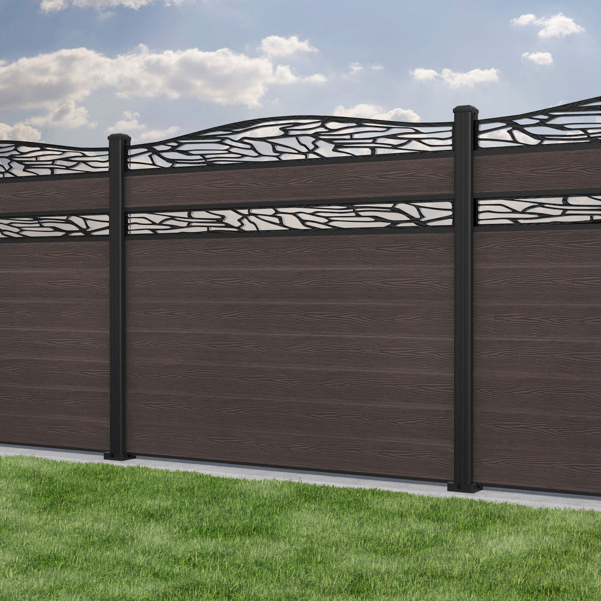 Classic Shatter Curved Top Split Screen Fence Panel Mid Brown - with our aluminium posts