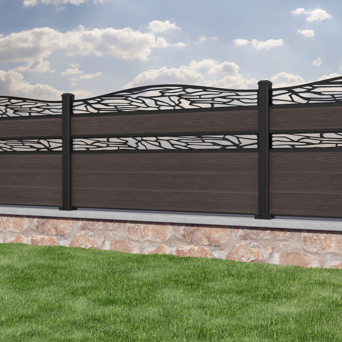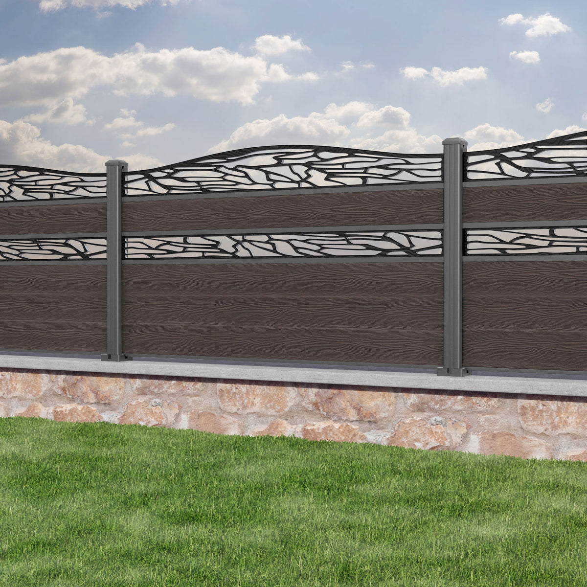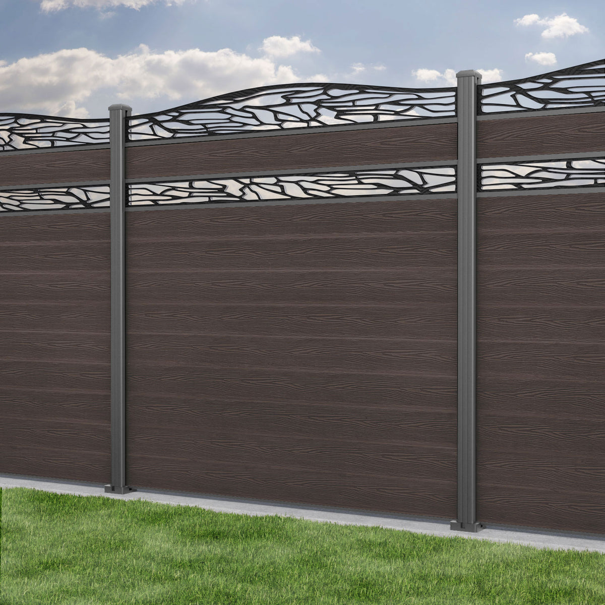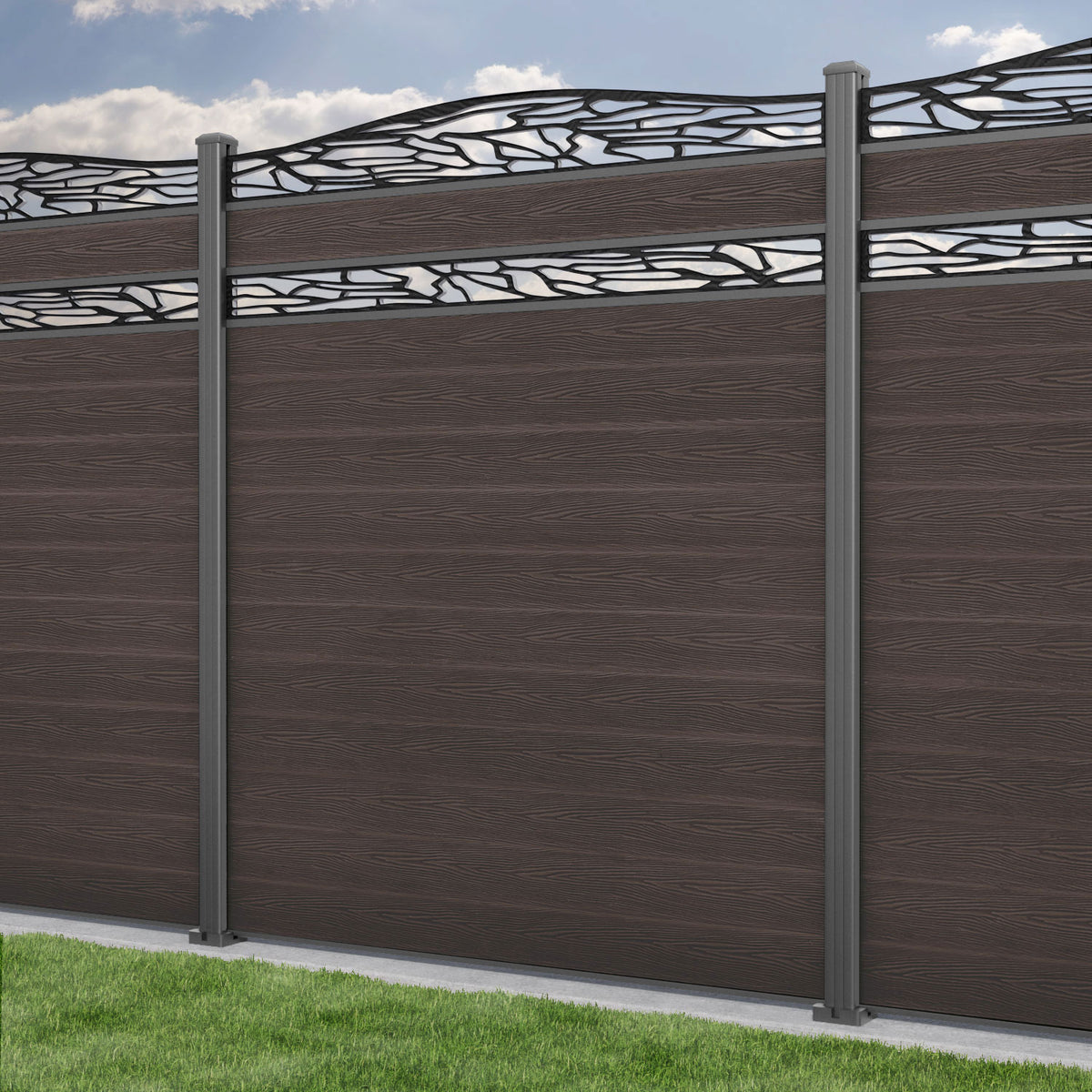 Classic Shatter Curved Top Split Screen Fence Panel Mid Brown - with our aluminium posts